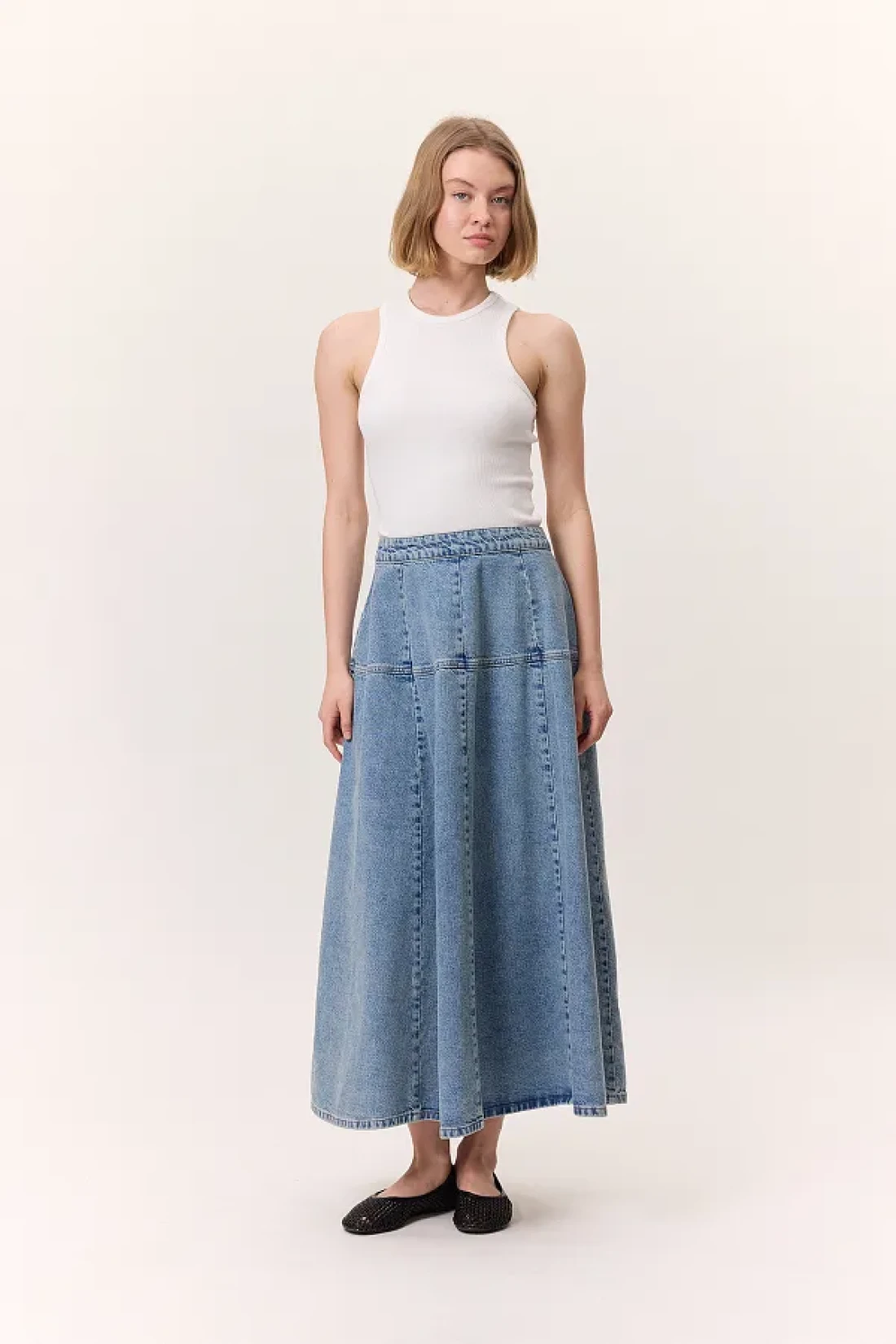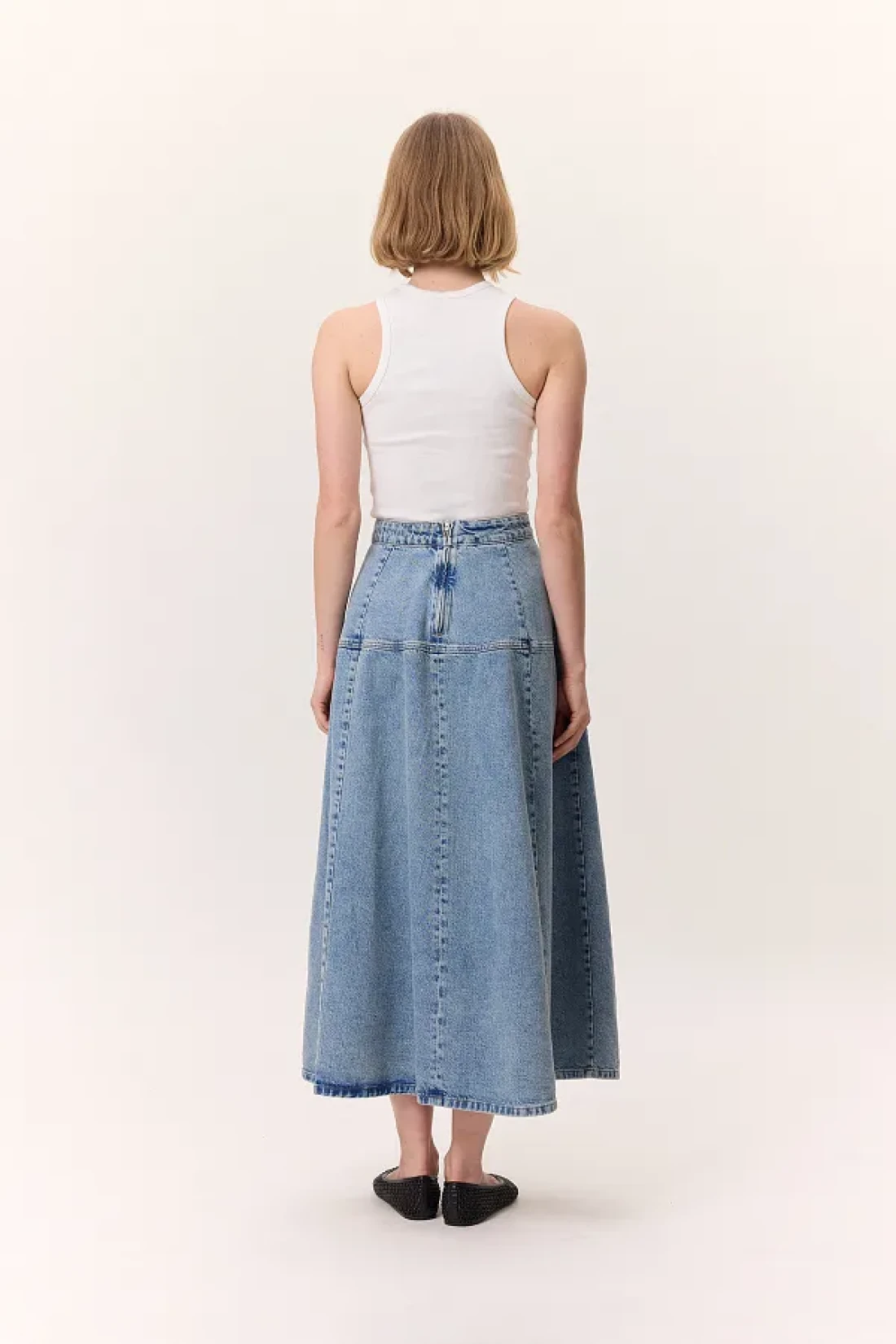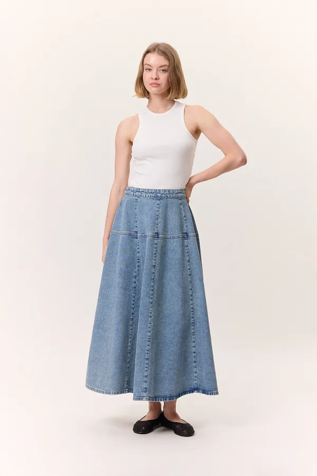 Manuka تنورة واسعة من الدنيم باللون الأزرق
