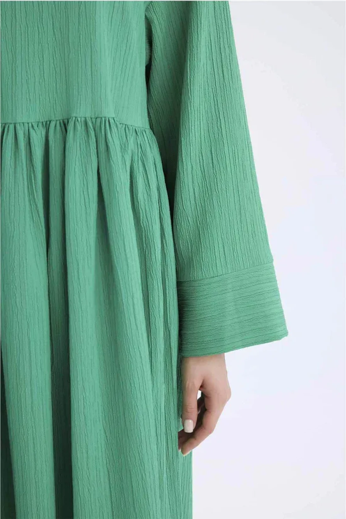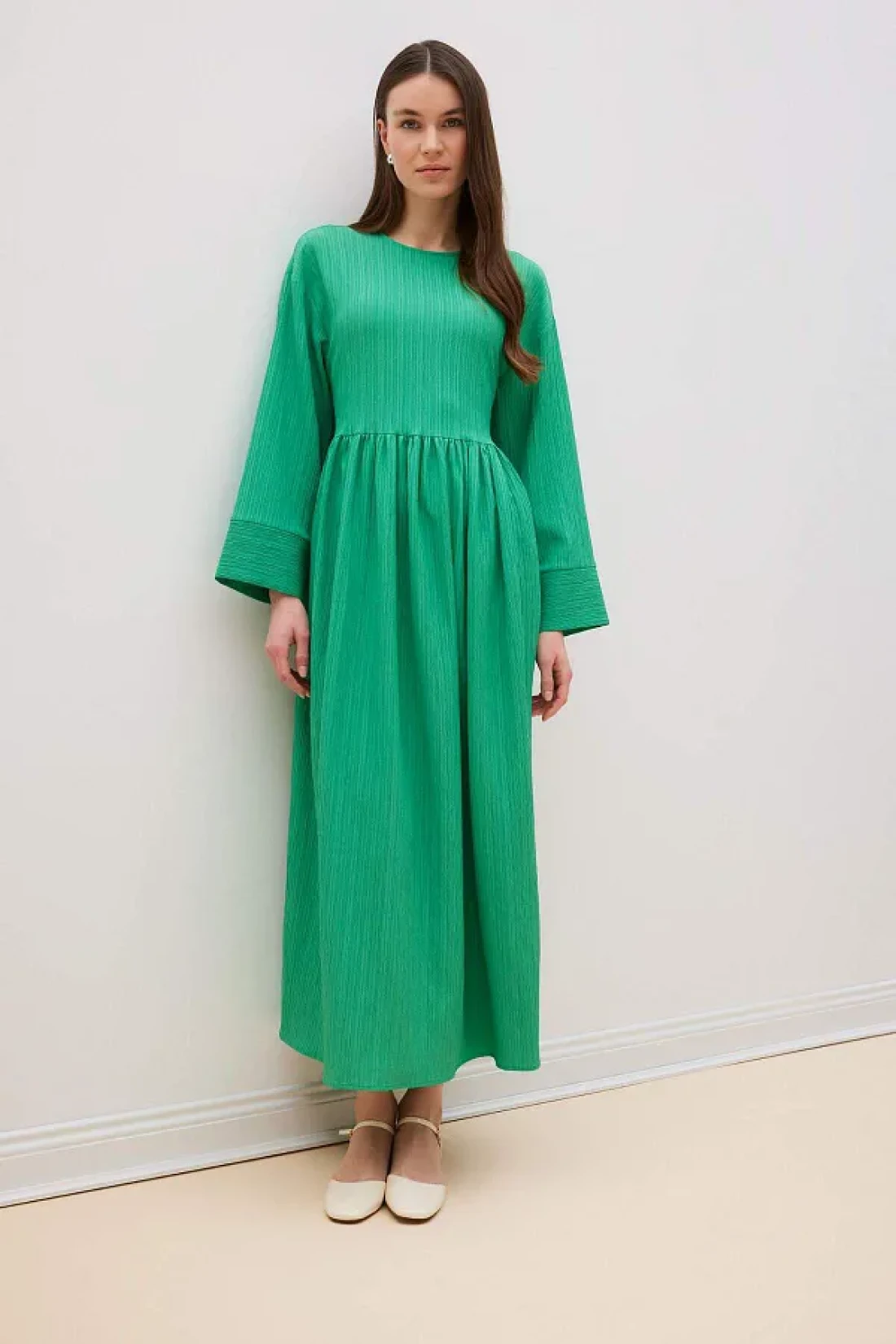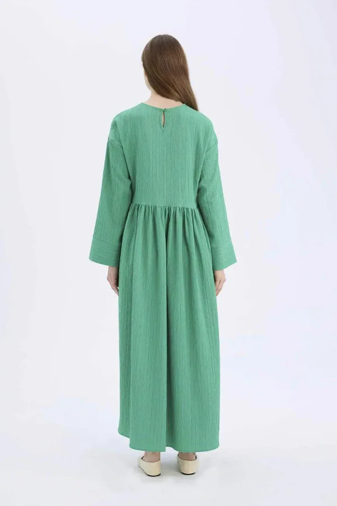 Defacto فستان طويل بأكمام طويلة ورقبة دائرية من القماش القطني - مقاس عادي E6597AX25SP