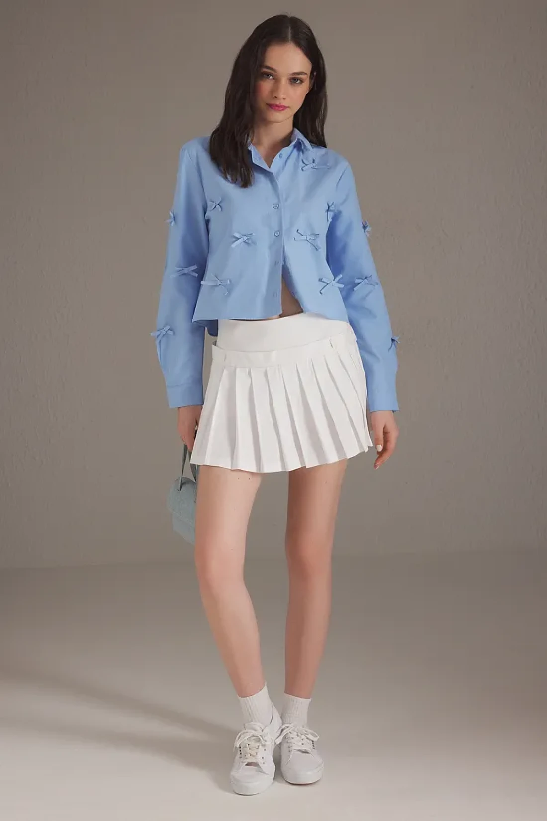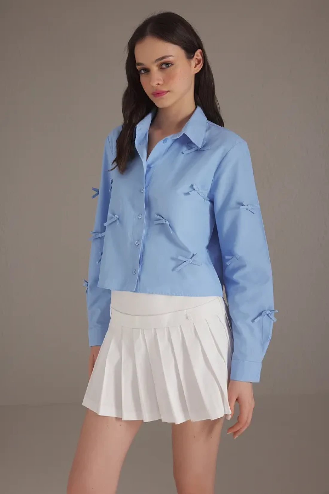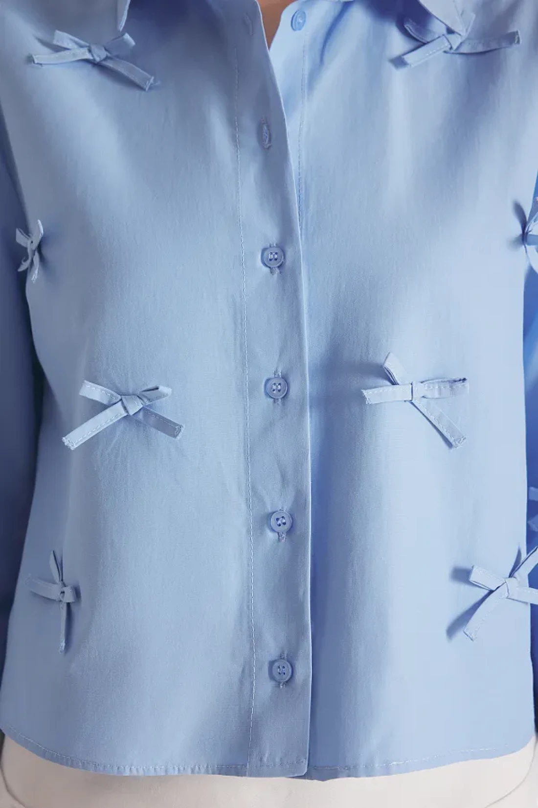 Collection قميص بفيونكة زرقاء TWOSS25GO00144