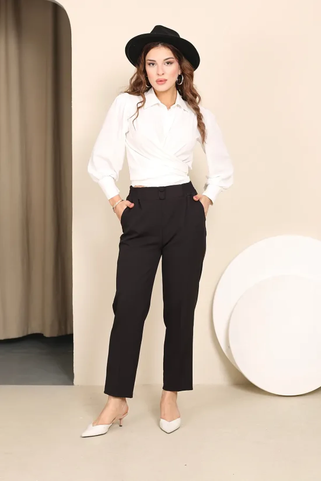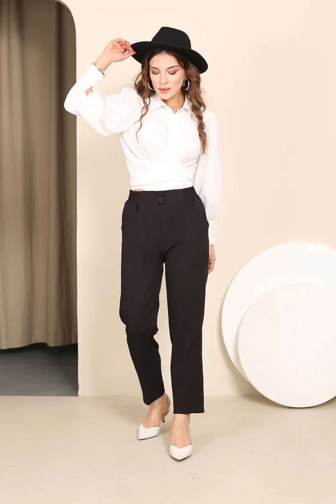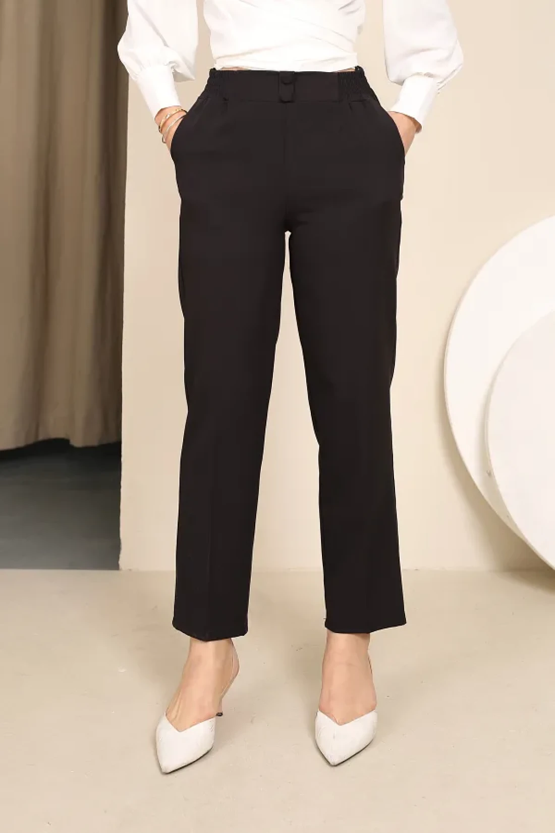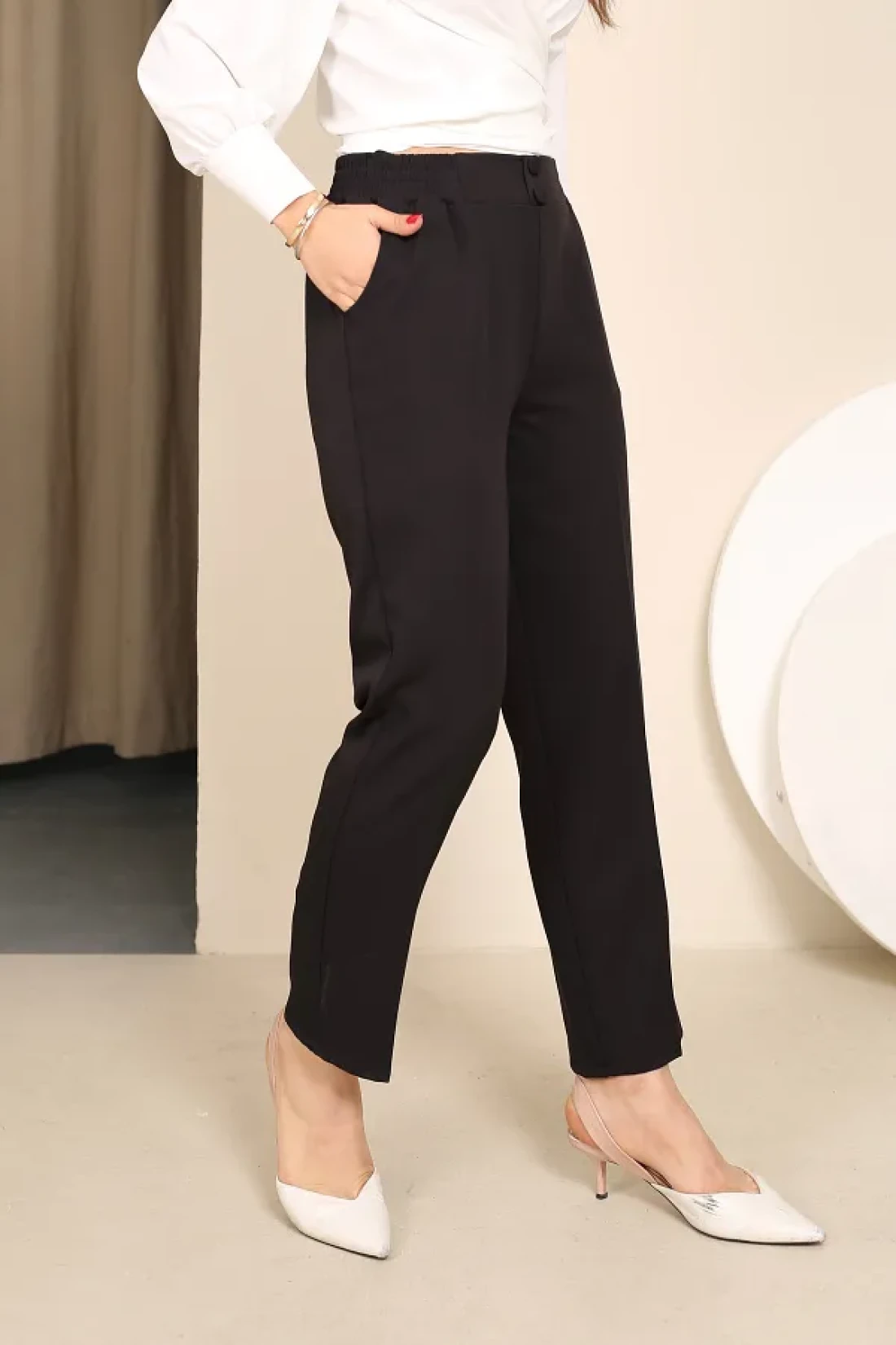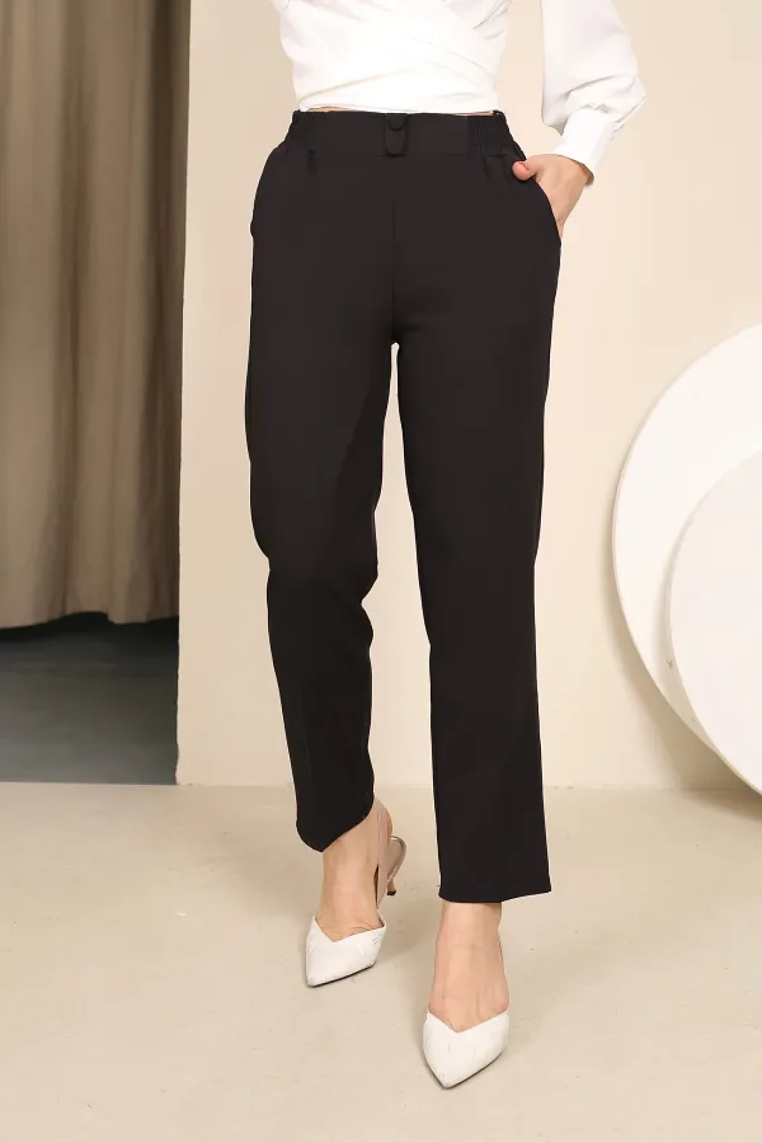 CLB COLLECTION بنطلون نسائي ضيق الساق بخصر مطاطي وزر