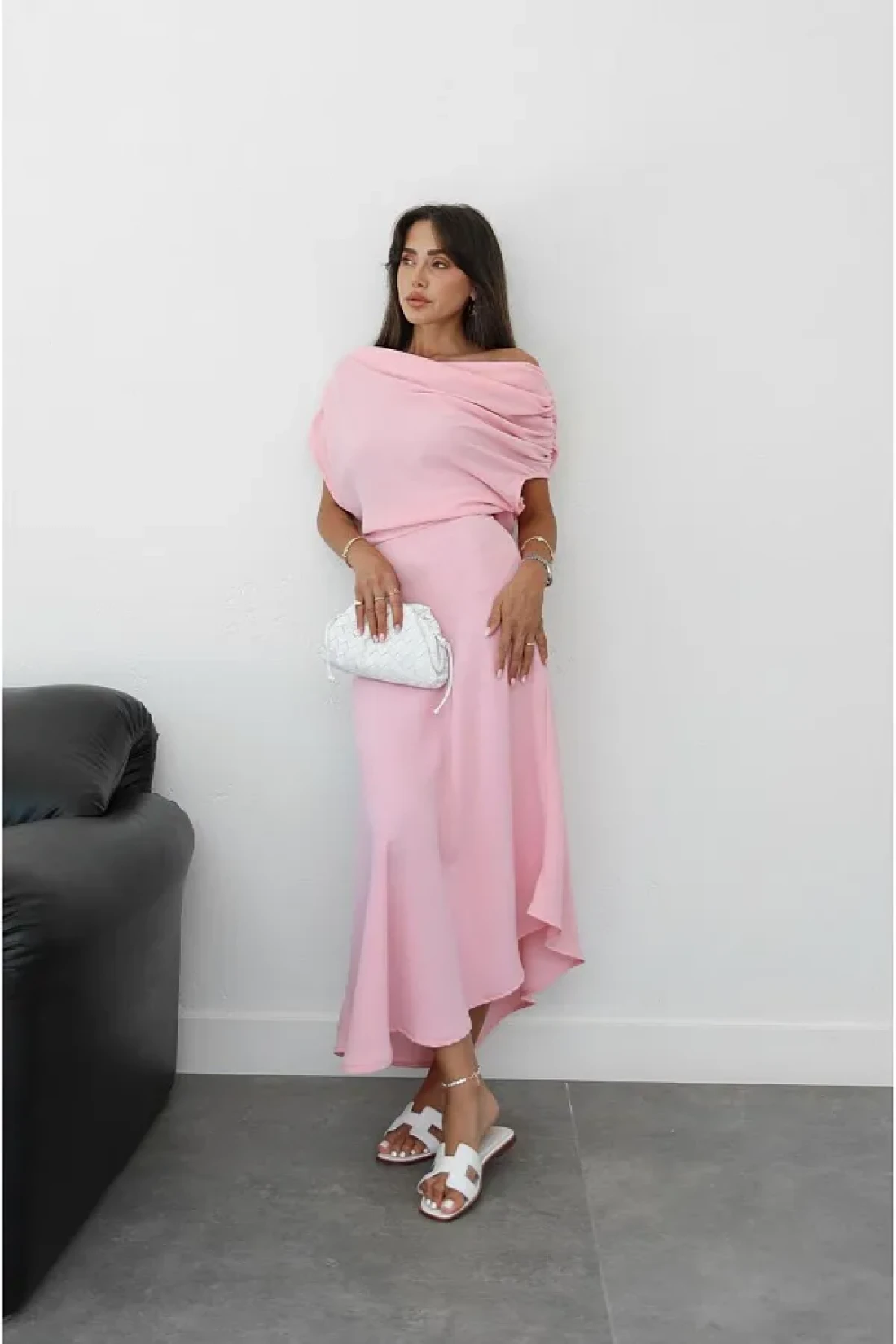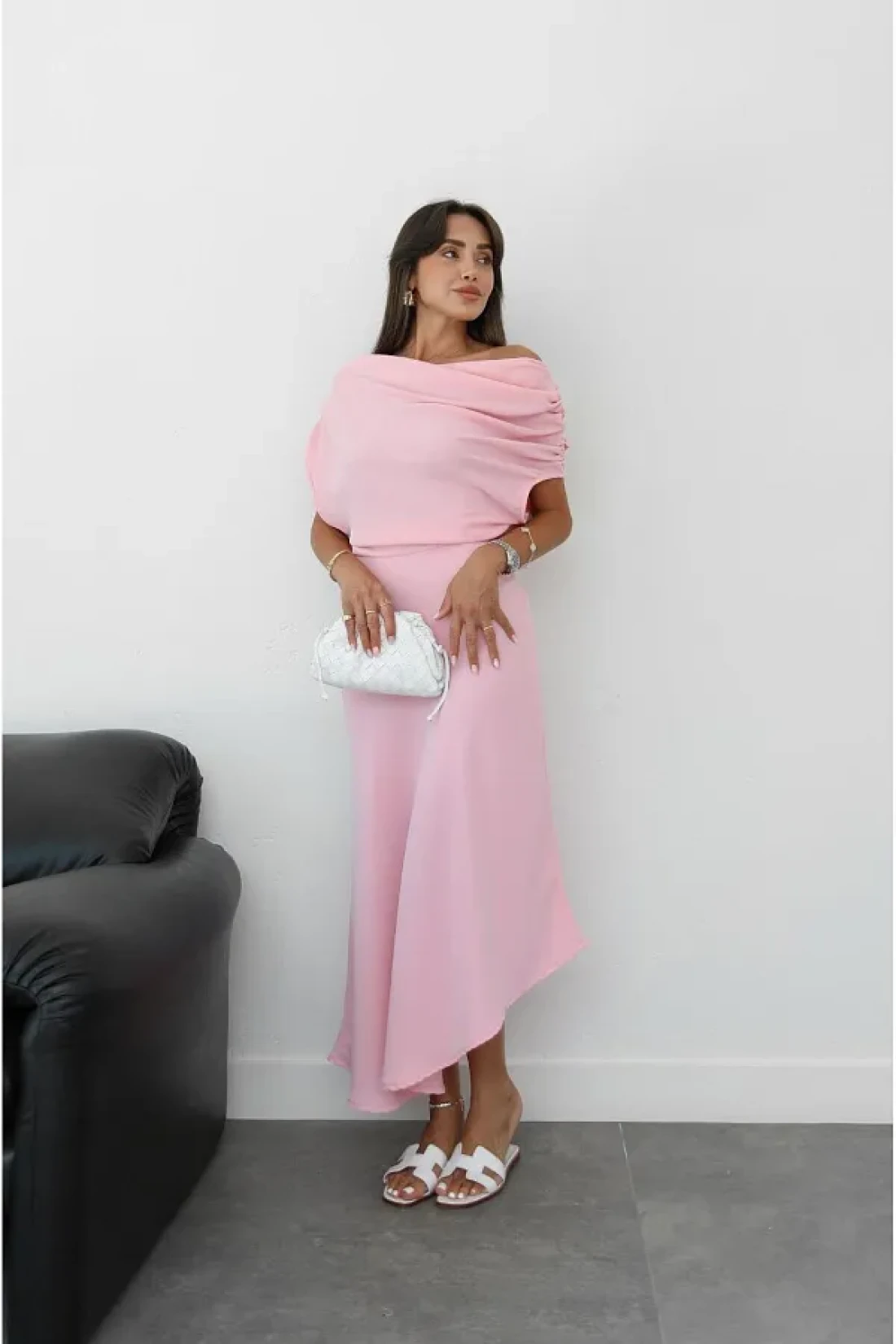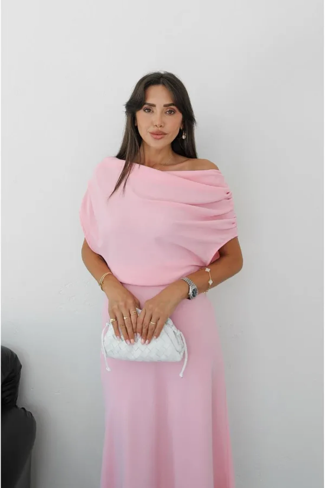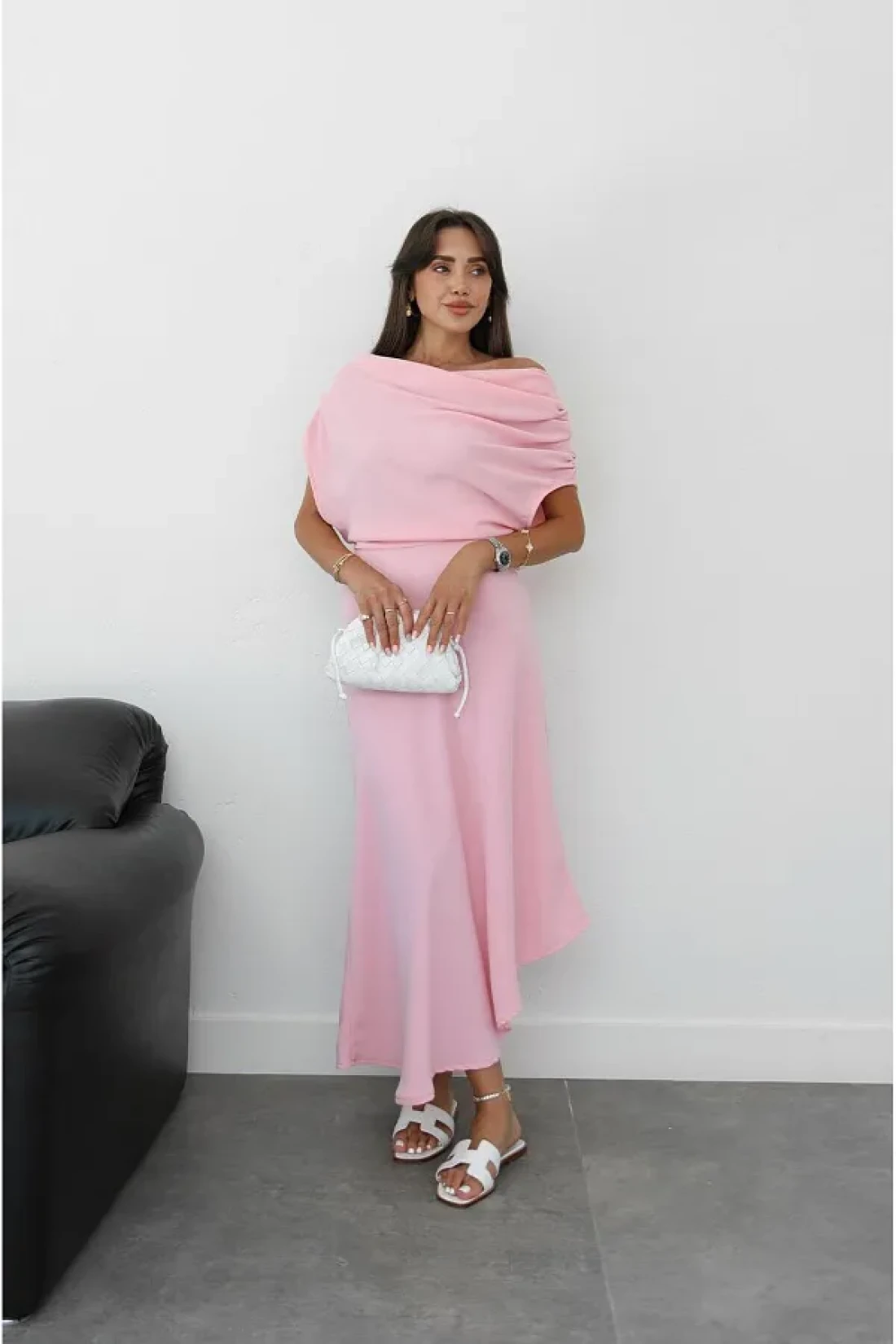 Havoş فستان طويل بتفاصيل كتف وردي