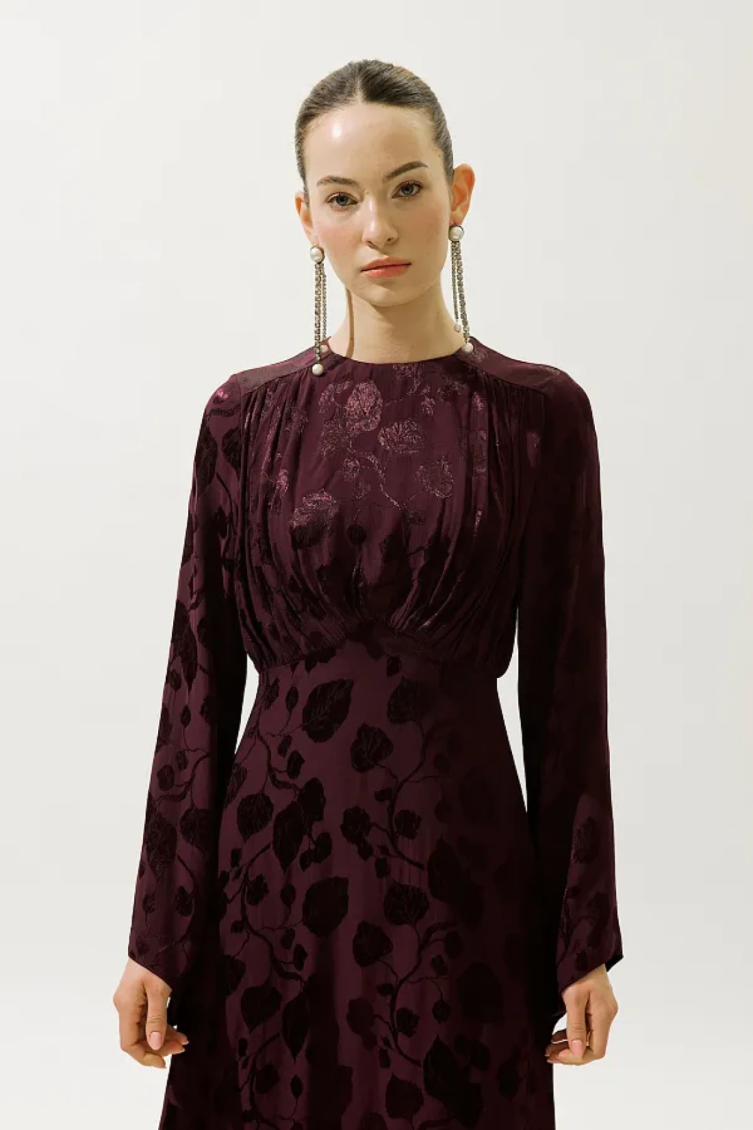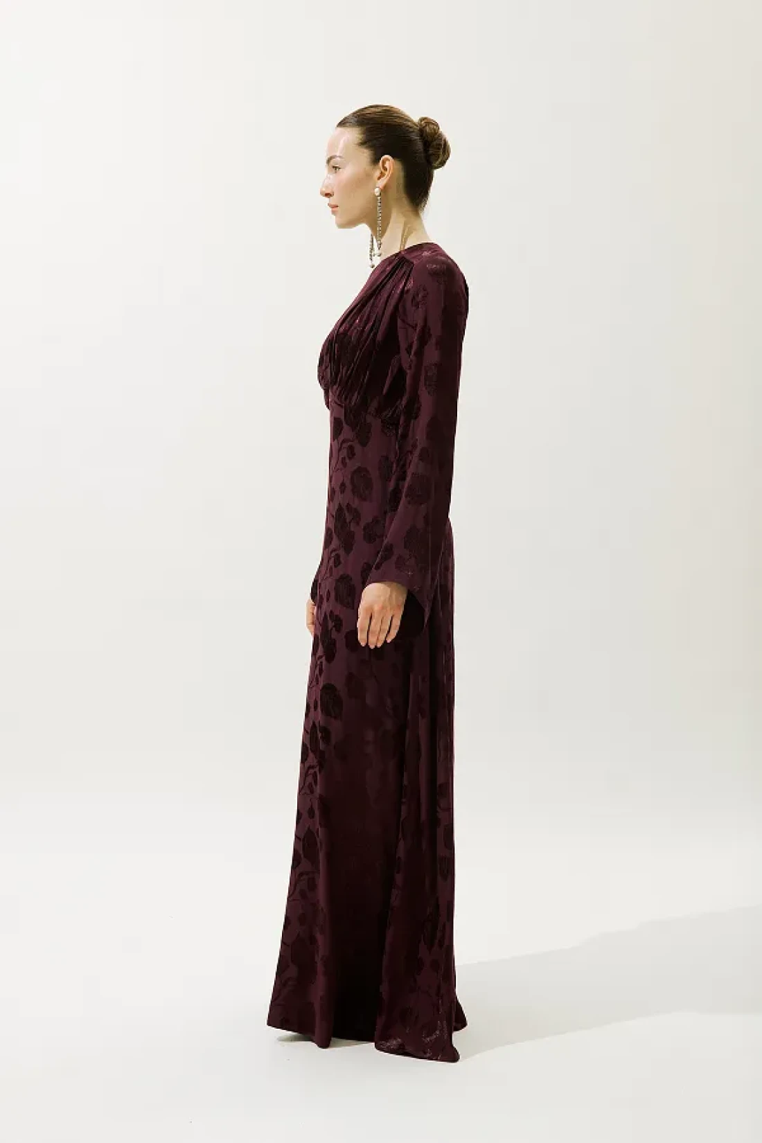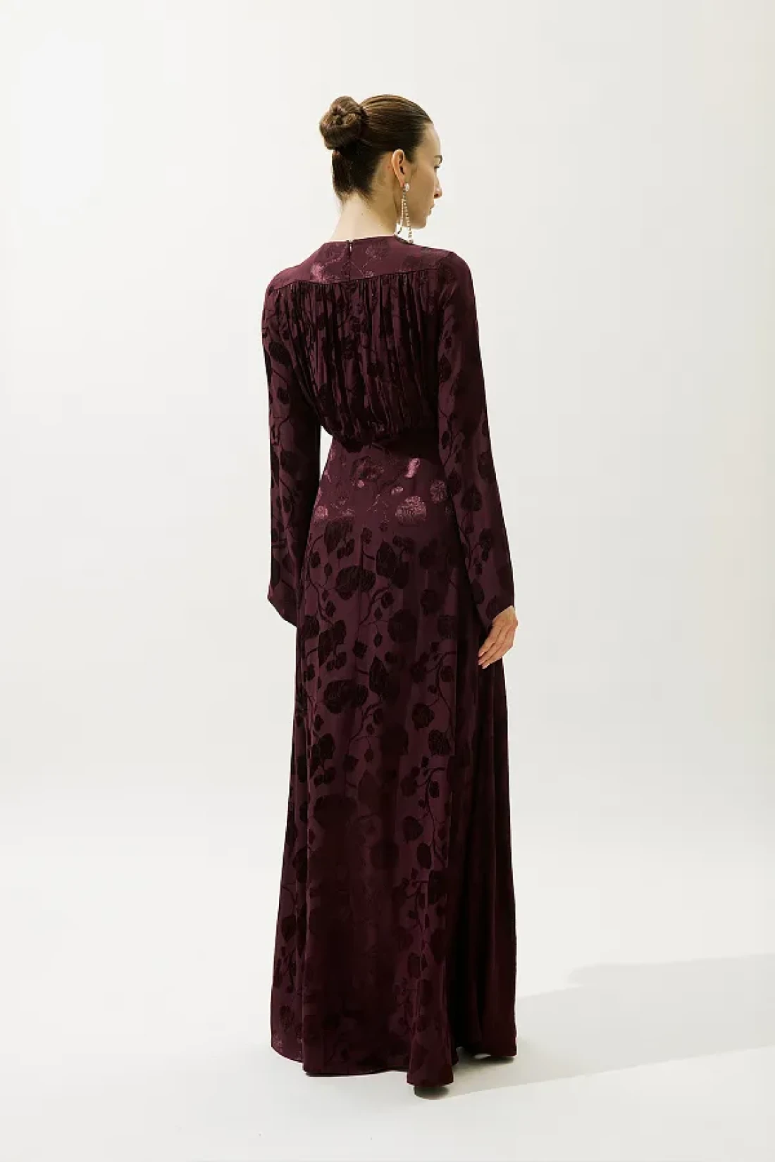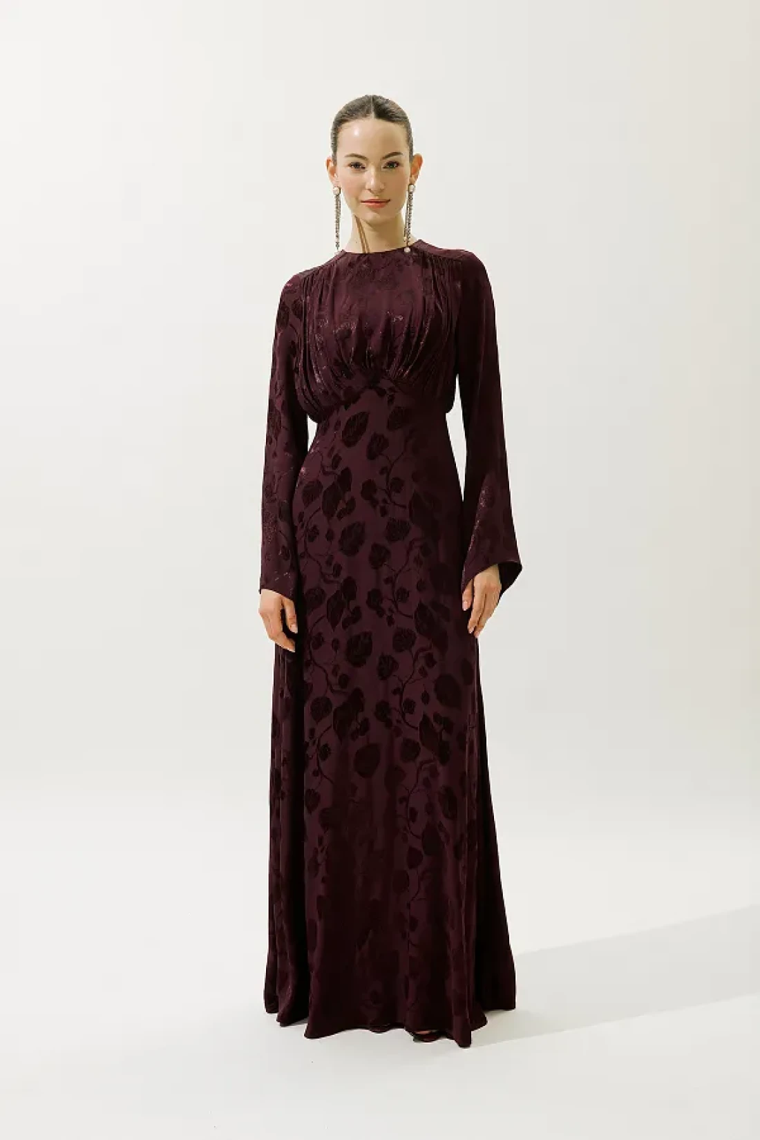 Manuka فستان سهرة من قماش الجاكار الساتان باللون الأحمر الداكن