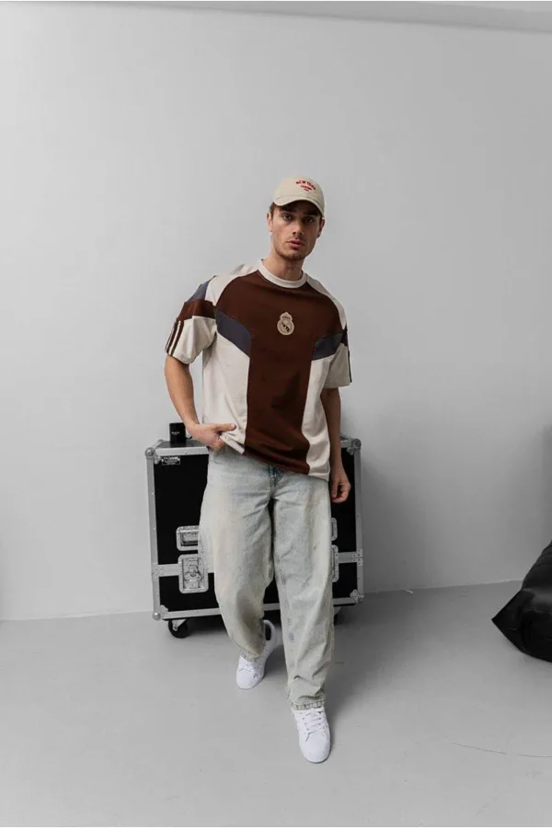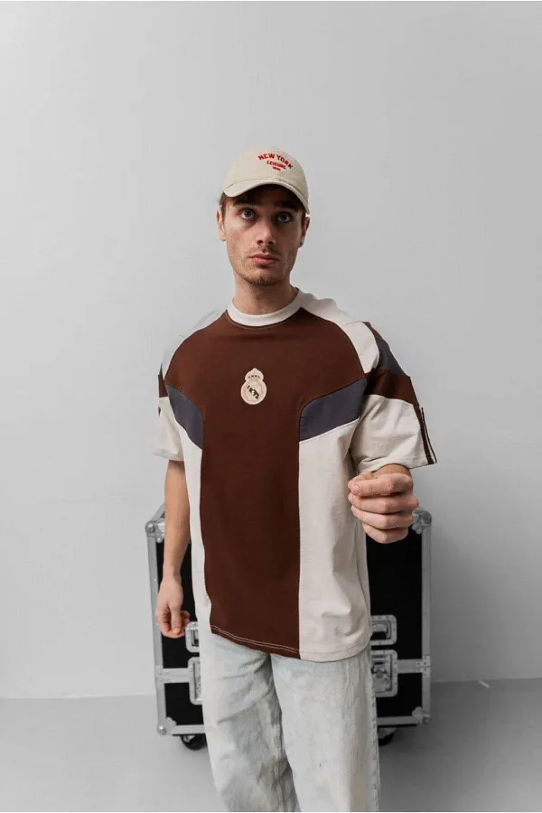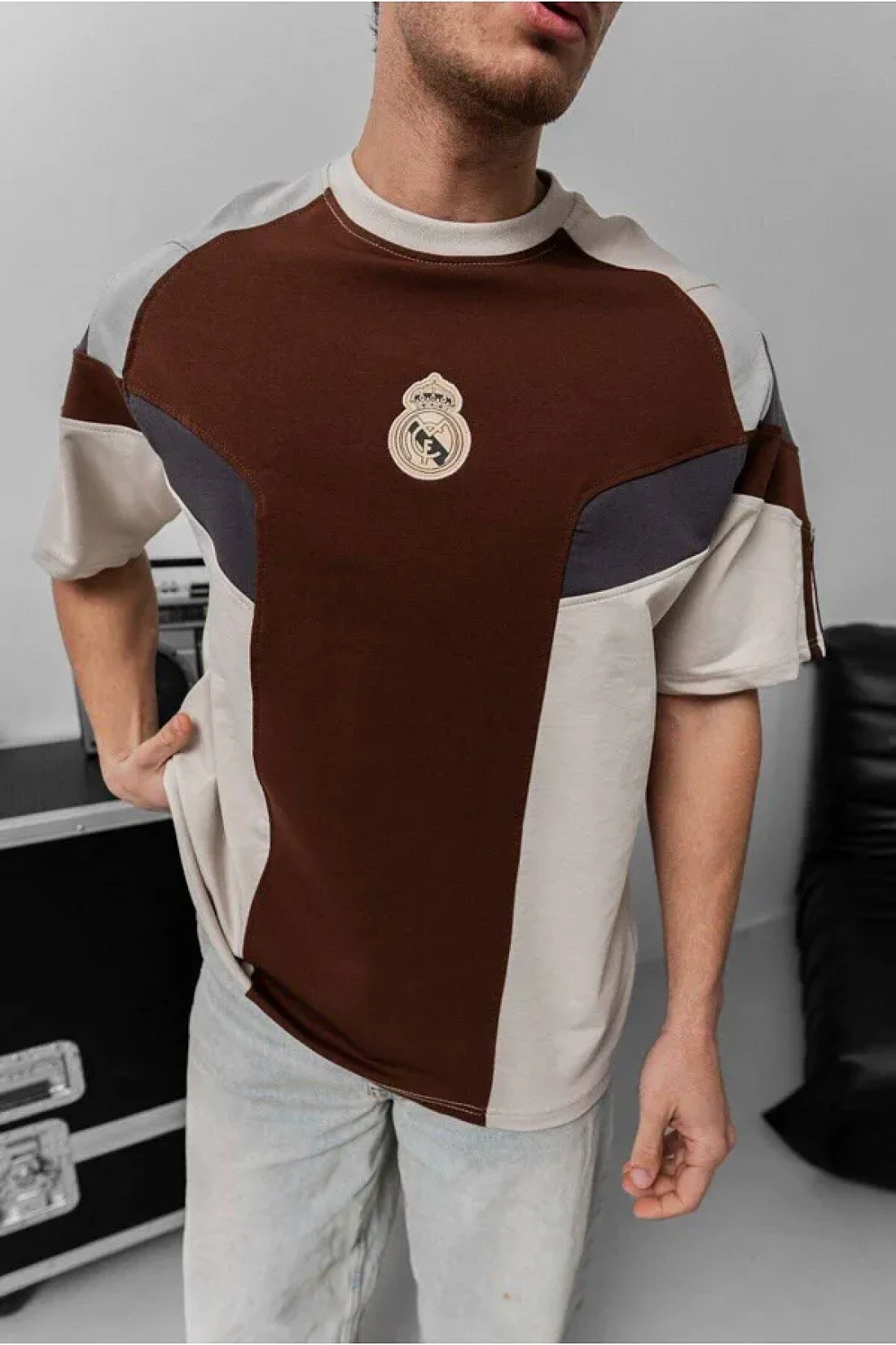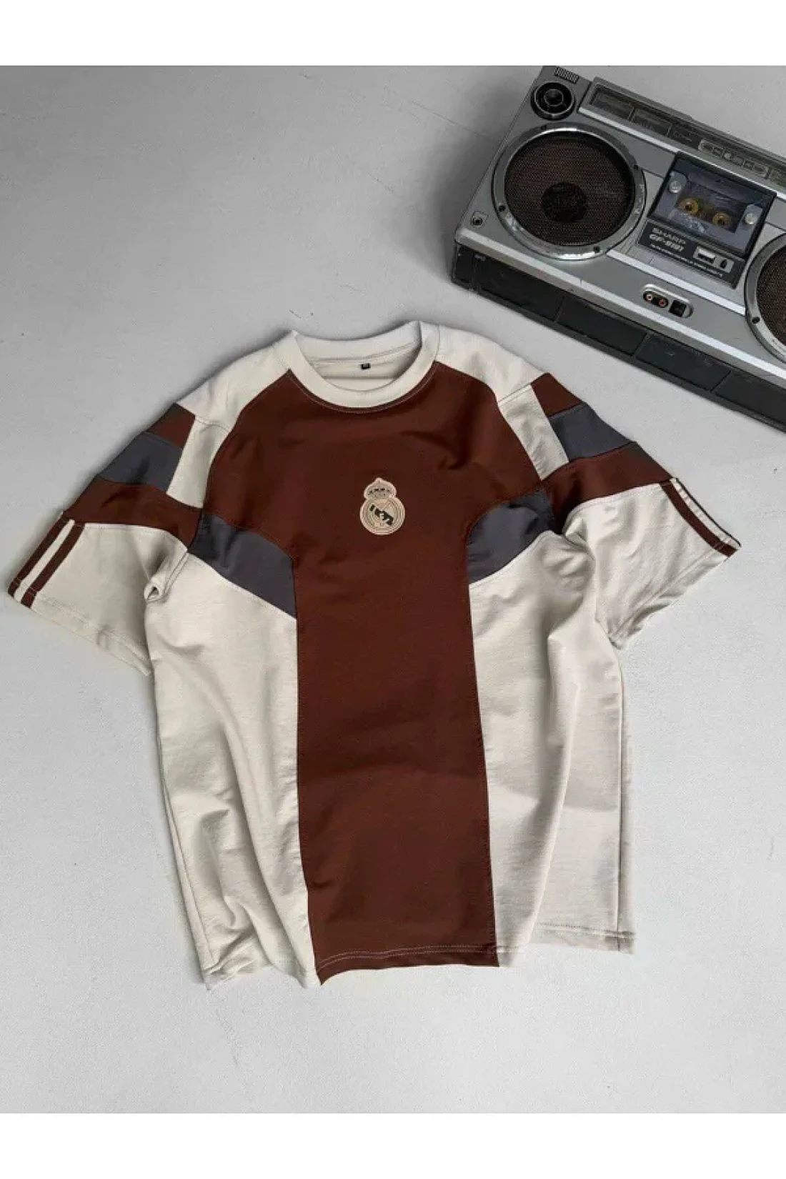 SENTİNEL WEAR ريال ماد. تي شيرت بني كبير الحجم مطرز