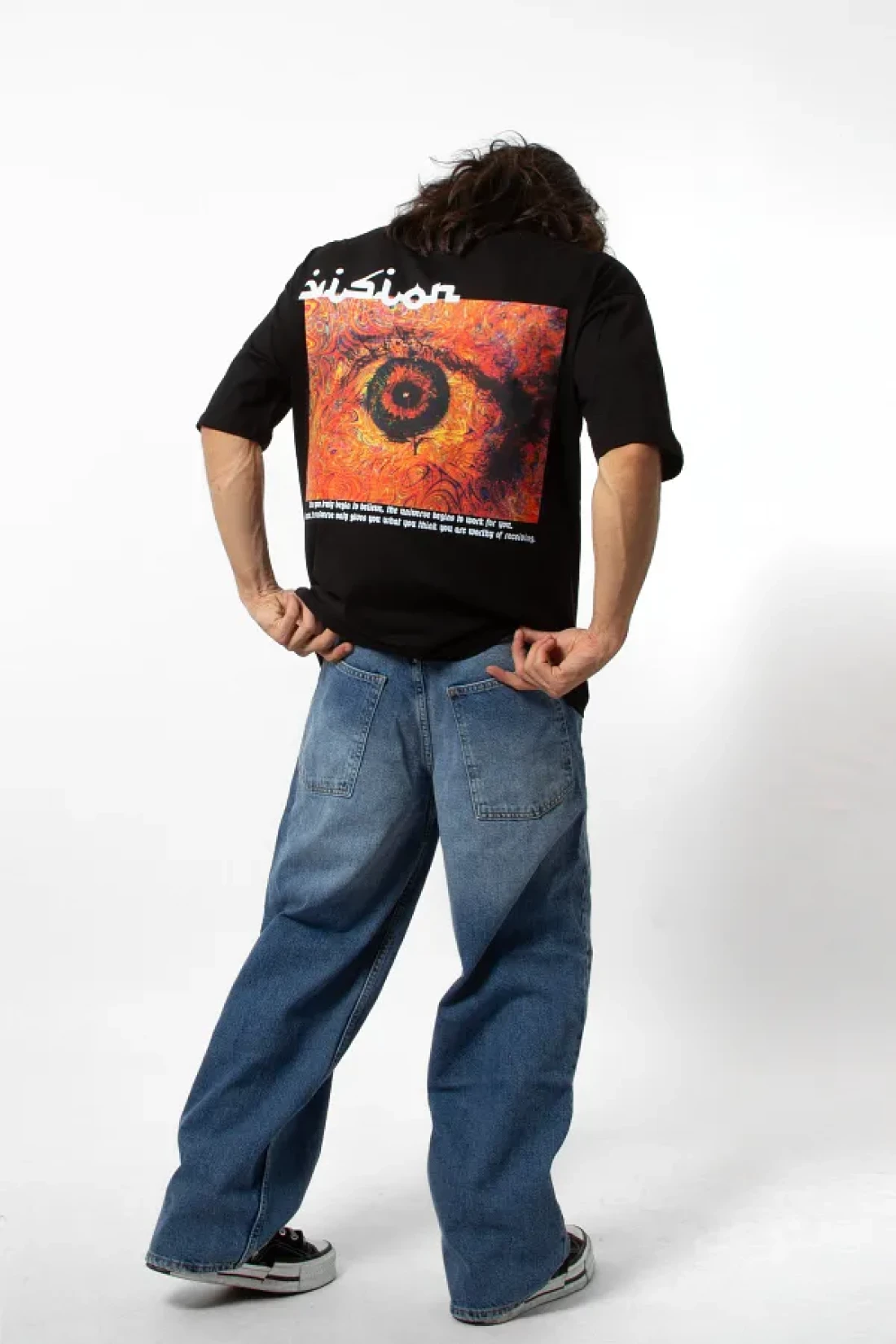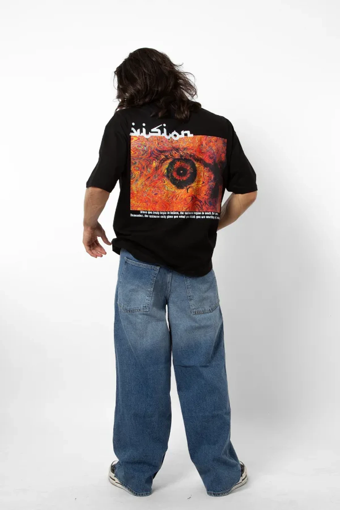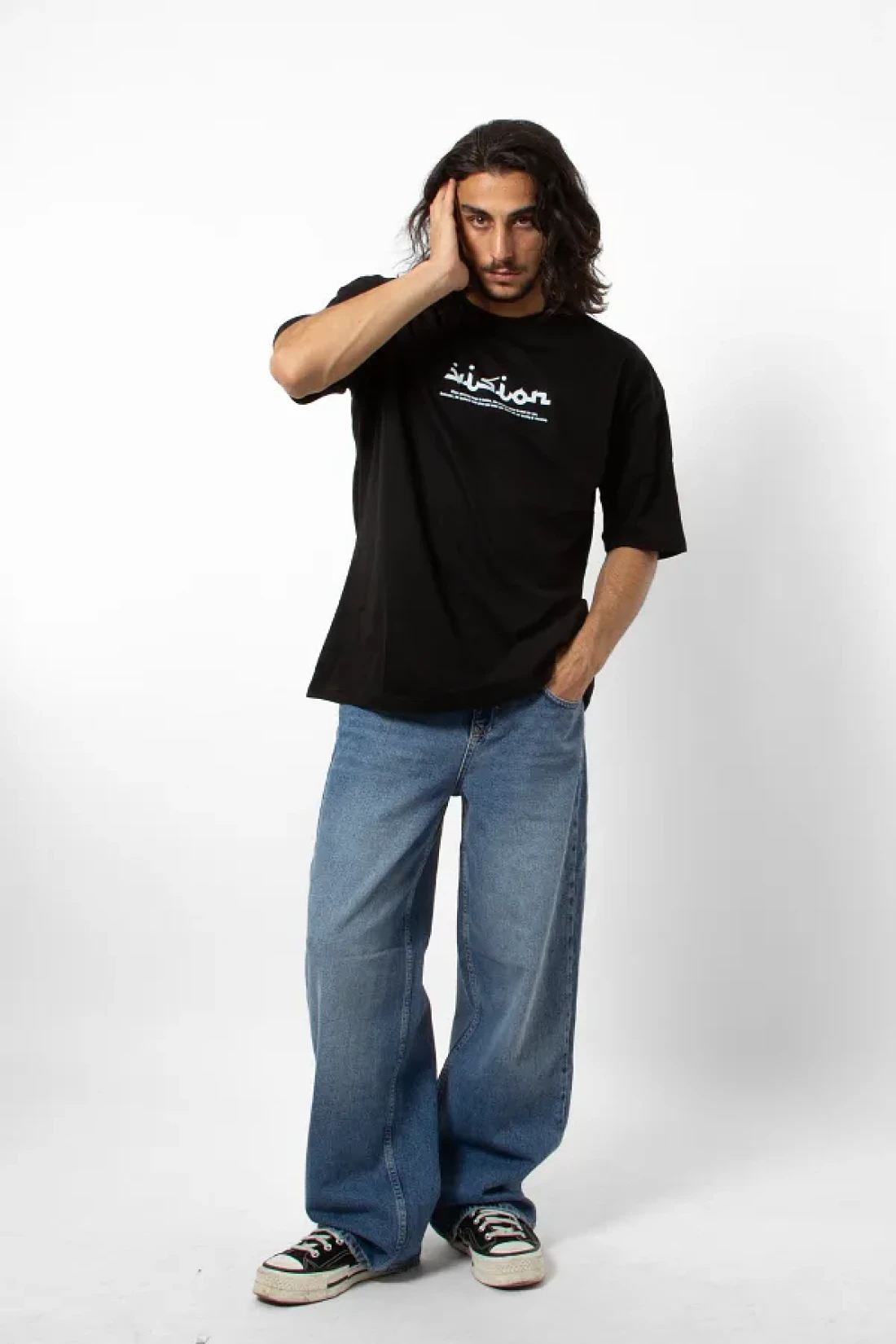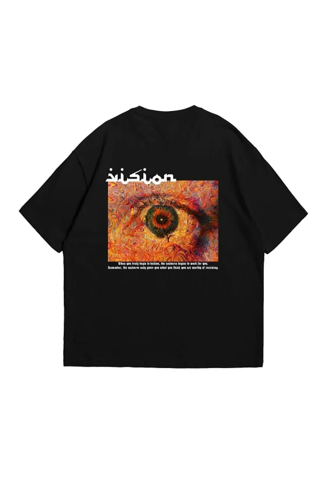 Sekizbiraltı تيشيرت أسود فاخر مقاس كبير مطبوع عليه رؤية 24/1