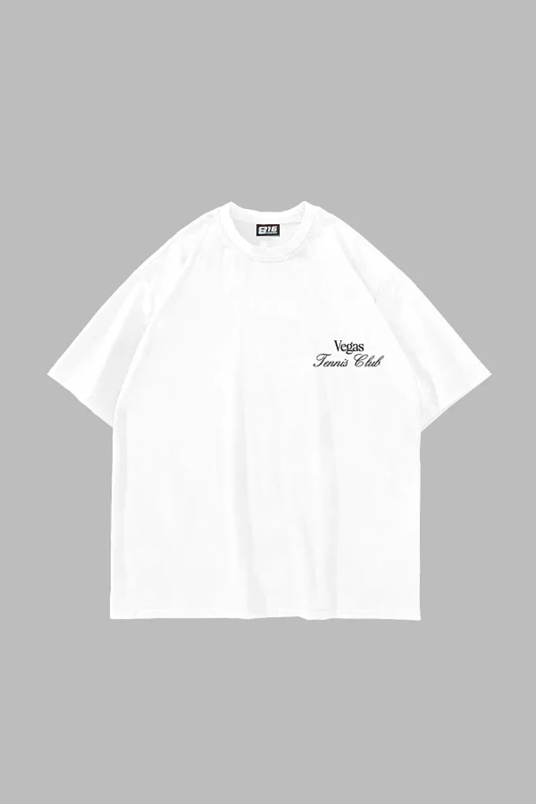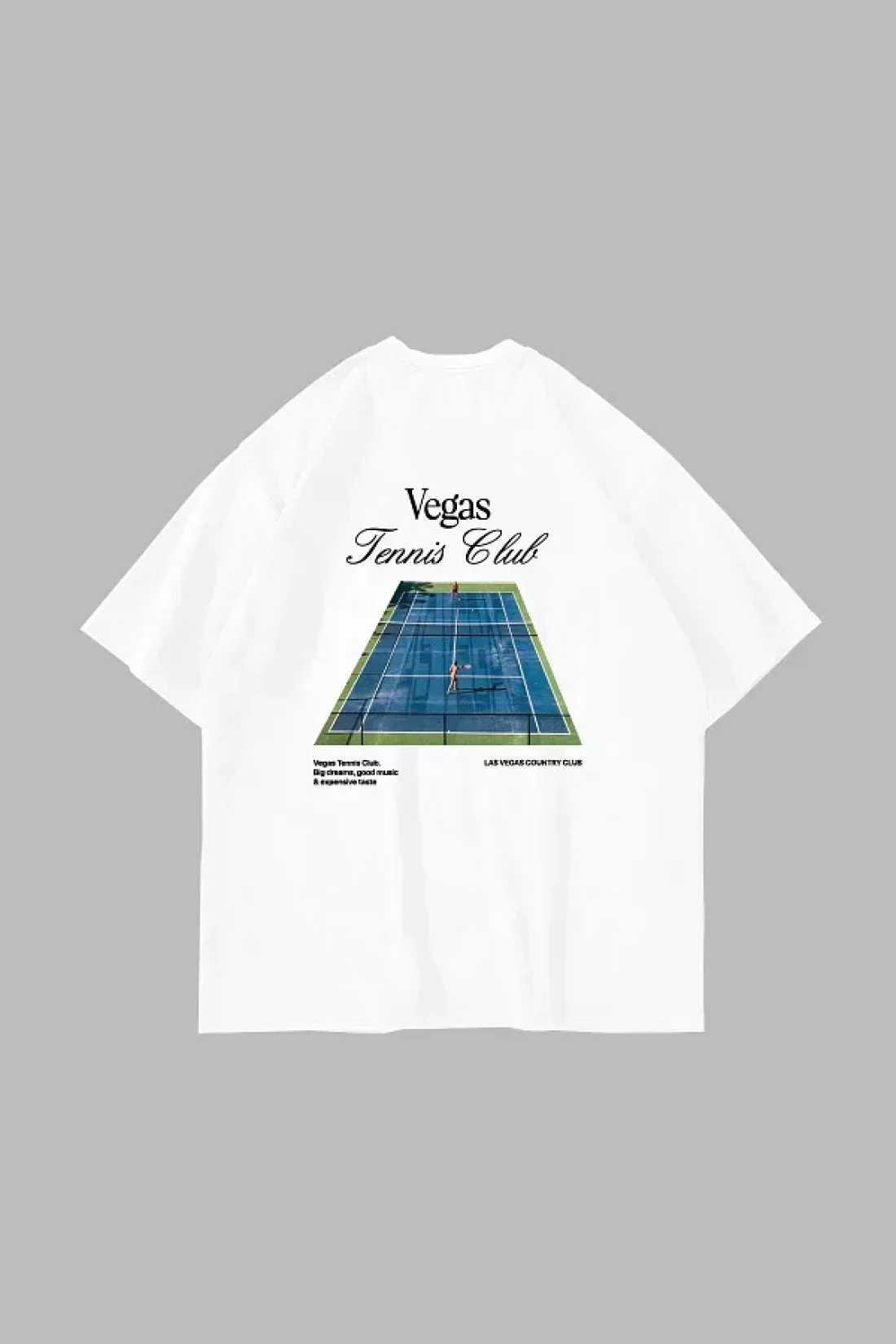 Sekizbiraltı تي شيرت أبيض كبير الحجم مطبوع عليه نادي فيغاس للتنس للجنسين