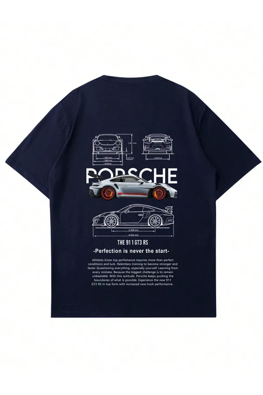 Mad&Calf تيشيرت بورشه GT3 للجنسين برقبة دائرية مقاس كبير