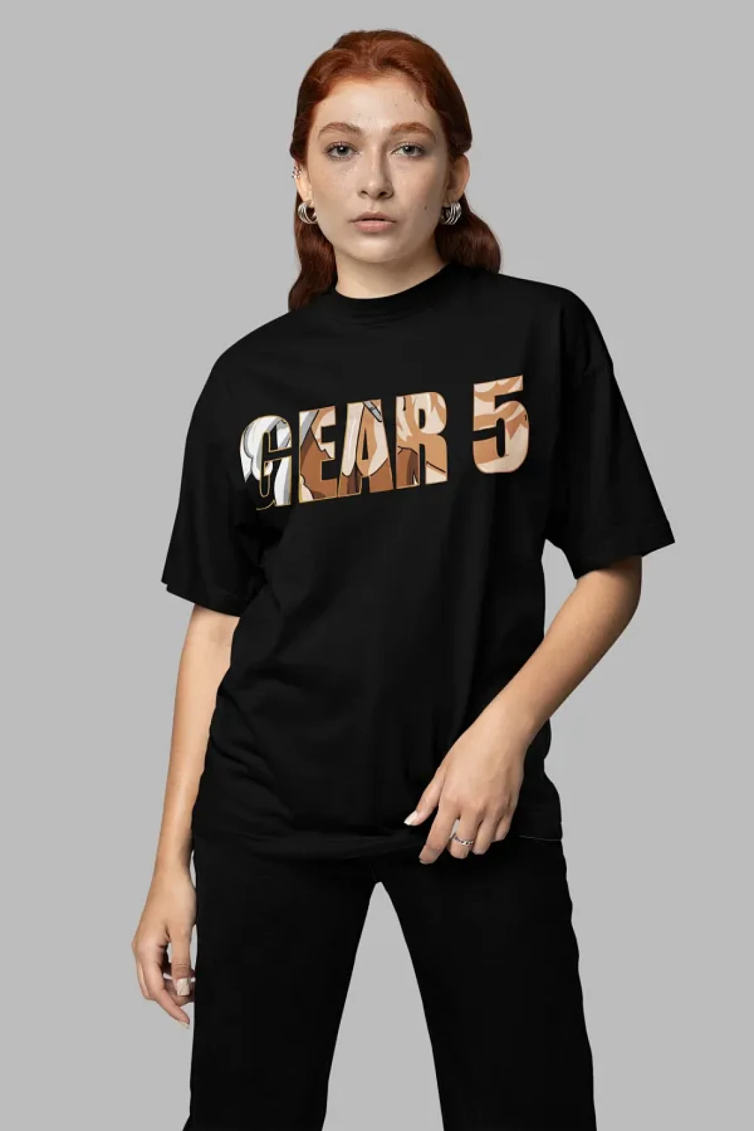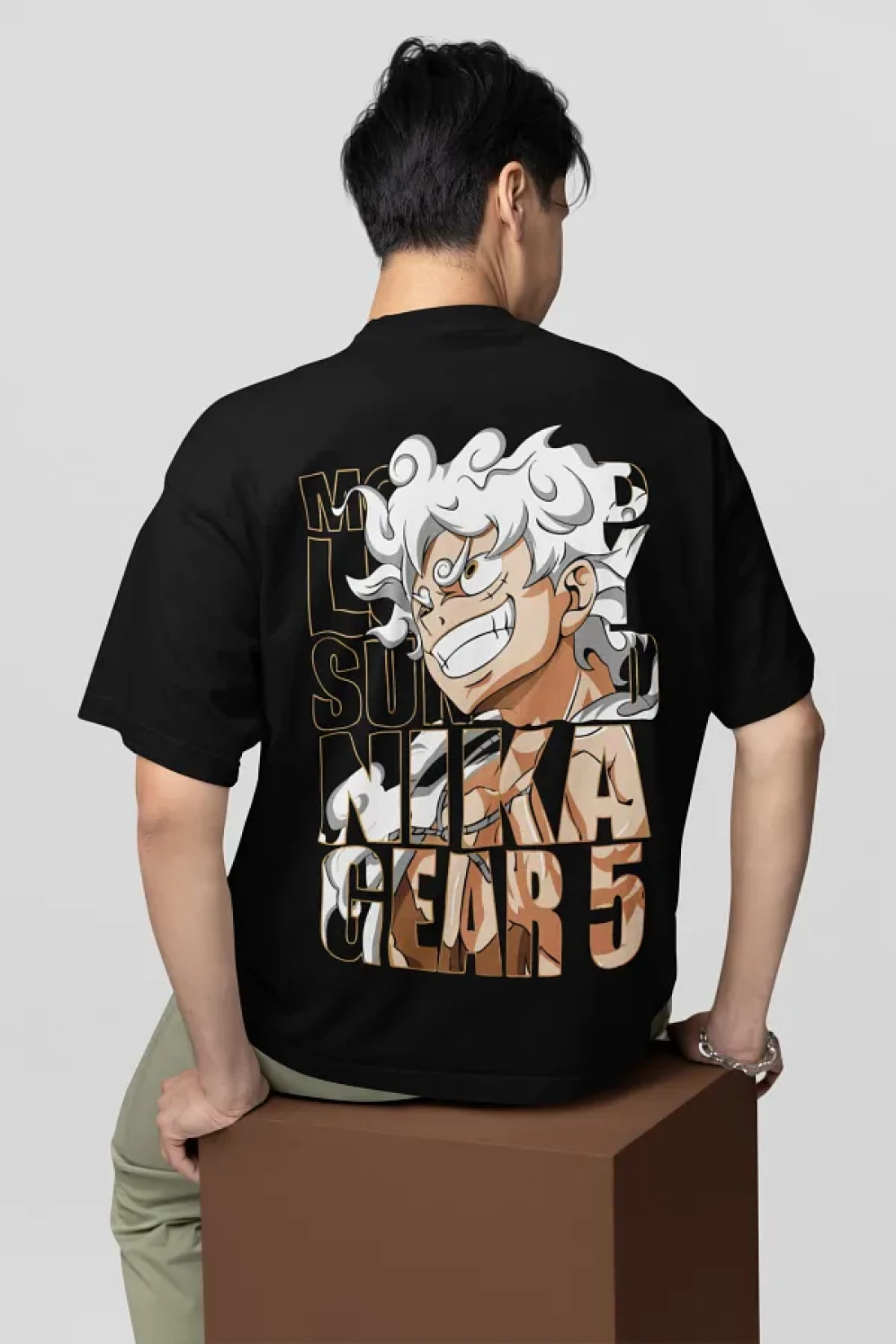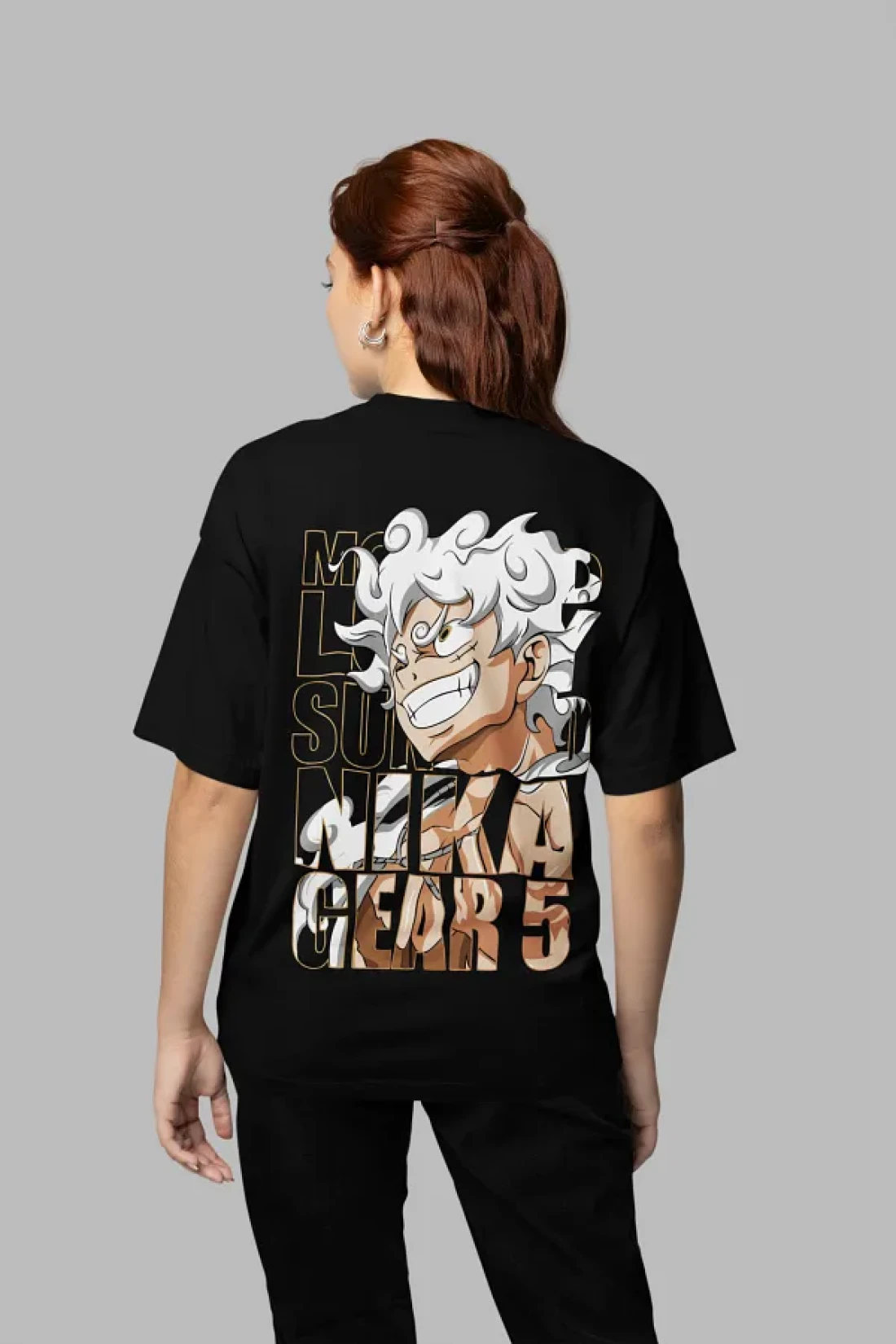 SEVBANO تي شيرت مطبوع عليه شخصية أنمي كبيرة الحجم للجنسين من Monkey D. Luffy Nika Gear 5