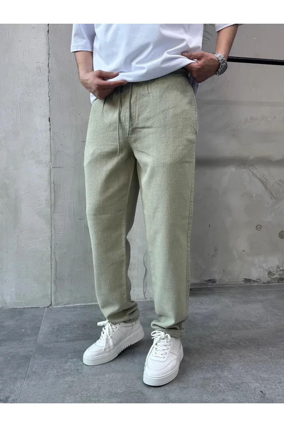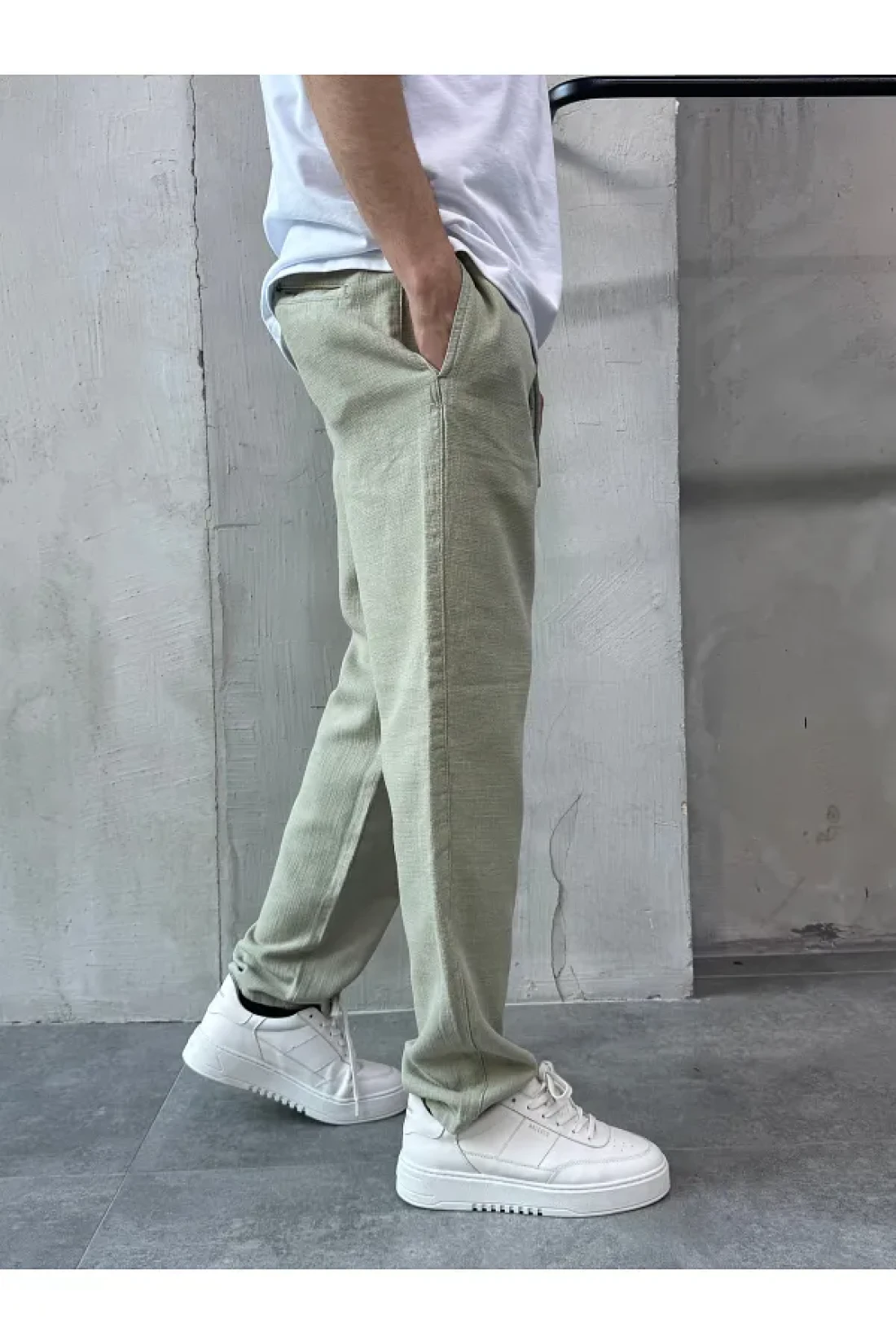 DİFRANSEL بنطال كاكي ريلاكس من الكتان بقصة مريحة