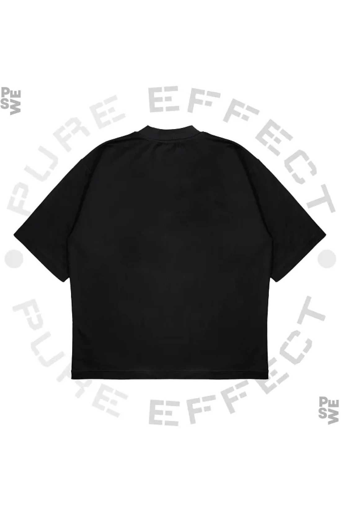 PURE EFFECT تي شيرت من القماش ذو تصميم مربع مناسب للجنسين مقاس كبير باللون الأزرق