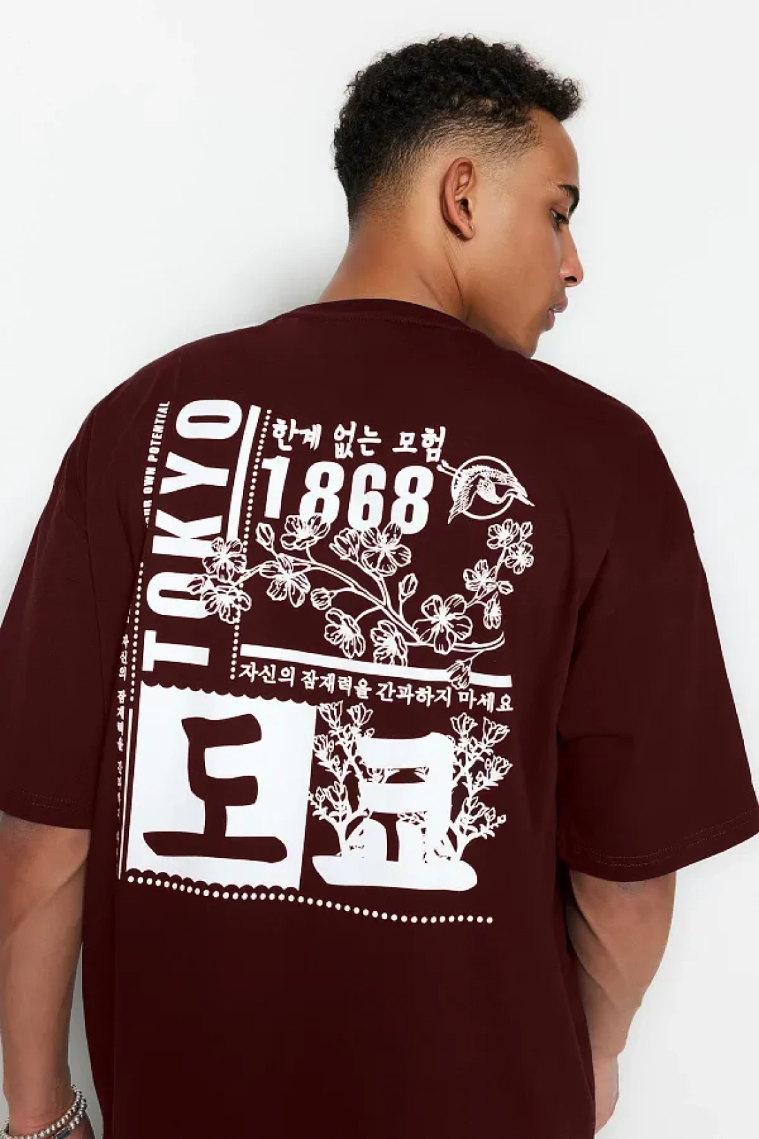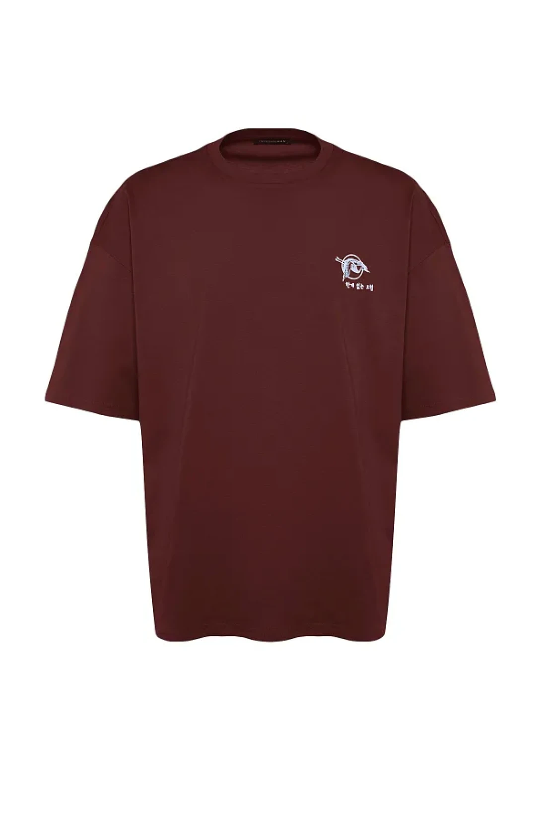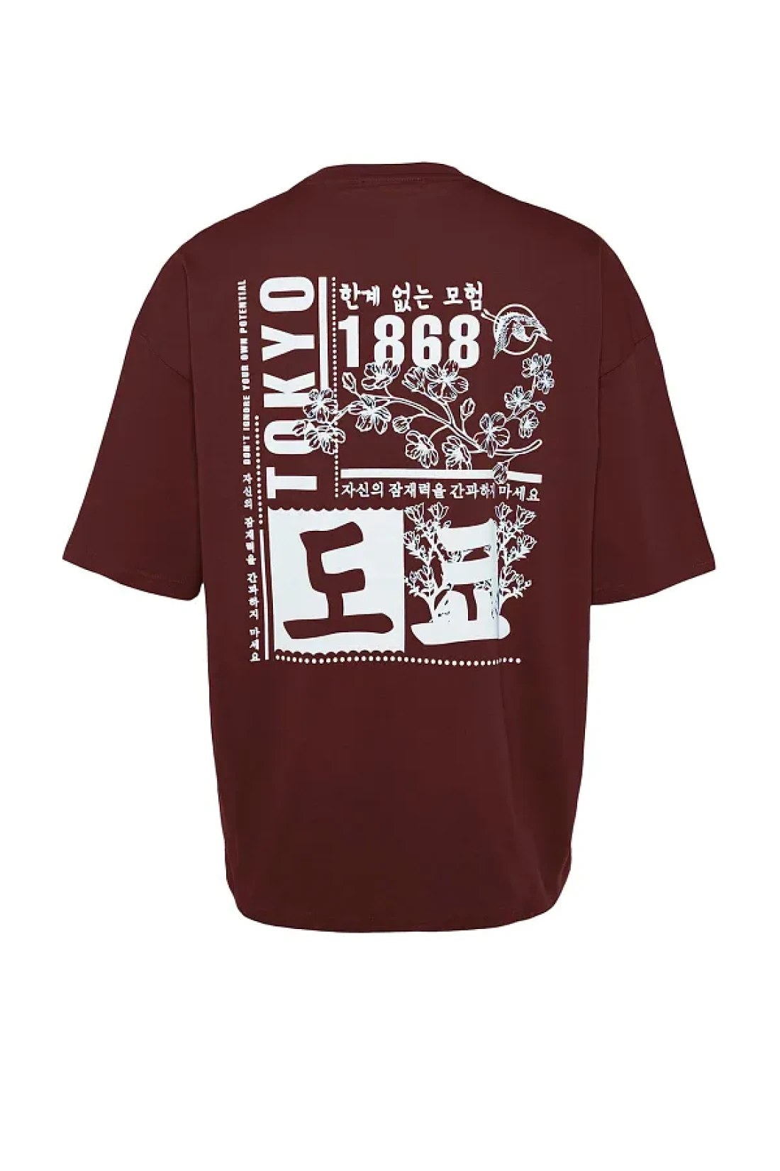Collection تي شيرت قطني بني كبير الحجم بنمط الشرق الأقصى - TMNSS23TS00170