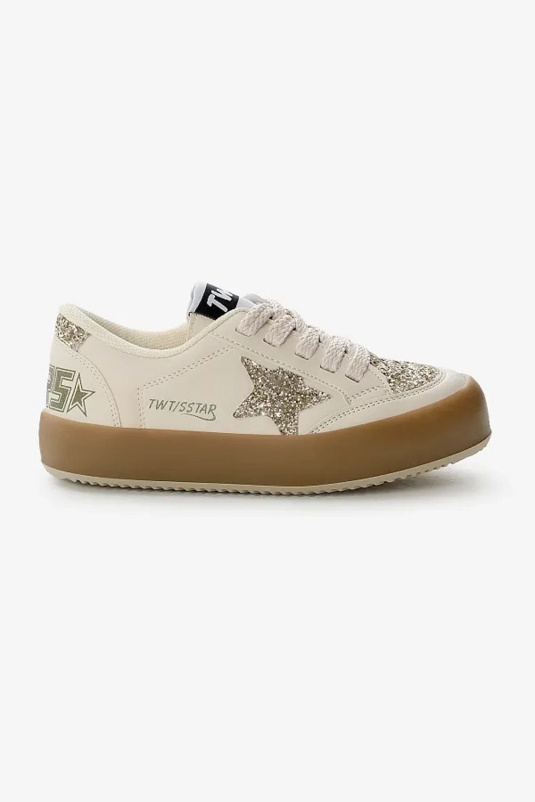 Tonny Black حذاء رياضي للأطفال من الجنسين بنعل حراري كريمي ومزين برباط وشريط فيلكرو