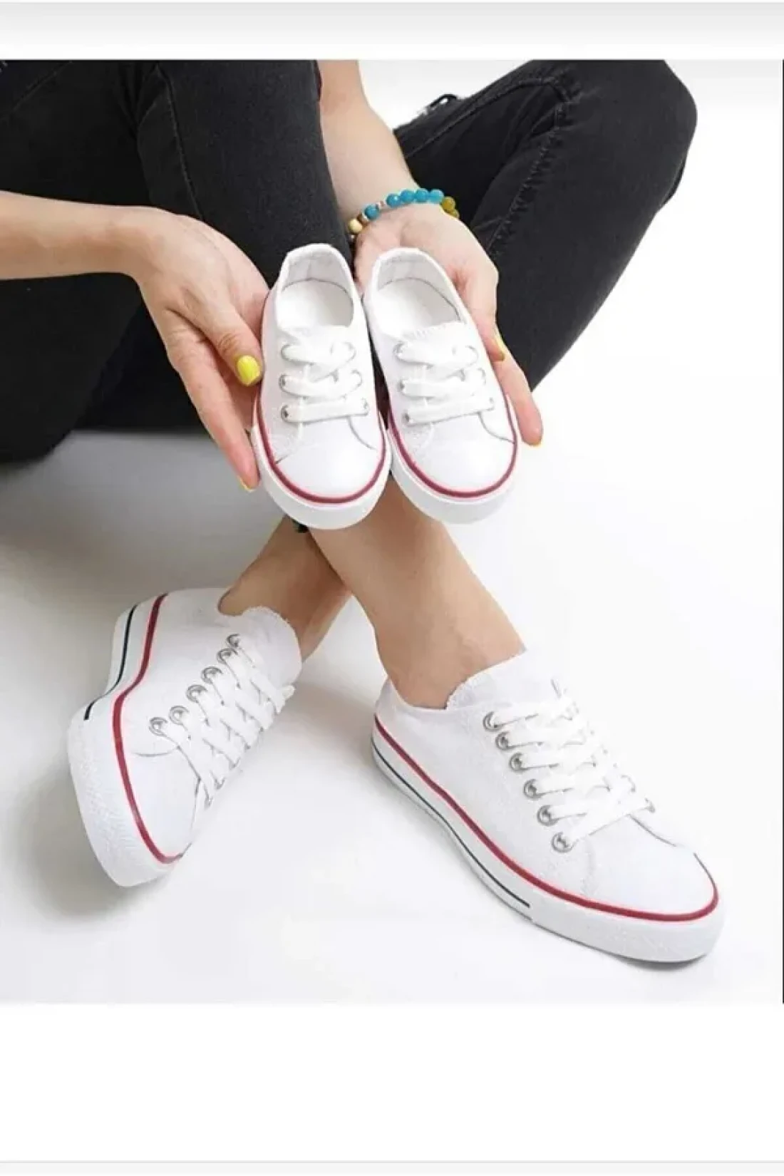 مع تصميمها الذي يعكس الإثارة للعودة إلى المدرسة، أحذية رياضية بيضاء للجنسين يمكن للأطفال والكبار اختيارها براحة. قطعة من المجموعة مصممة خصيصًا للأطفال والرضع، تقدم الراحة والأناقة معًا لجميع الفئات العمرية. بفضل مادة البطانة النسيجية، فإنه يسمح لقدميك بالتنفس طوال اليوم ويوفر الراحة حتى أثناء الاستخدام طويل الأمد. مع هيكلها ذو الكعب المسطح، تزيد من حرية الحركة خلال اليوم، بينما تجلب أيضا الاستقرار. يتيح لك اتخاذ خطوات آمنة على جميع أنواع الأرضيات بفضل ميزة النعل المضاد للانزلاق. يساعد على الحفاظ على جفاف قدميك حتى في الظروف الصعبة مثل المطر والطين؛ توفر المادة الخارجية من نوع القماش الخفة والمتانة، مما يجعلها معك في أيامك النشطة. بفضل نظام الربط ذو الأربطة، يضمن أن الحذاء يناسب قدمك بشكل مثالي ويثبت بشكل آمن. تصميم بنمط مسطح، يمكن مطابقته بسهولة مع أي ملابس، بمظهر بسيط وأنيق، يزيد من