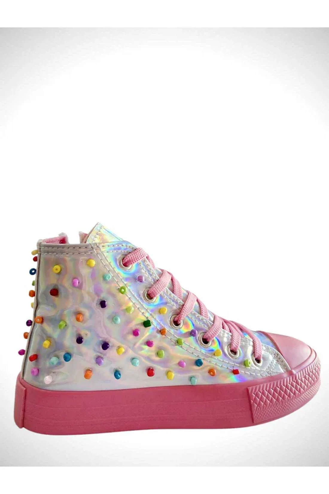 LİASSHOES حذاء رياضي للأطفال مزين بالخرز وسحاب جانبي وقاعدة وردية اللون