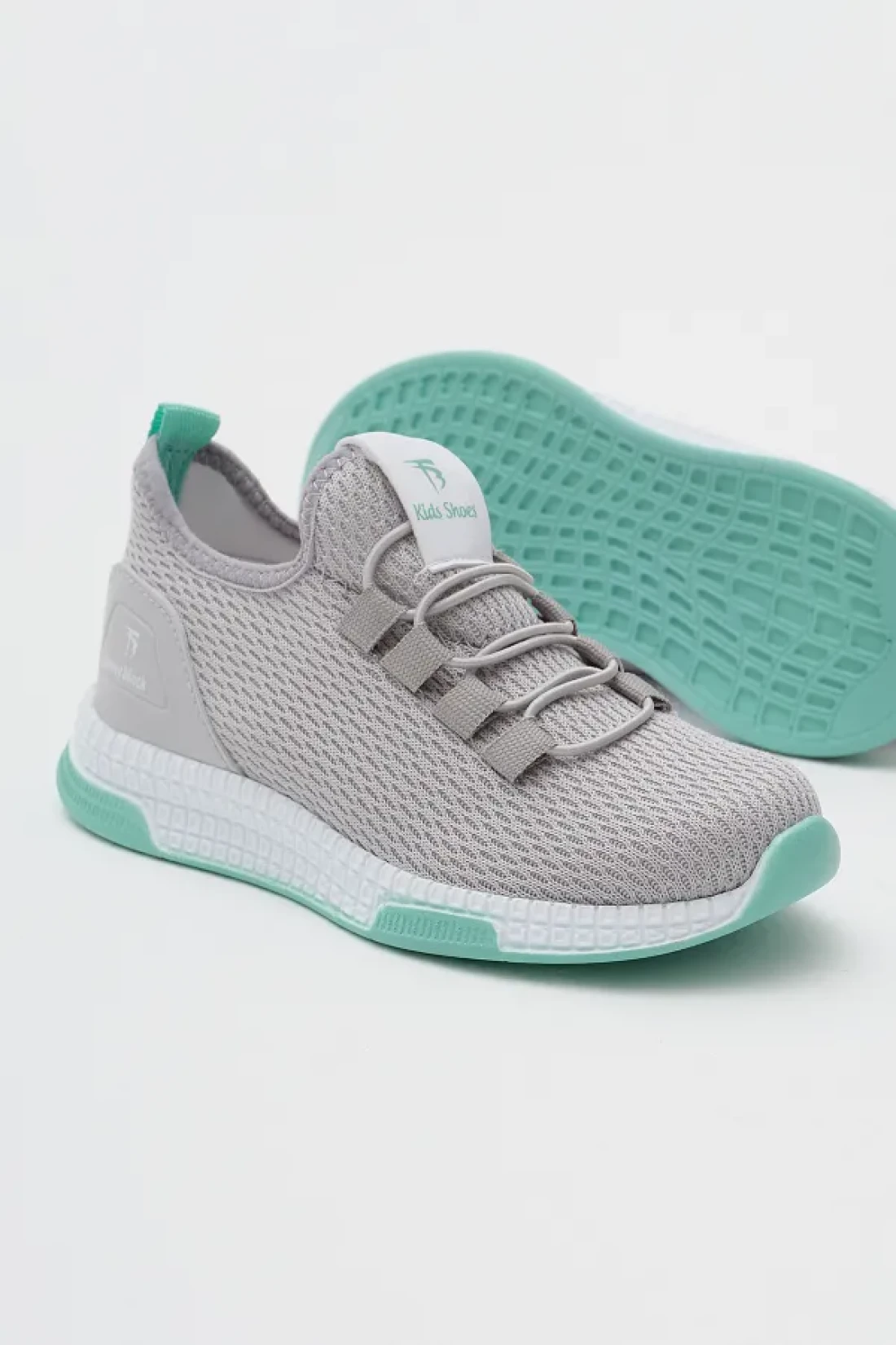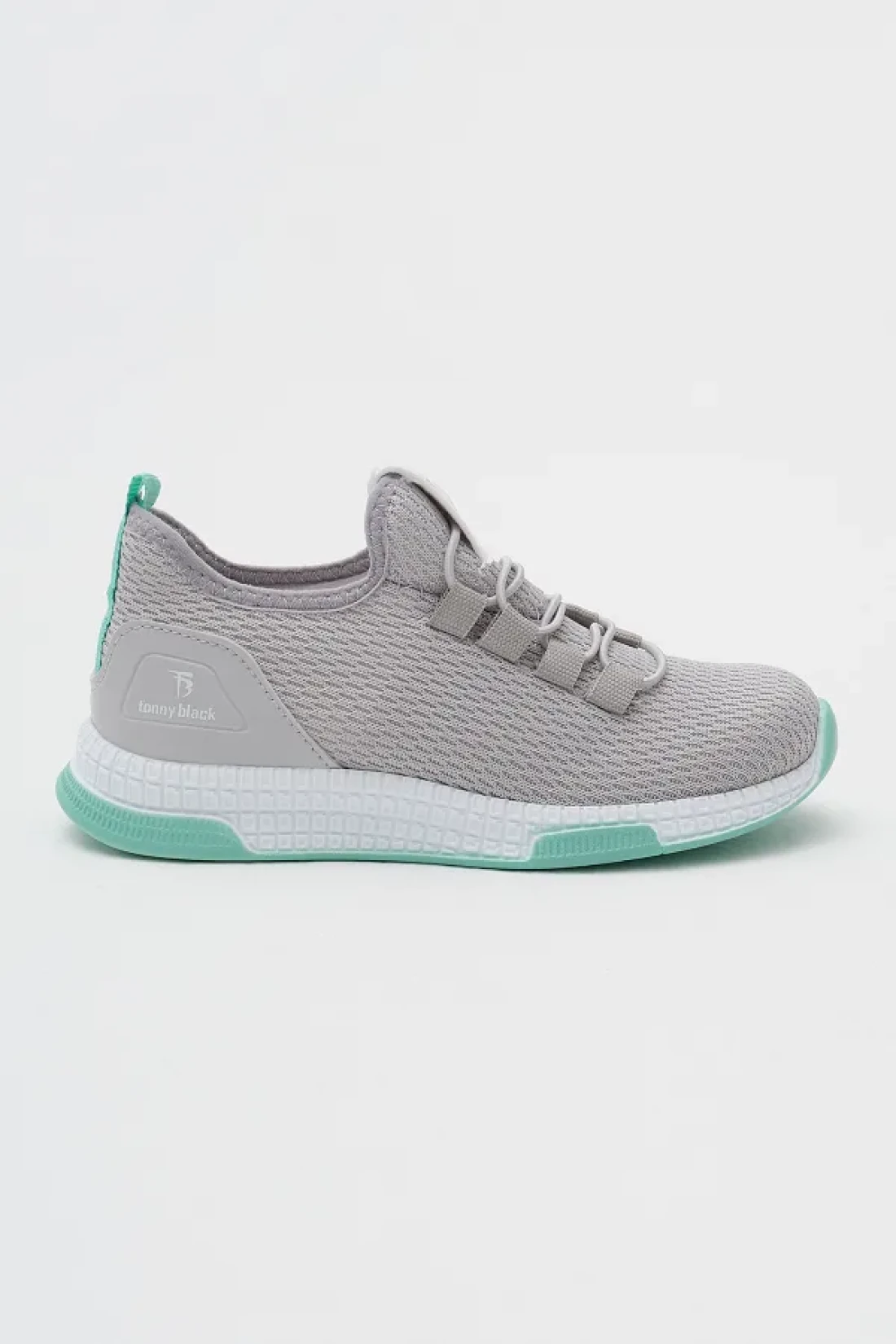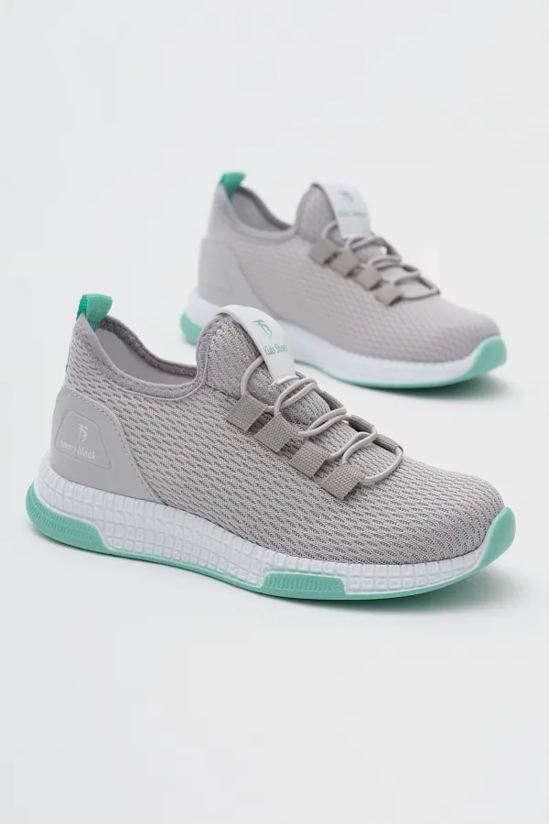 Tonny Black حذاء رياضي برباط مطاطي مريح باللون الرمادي والأخضر للأطفال