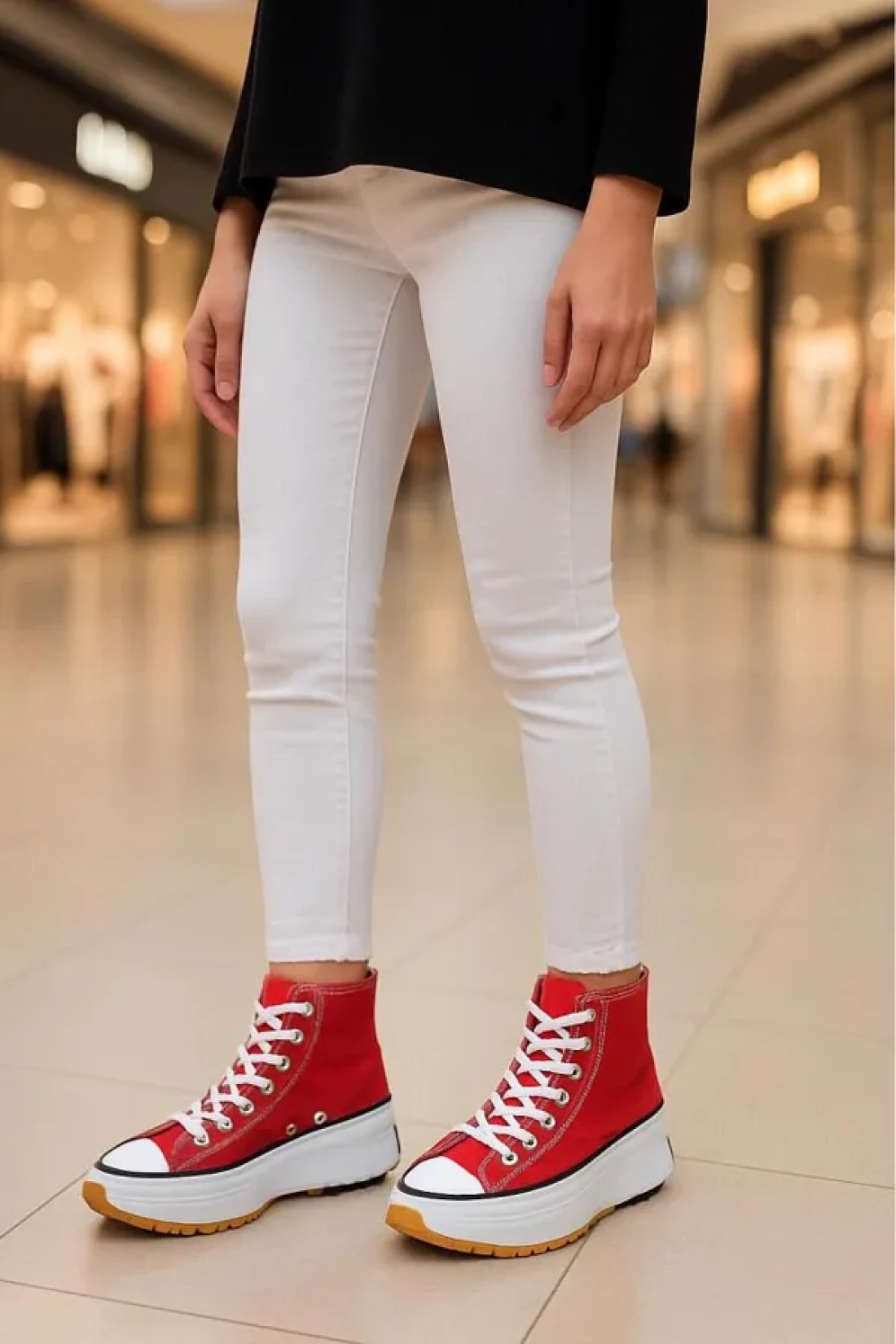 تم تصميمه بشكل خاص بمنصته ونعله المطاطي المحفور. تفاصيل مثل هيكل القماش، وغطاء الأنف المطاطي، وعلامة المعصم مطابقة للأصل، بينما تضفي المنصة المصبوبة والنعل الخارجي ذو اللونين والكعب الدائري إحساسًا مستقبليًا. المواصفات الفنية حذاء رياضي من القماش ذو منصة عالية.