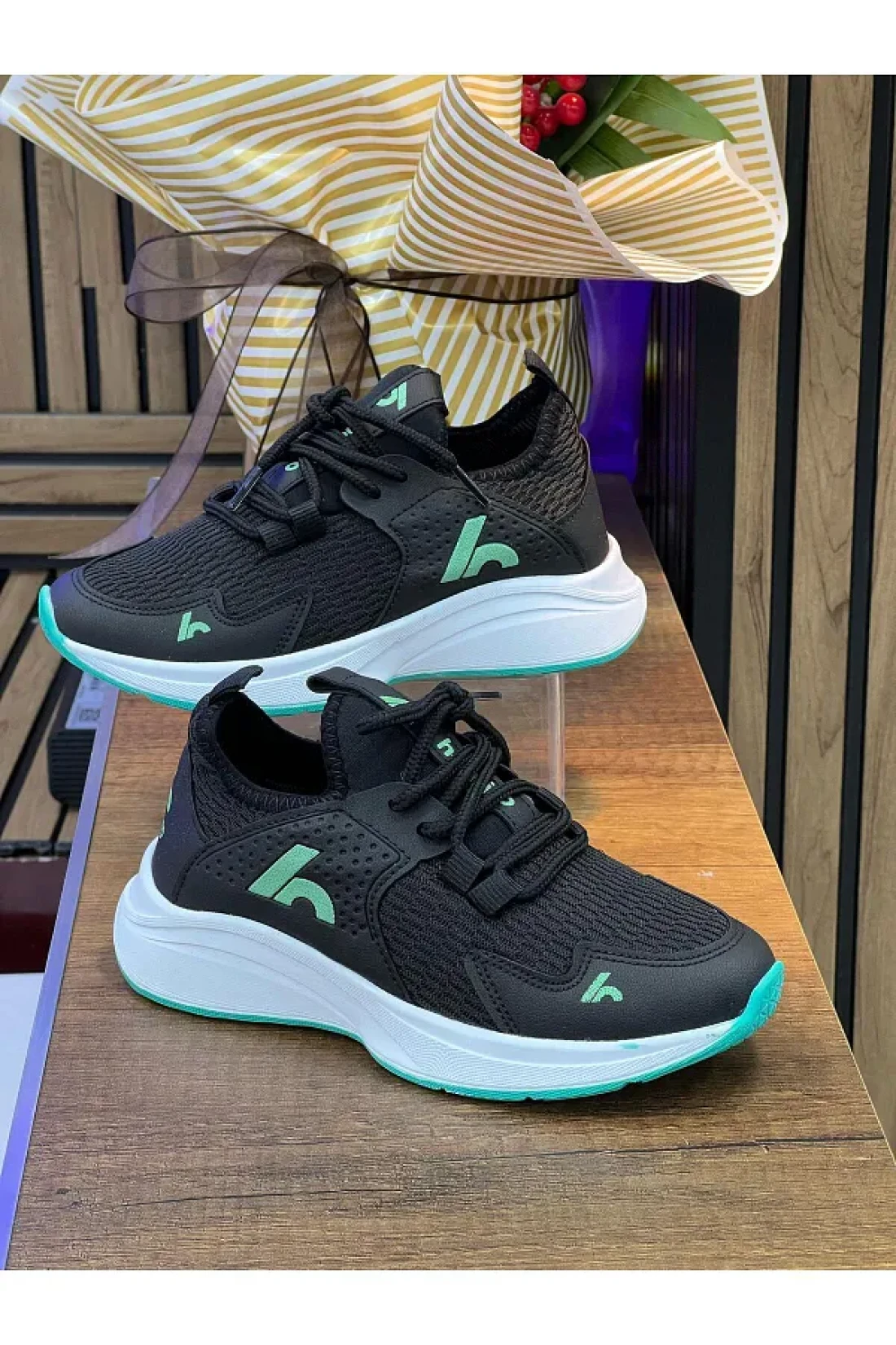 homiro حذاء رياضي للأطفال للجنسين - أسود-أخضر، برباط