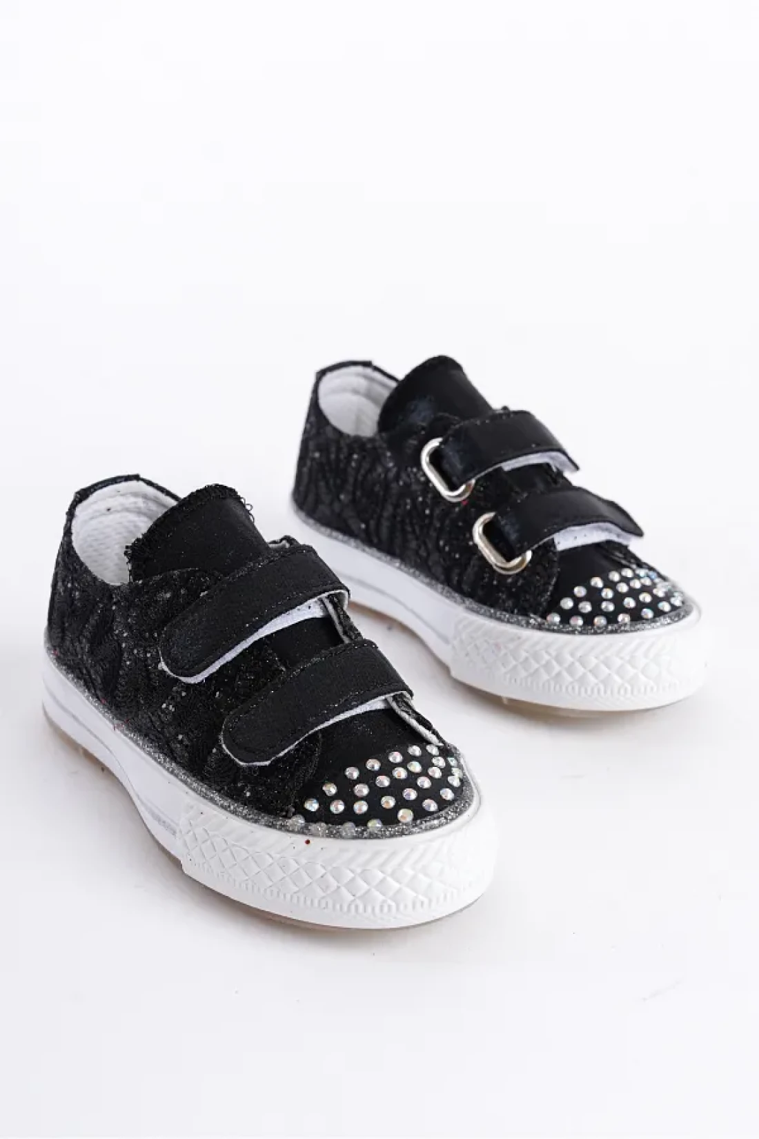 Pabrik حذاء بناتي أسود لتقويم العظام - الموسم الجديد مرصع بالأحجار والفيلكرو، حذاء يومي مضيء 21-30