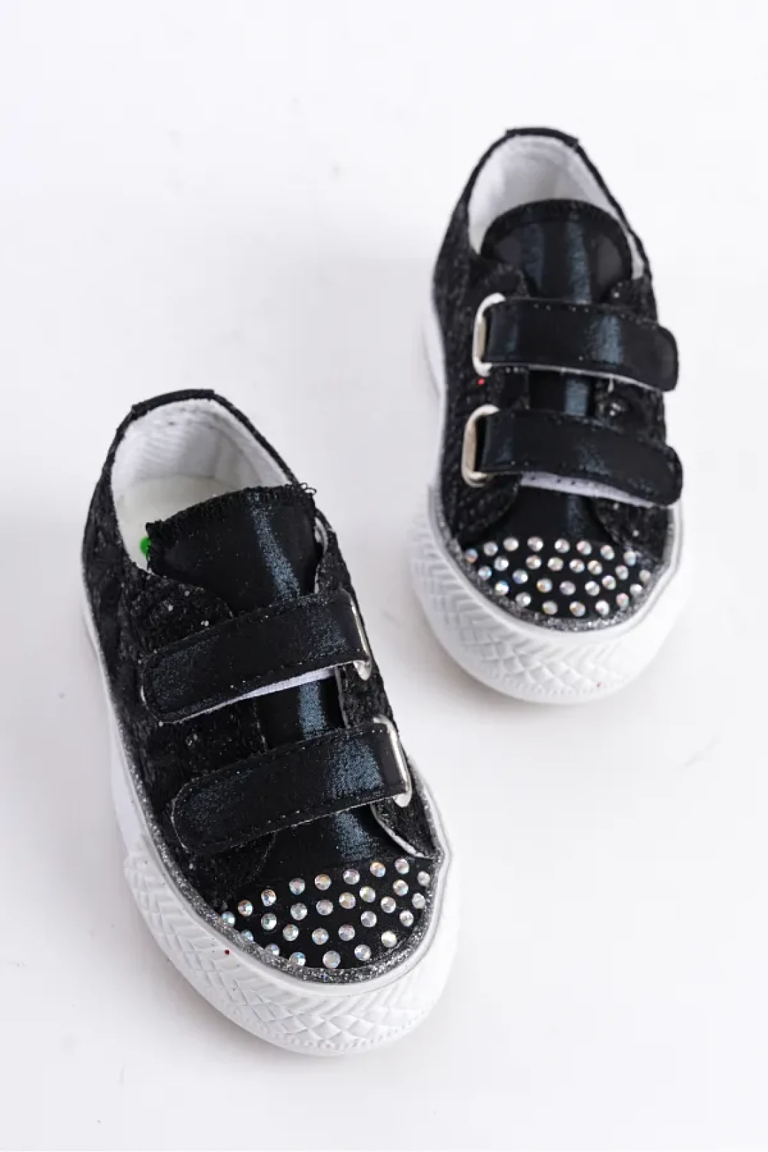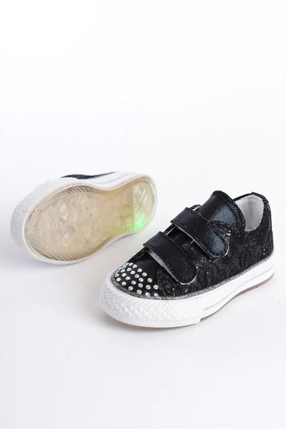 موسم جديد من أحذية الفتاة السوداء المرصعة بالأحجار والفيلكرو، أحذية الطفلة الطبية العظمية. أحذية يومية 21-30 مضيئة