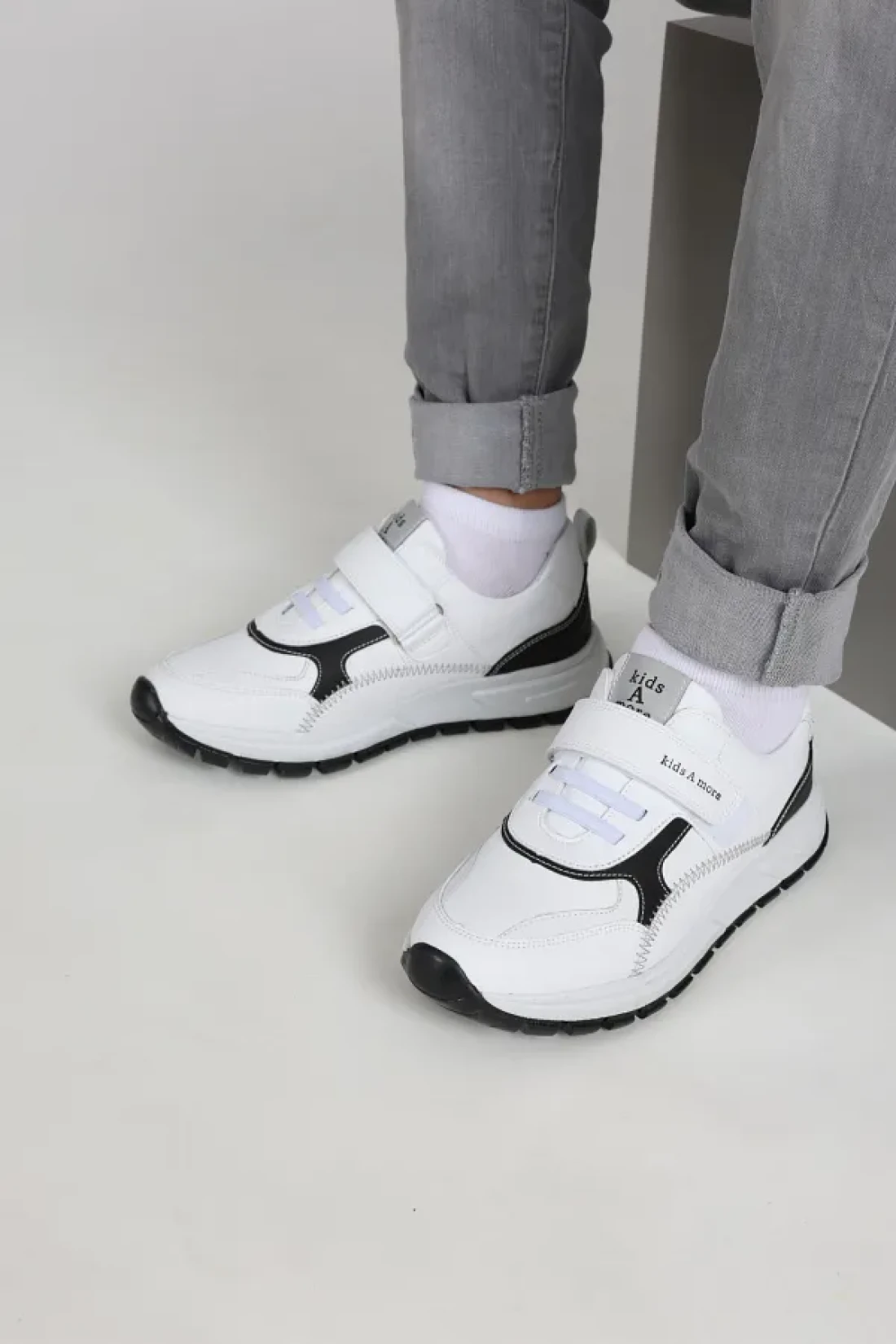 kids A more حذاء فرانكي للأولاد بشريط فيلكرو واحد باللون الأبيض