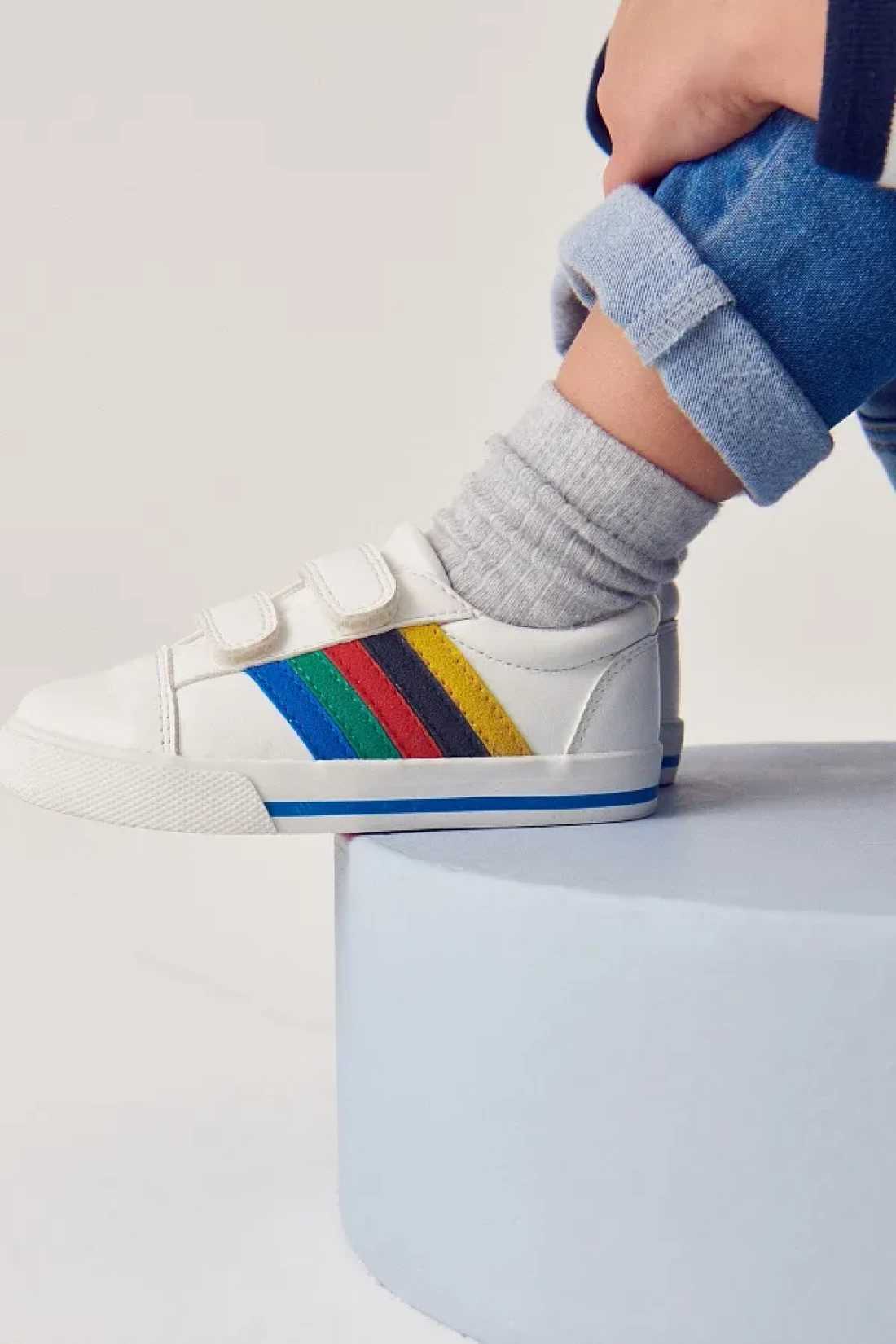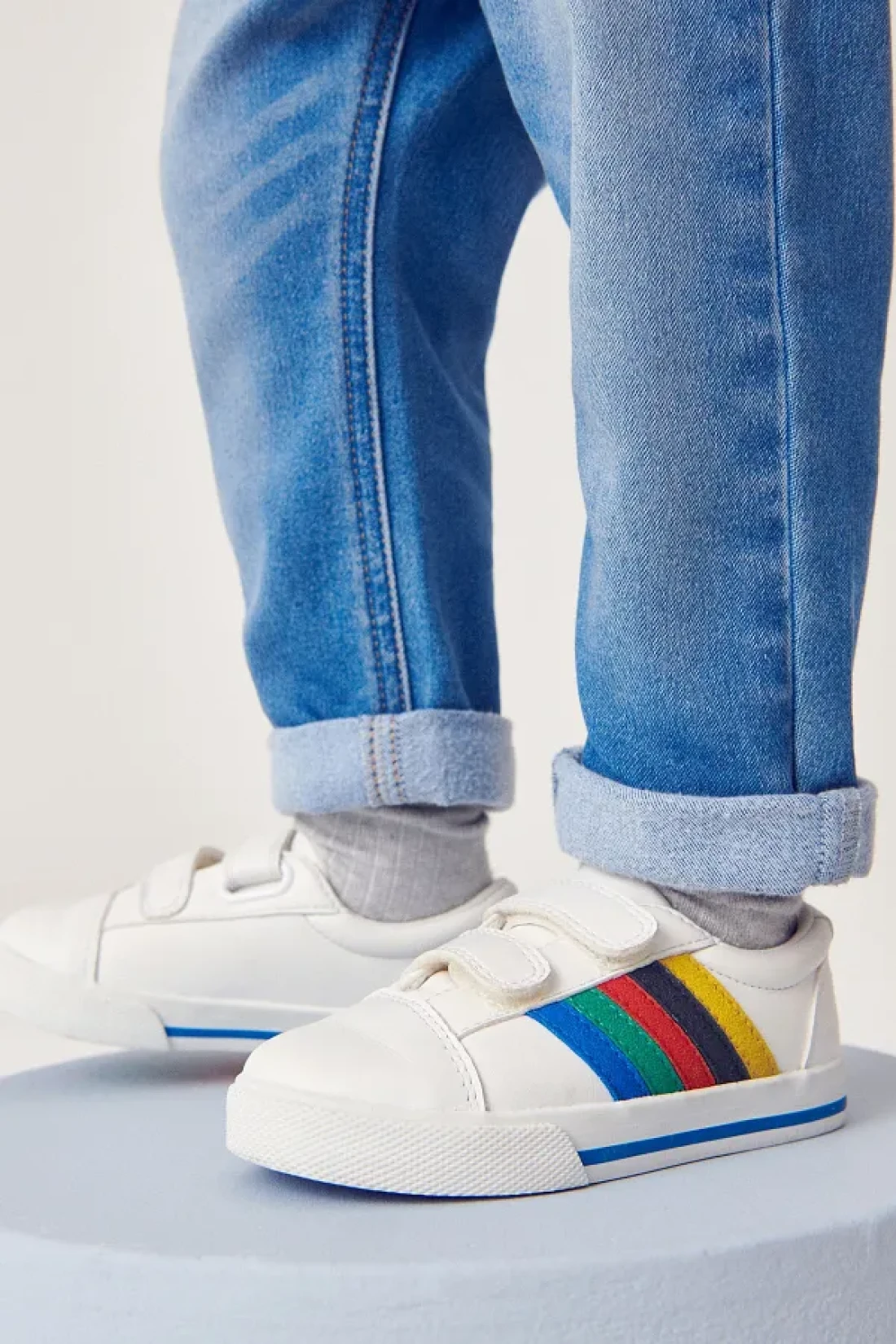 Next Baby حذاء للأولاد باللون الأبيض بألوان قوس قزح وشريط ملمس سريع ونعل لتقويم العظام