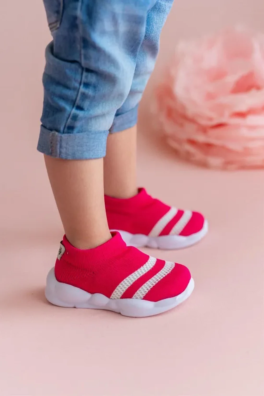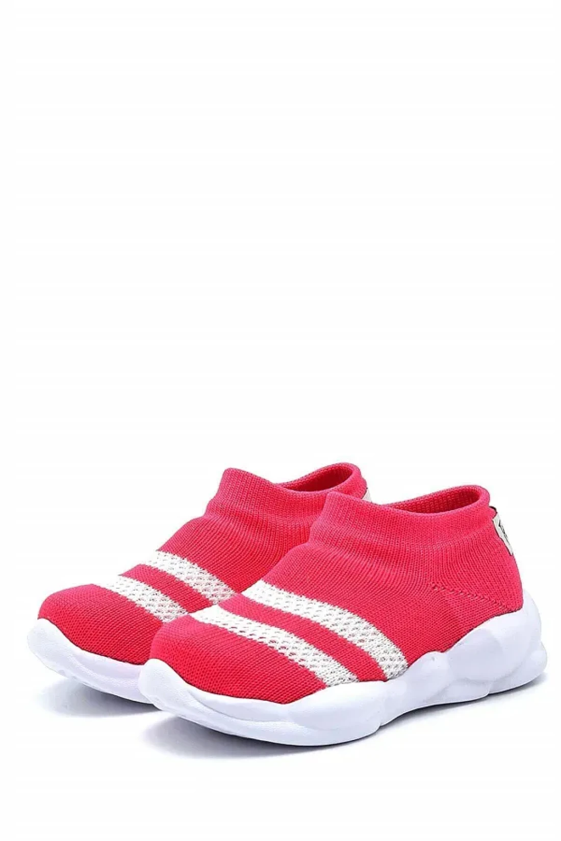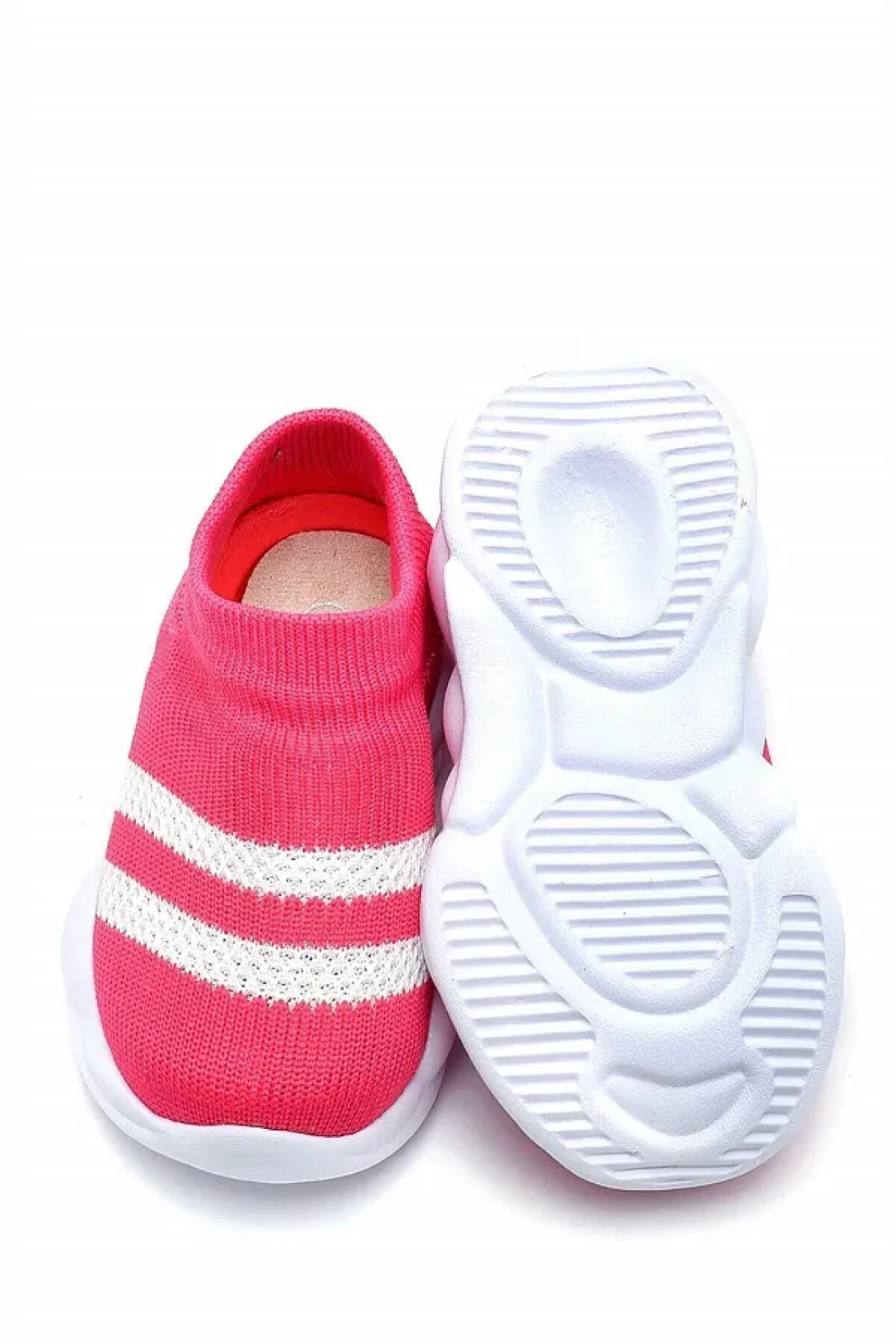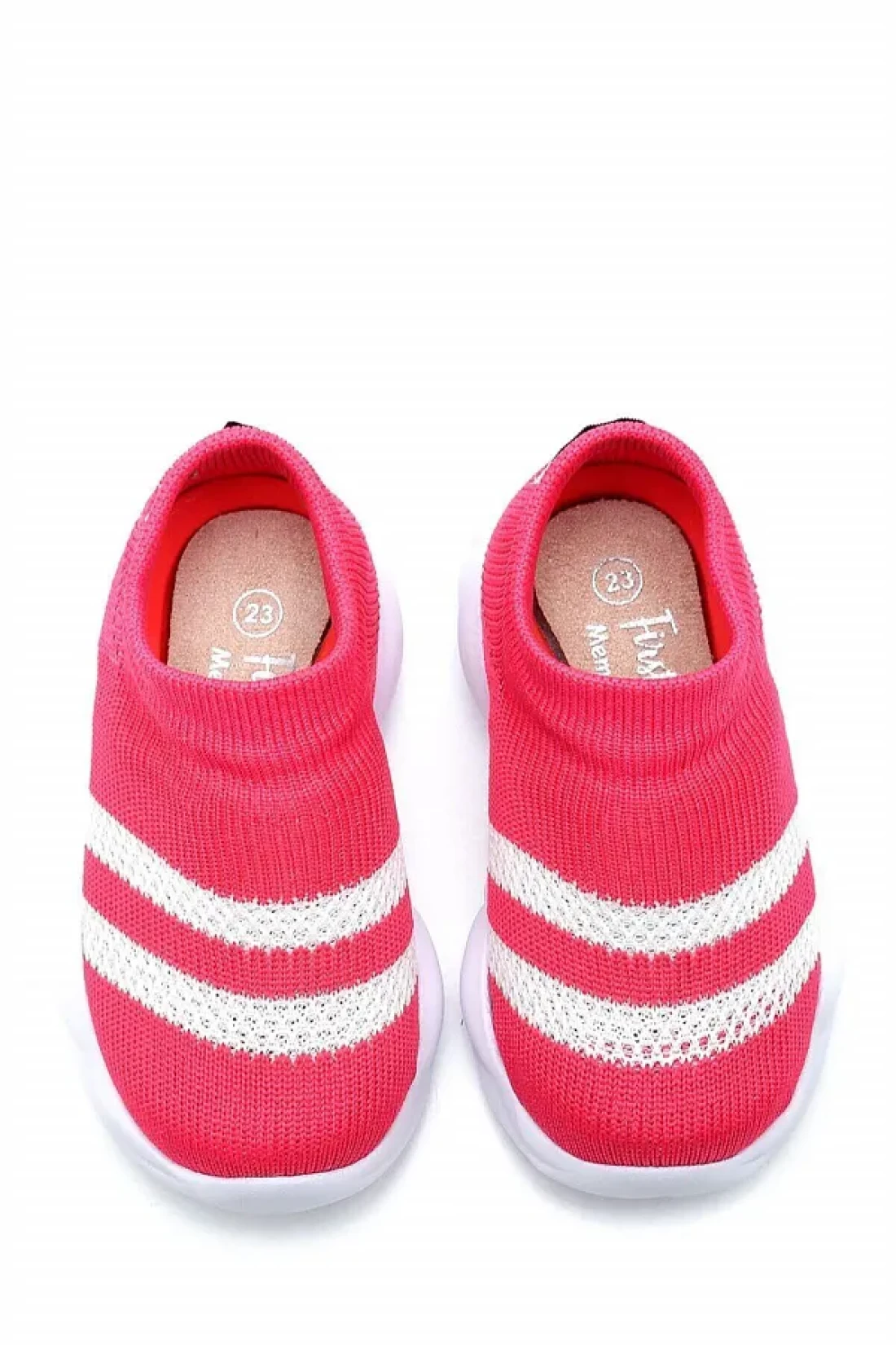 First Step حذاء رياضي خفيف للغاية بنعل ميموري فوم للأطفال تريكو رياضي فوشيا مع خطوط بيضاء -M-1002