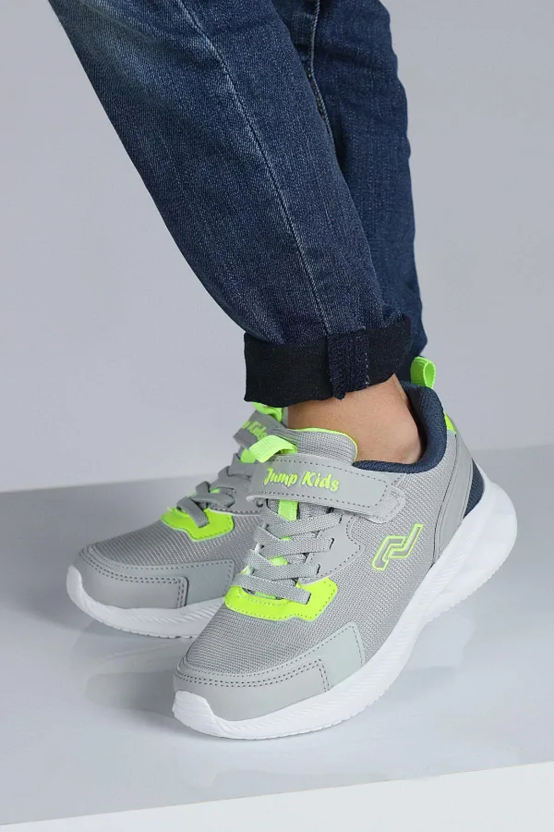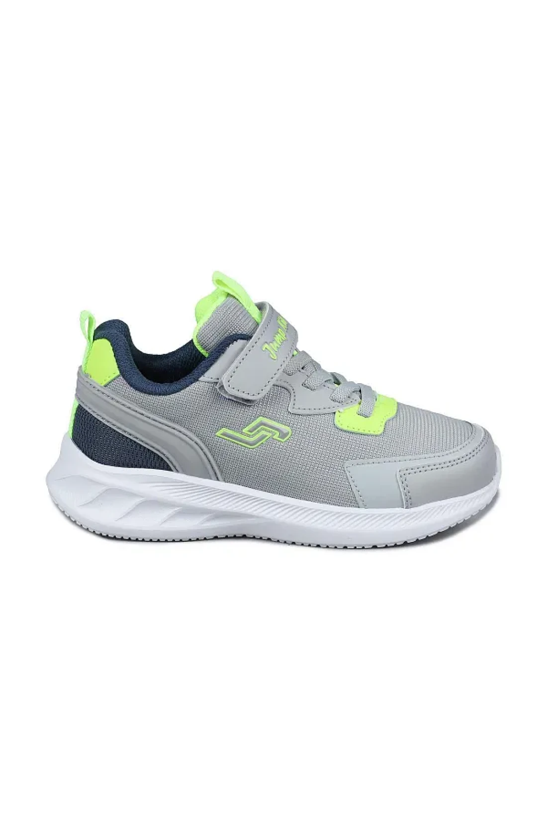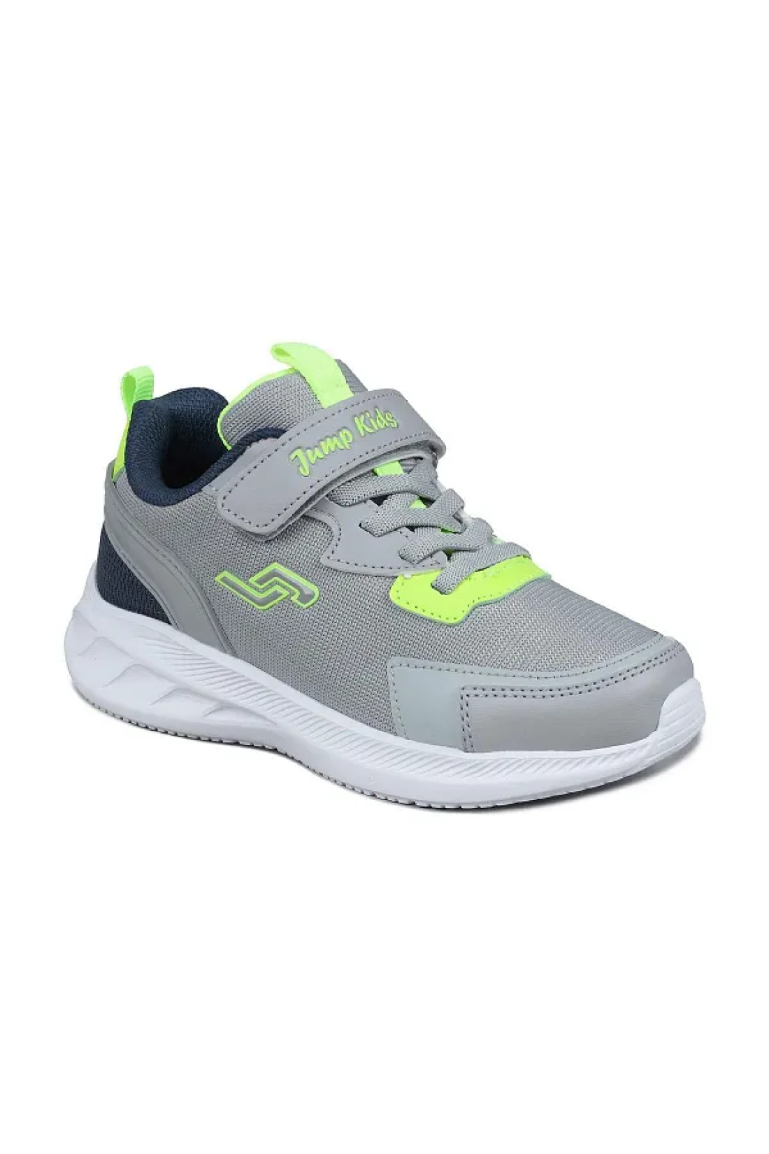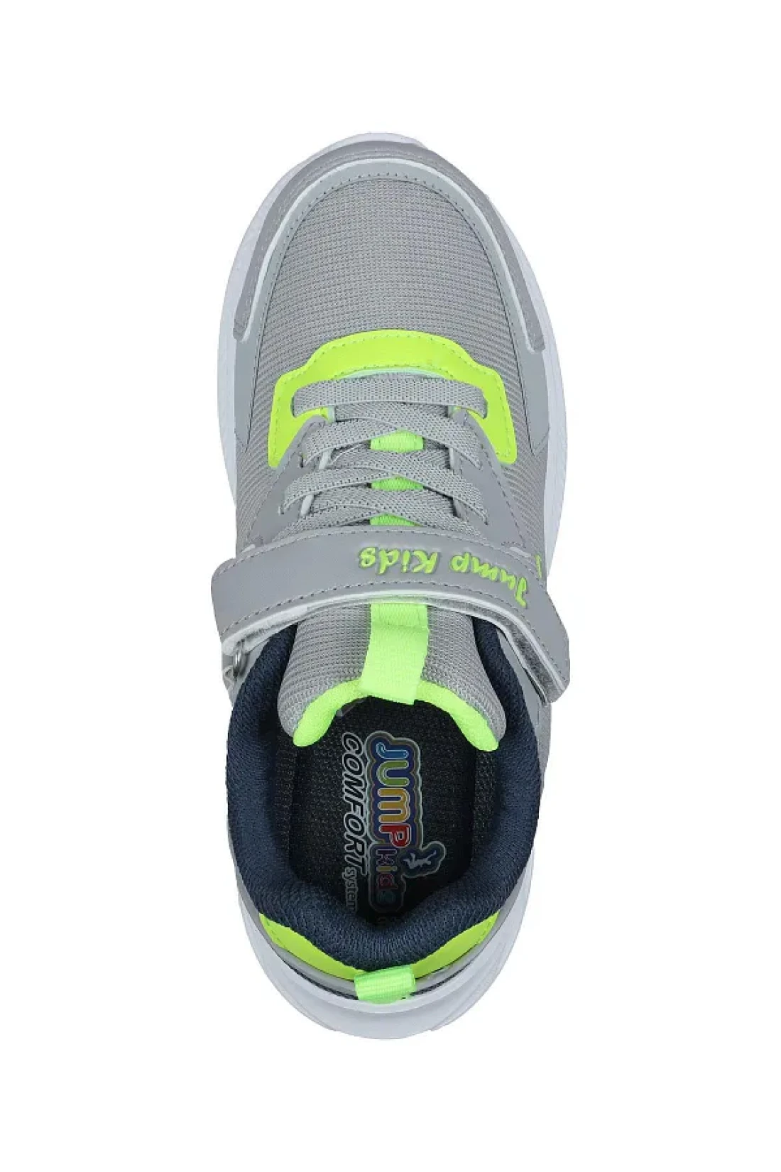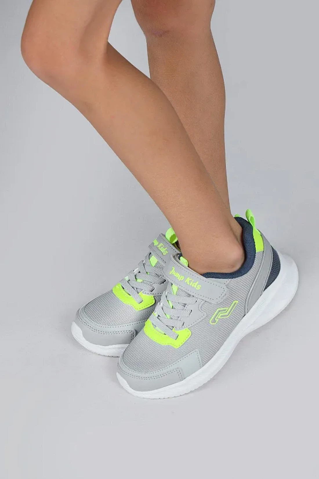 Jump 28106 فيلكرو رمادي فاتح - حذاء رياضي كاجوال للأطفال باللون الأخضر النيون للجنسين