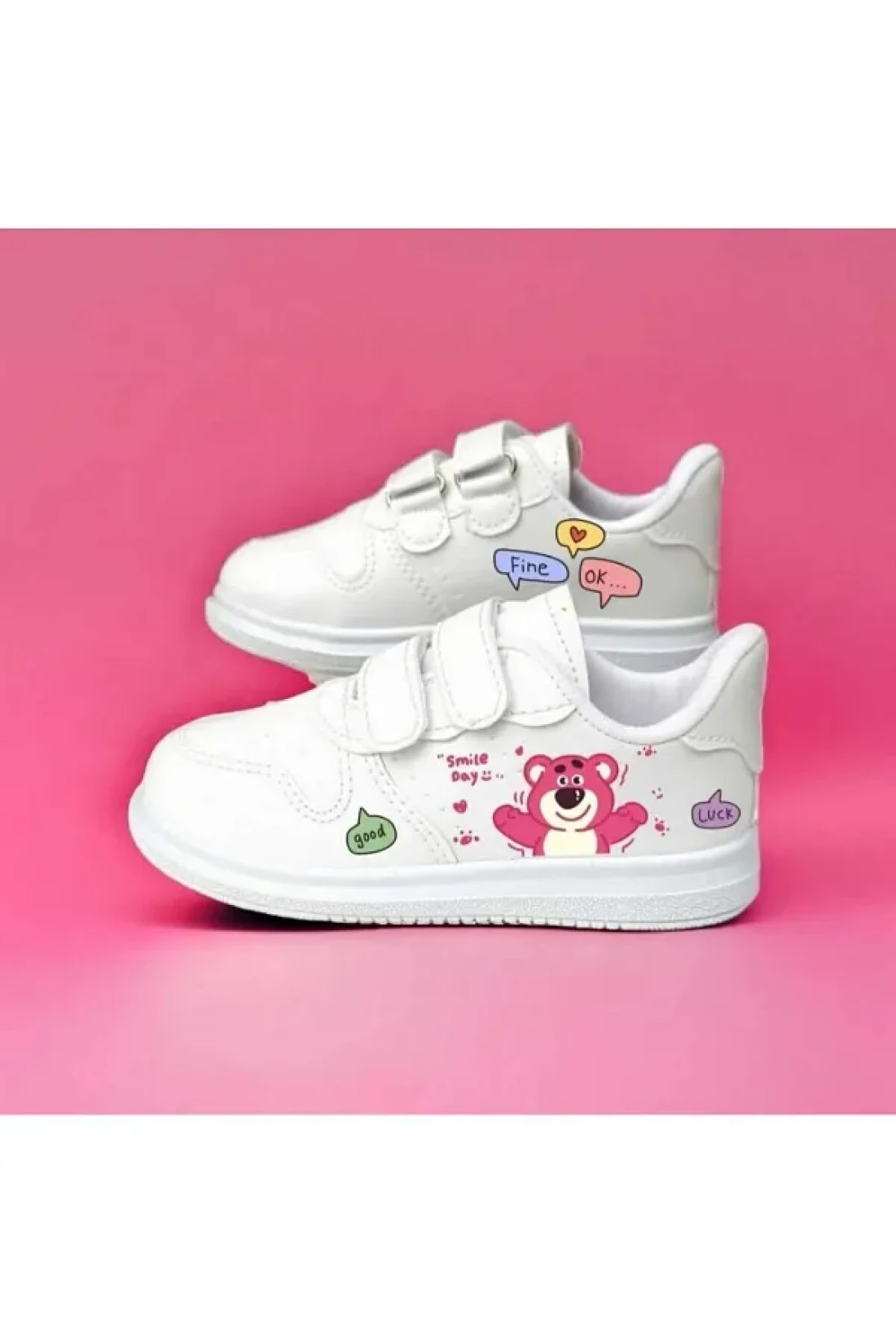 archiepet حذاء رياضي للأطفال مطبوع باللون الوردي - تصميم تيدي بير