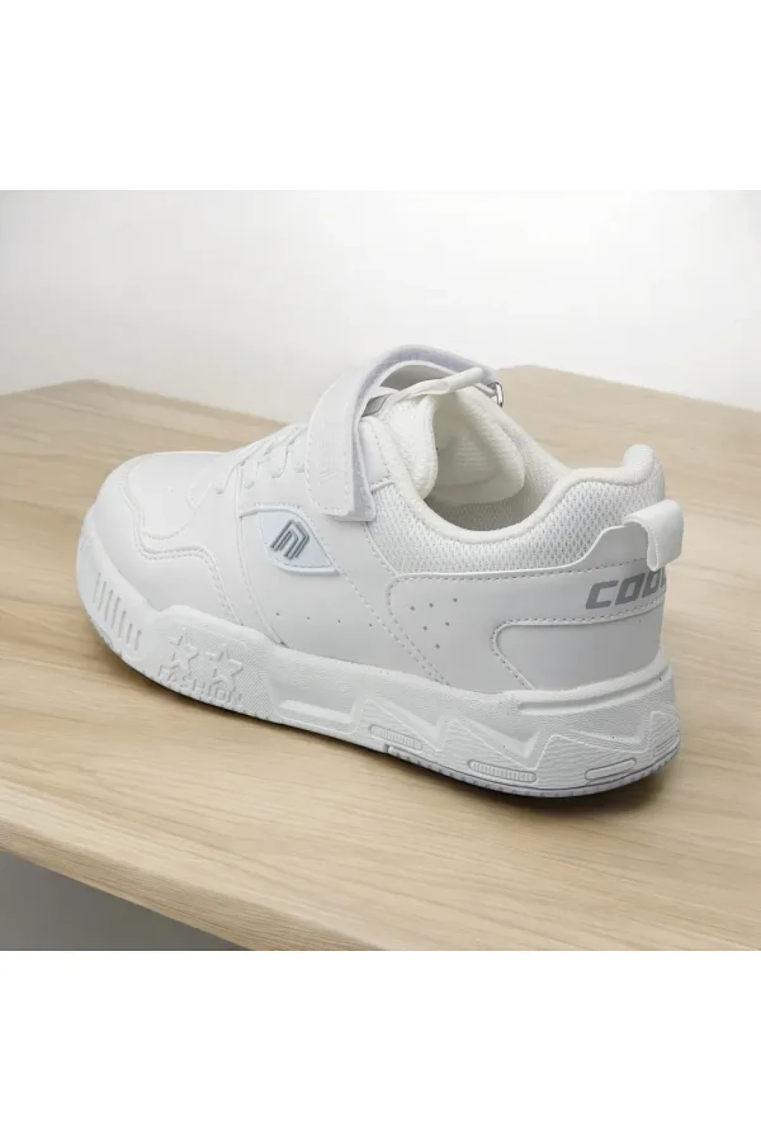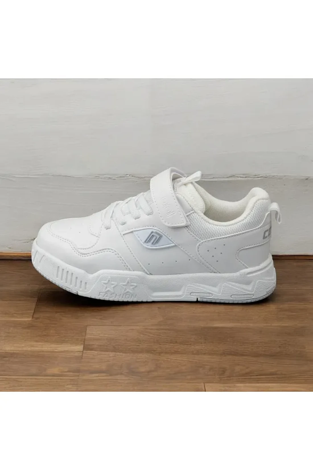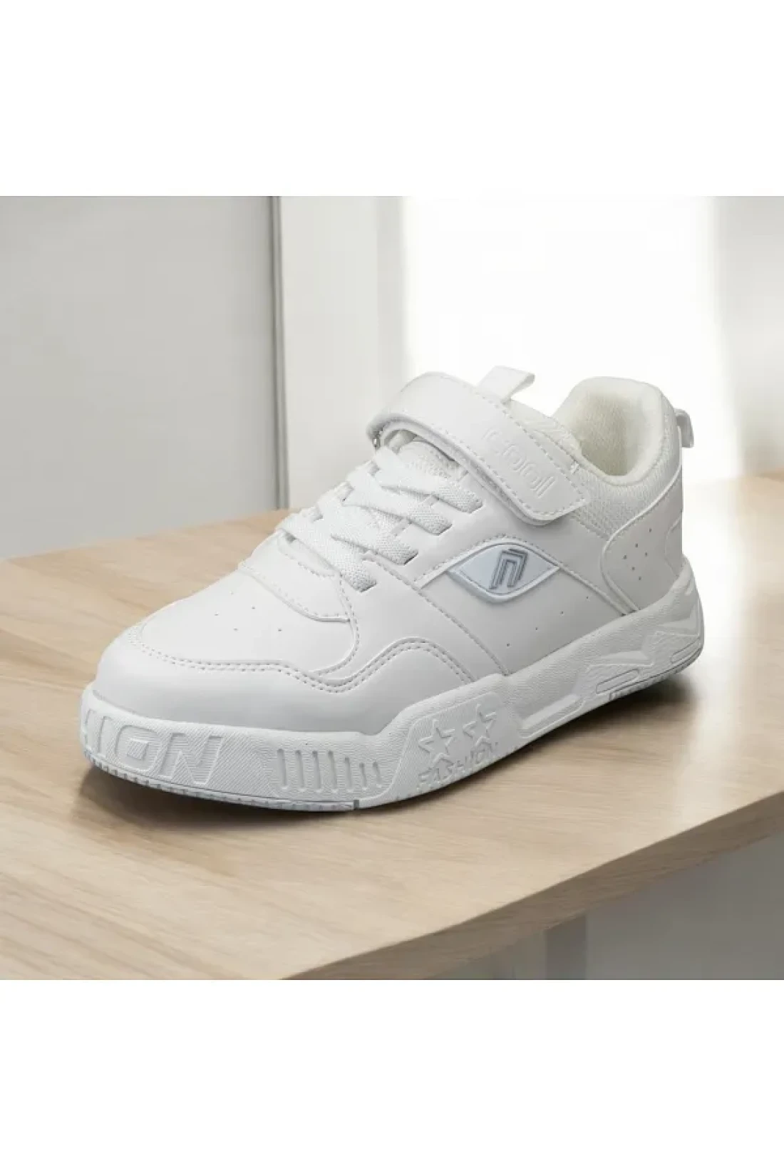 حذاء رياضي فيلكرو من الجلد الأبيض المسطح للأطفال من الجنسين، حذاء رياضي خفيف للغاية