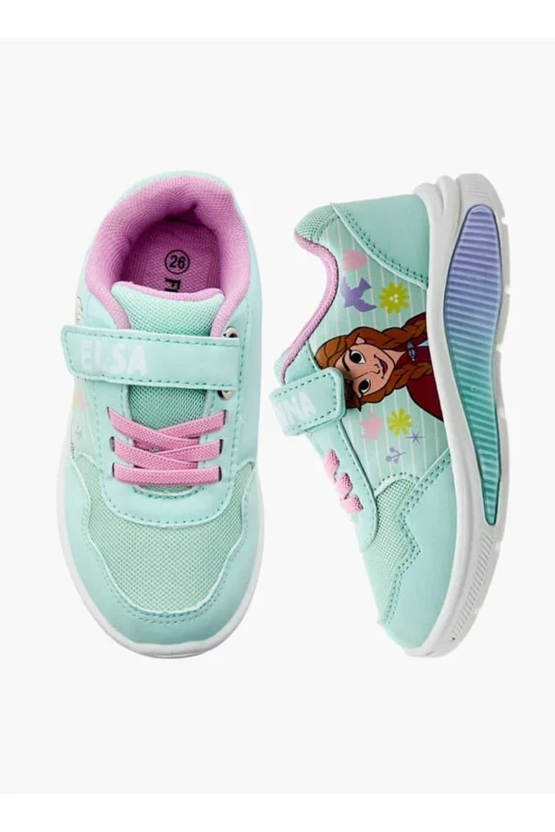 DİSNEY حذاء رياضي مضيء بطبعة إلسا من ديزني مع قفل بخطاف وحلقة