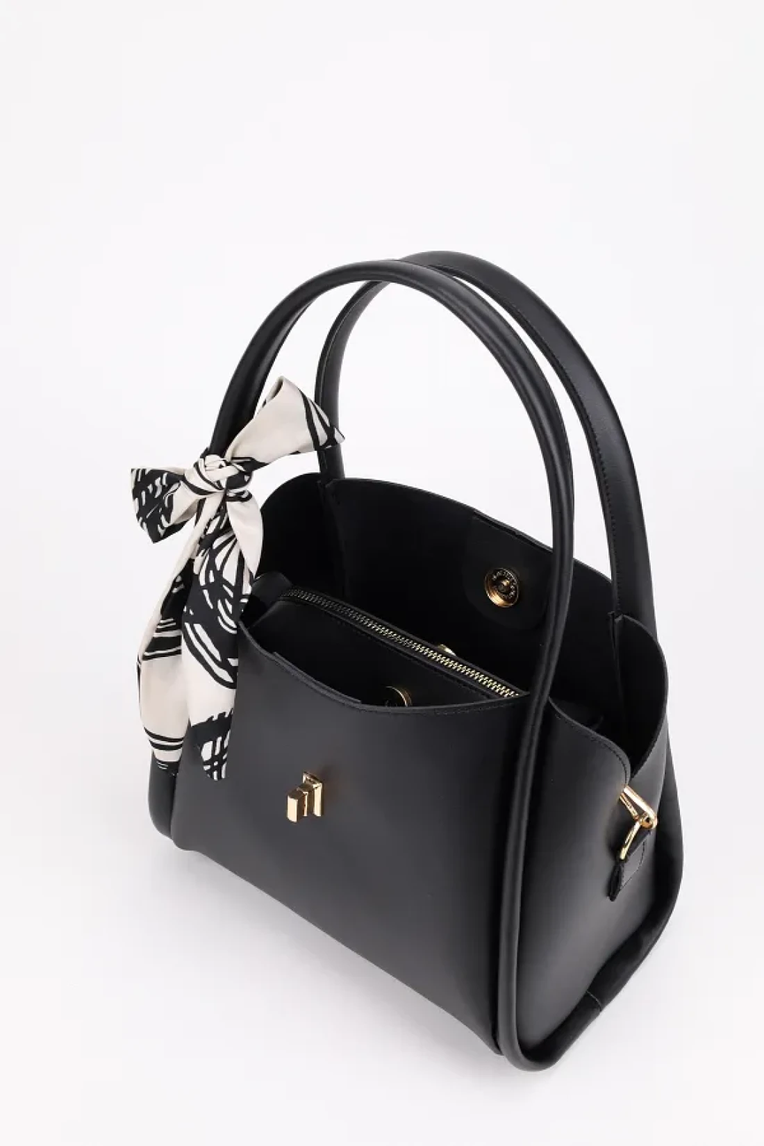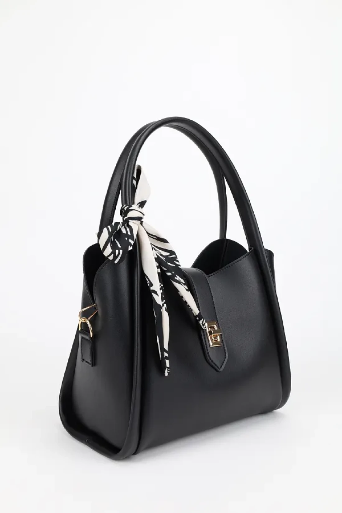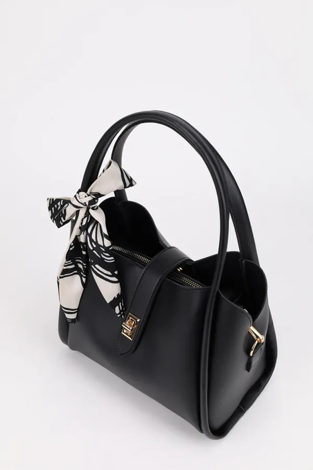 NOTHING حقيبة يد وكتف نسائية باللون الأسود - مفصلة بثلاثة أقسام وطبقة مكياج