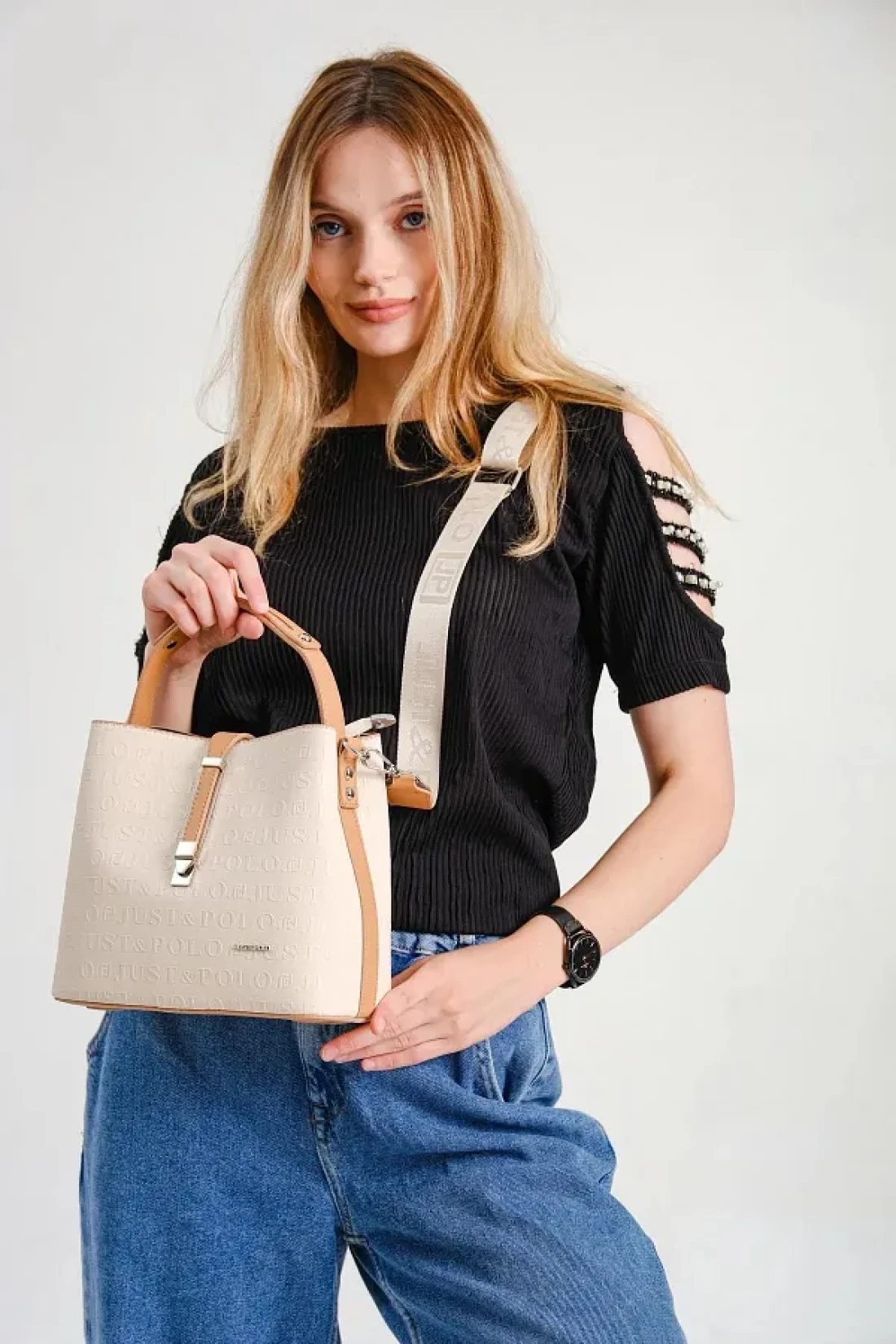 Just Polo حقيبة يد وكتف نسائية مطبوعة منقوشة