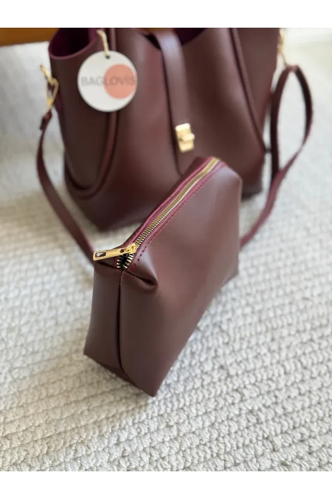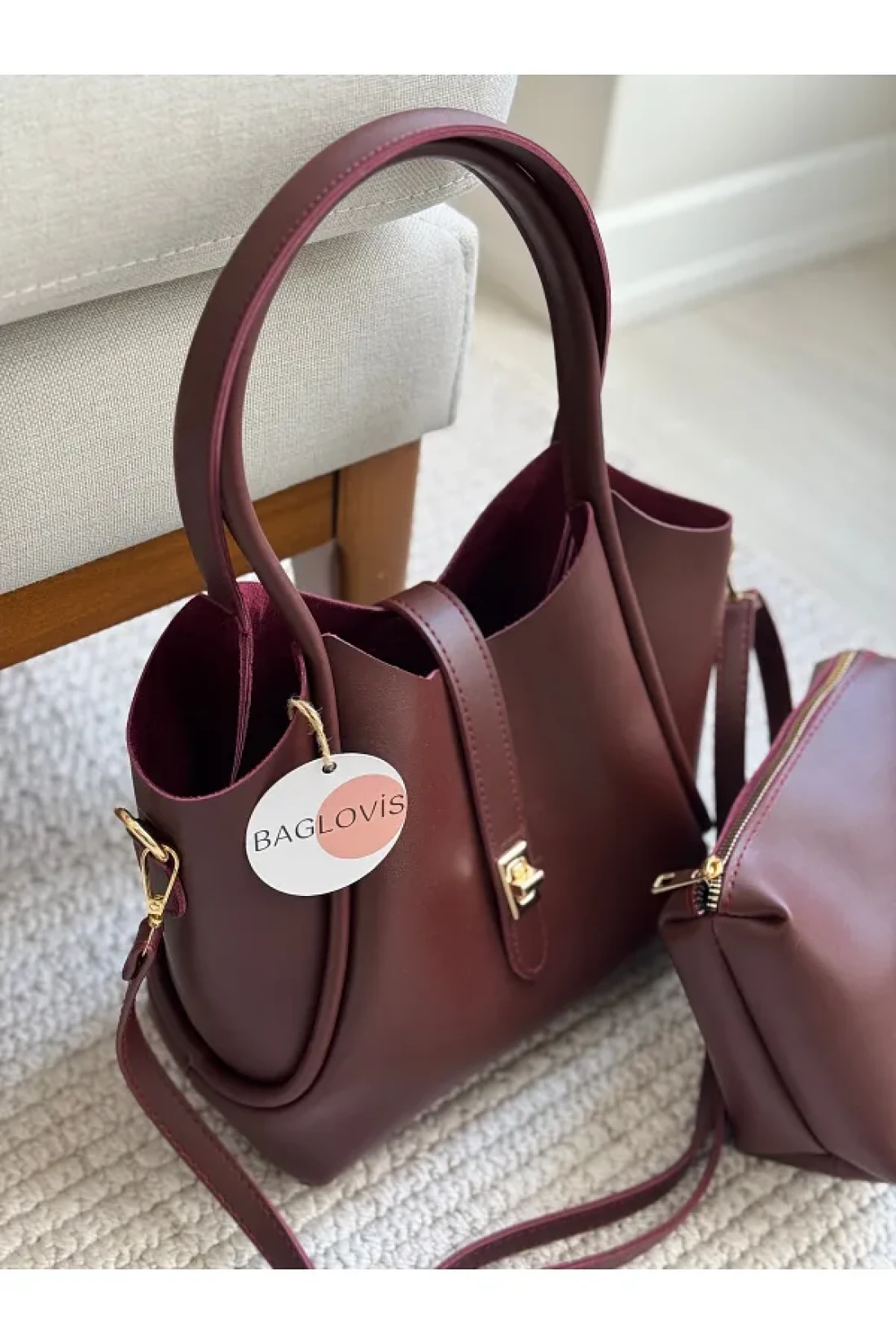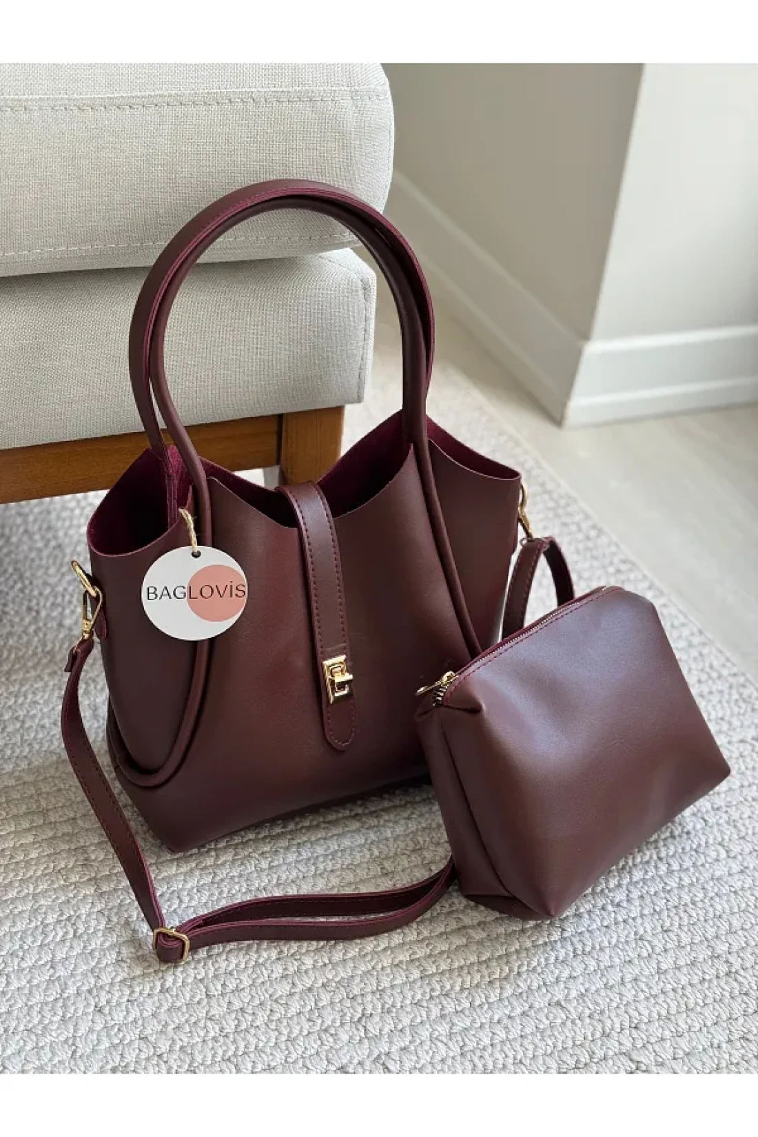 BAGLOVİS حقيبة كتف نسائية باللون الأحمر الداكن مع قفل أمامي إضافي وتفاصيل