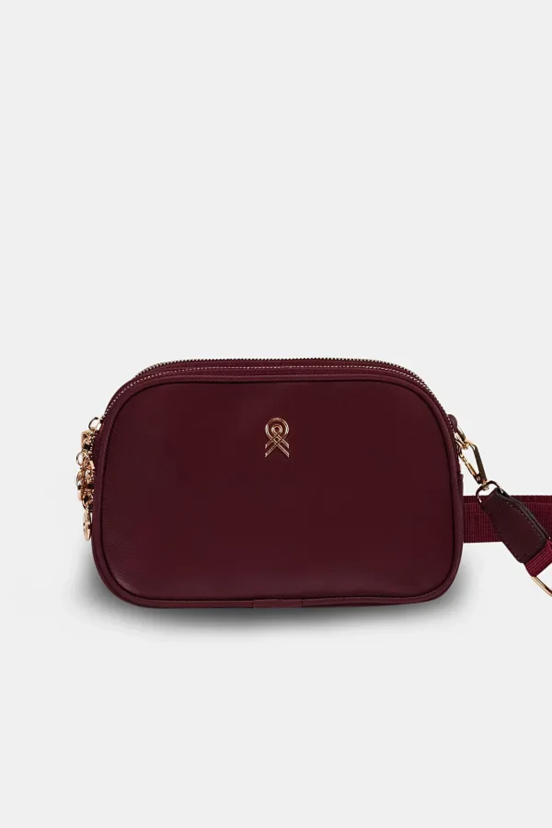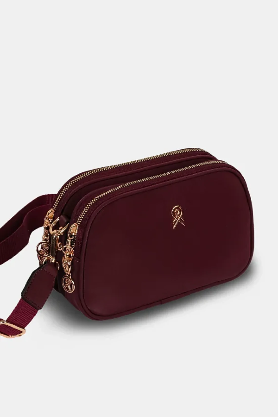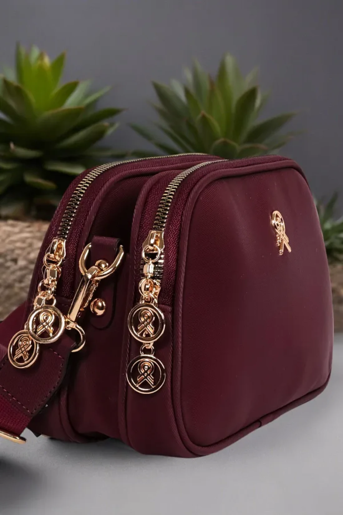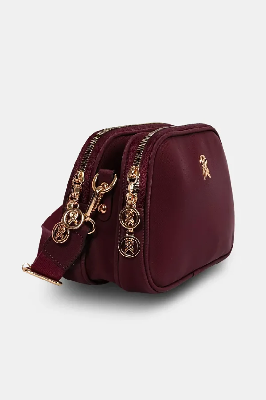 Les Crioch حقيبة كتف نسائية يومية من الجلد الساتان ذات 3 أقسام باللون العنابي مع حزام عمودي قابل للتعديل