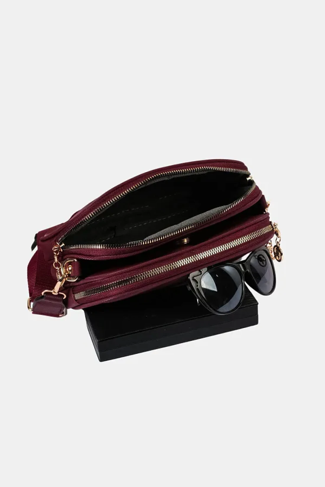 الجزء الداخلي من الحقيبة مبطن. تحتوي على مساحة كافية لاستيعاب ضرورياتك مثل الهاتف والبطاقات والمحفظة والنظارات الشمسية ومستحضرات التجميل.