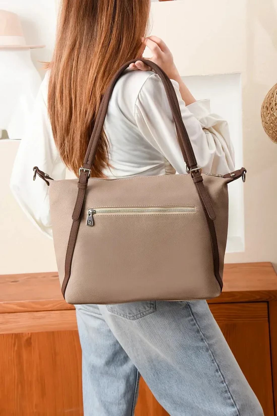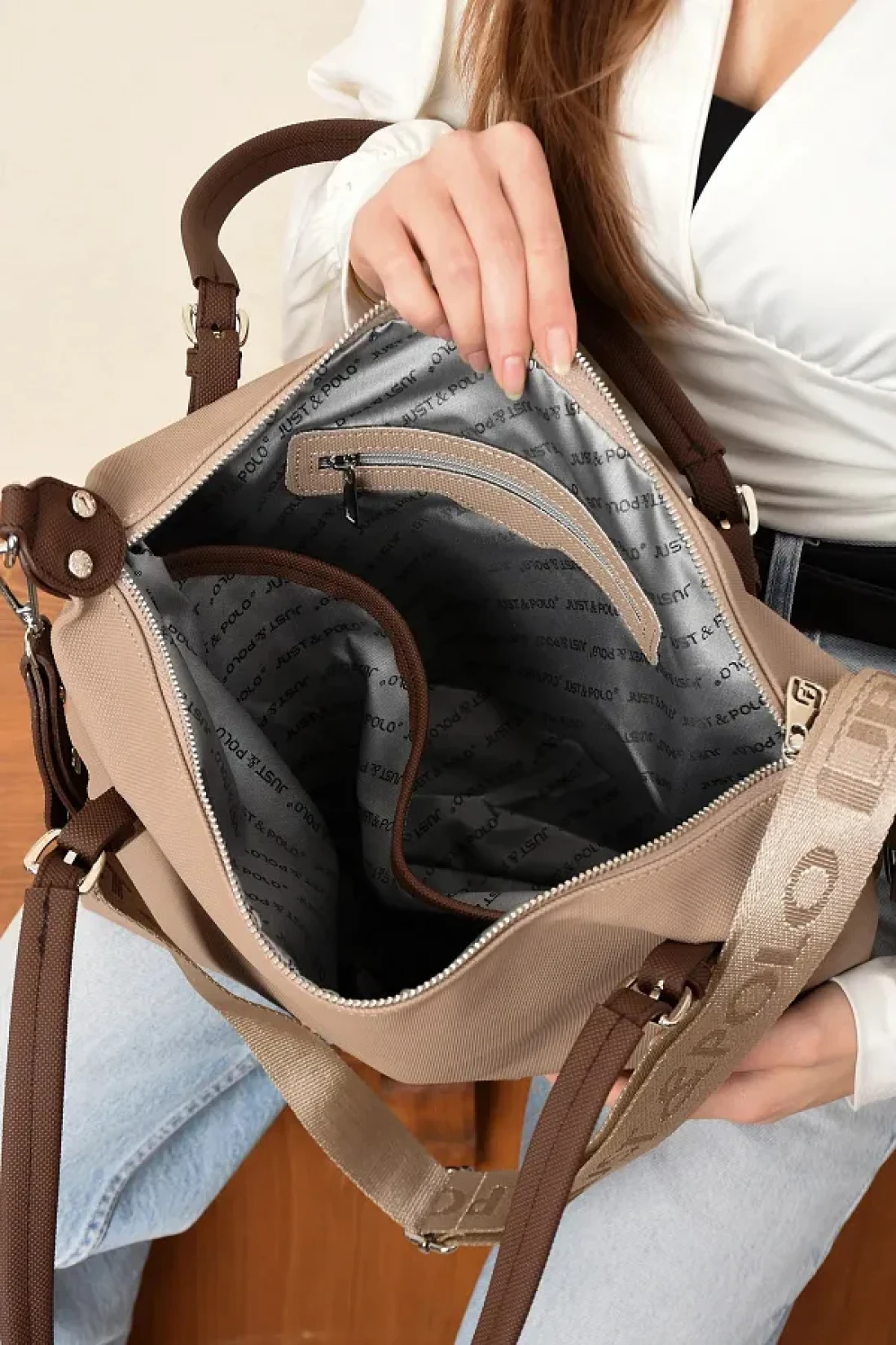 Just Polo حقيبة يد وكتف نسائية من قماش لاكوست كبيرة الحجم باللون البني الرملي P346037MH