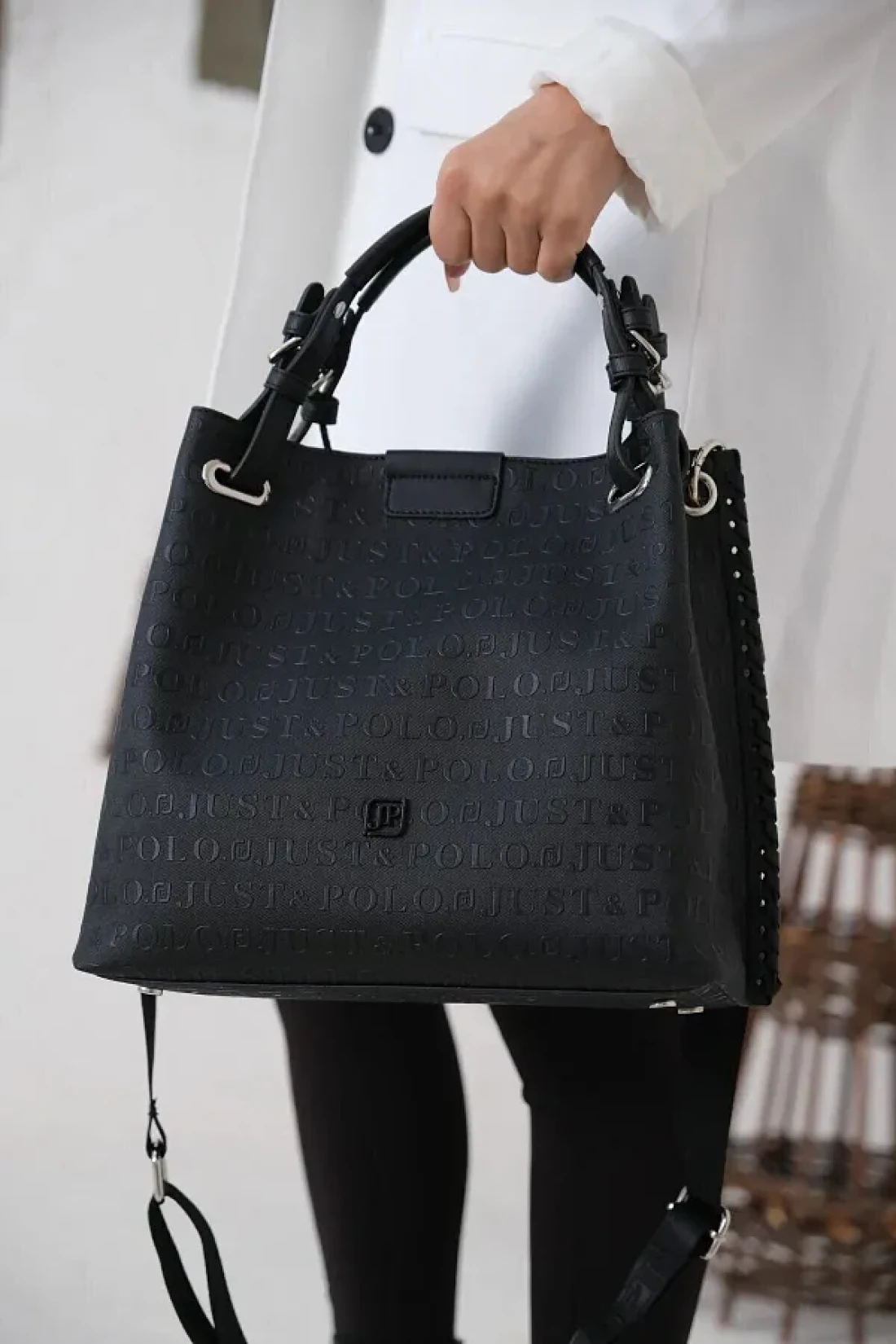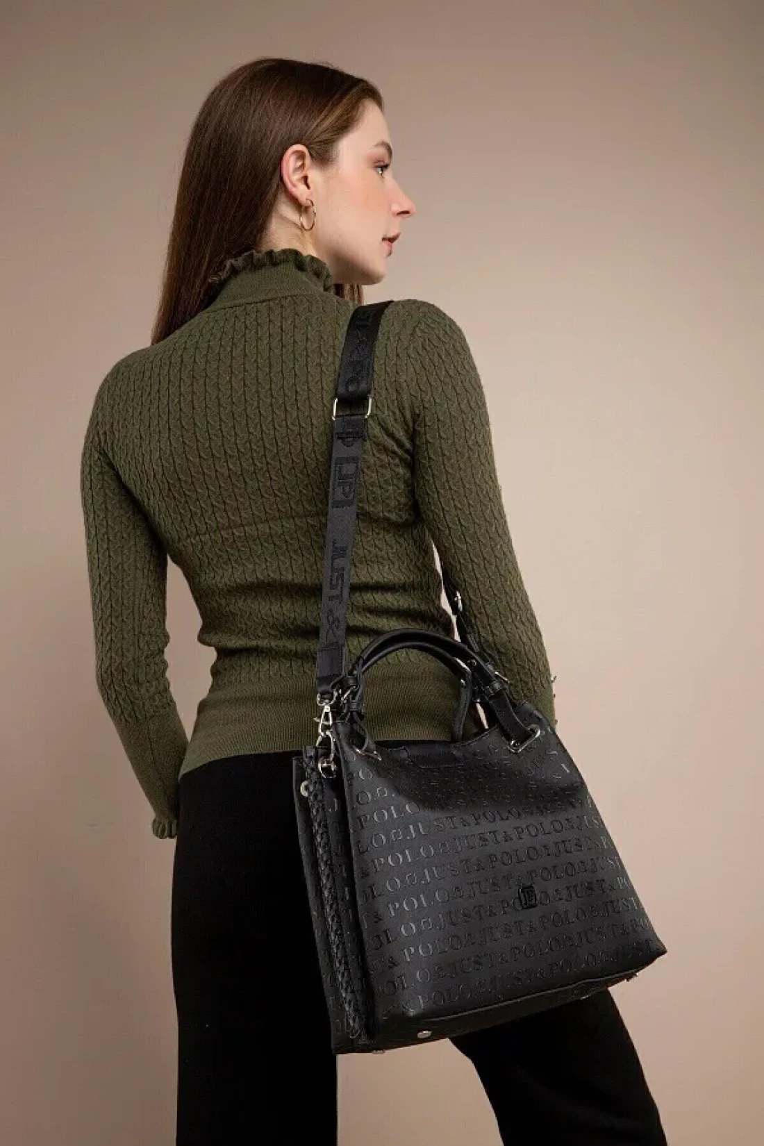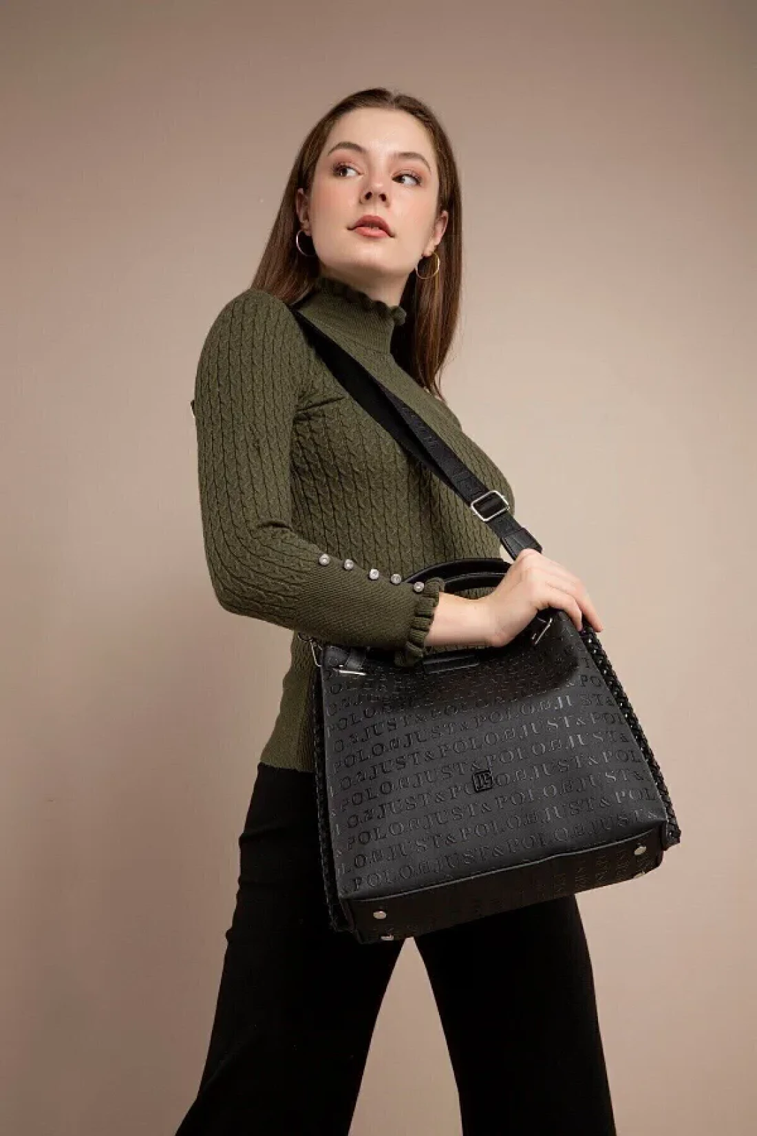 Just Polo حقيبة كتف نسائية يومية كبيرة الحجم - 4 أقسام، جيب خلفي، محبوكة يدويًا، محفظة هدية 33x26 سم 2180