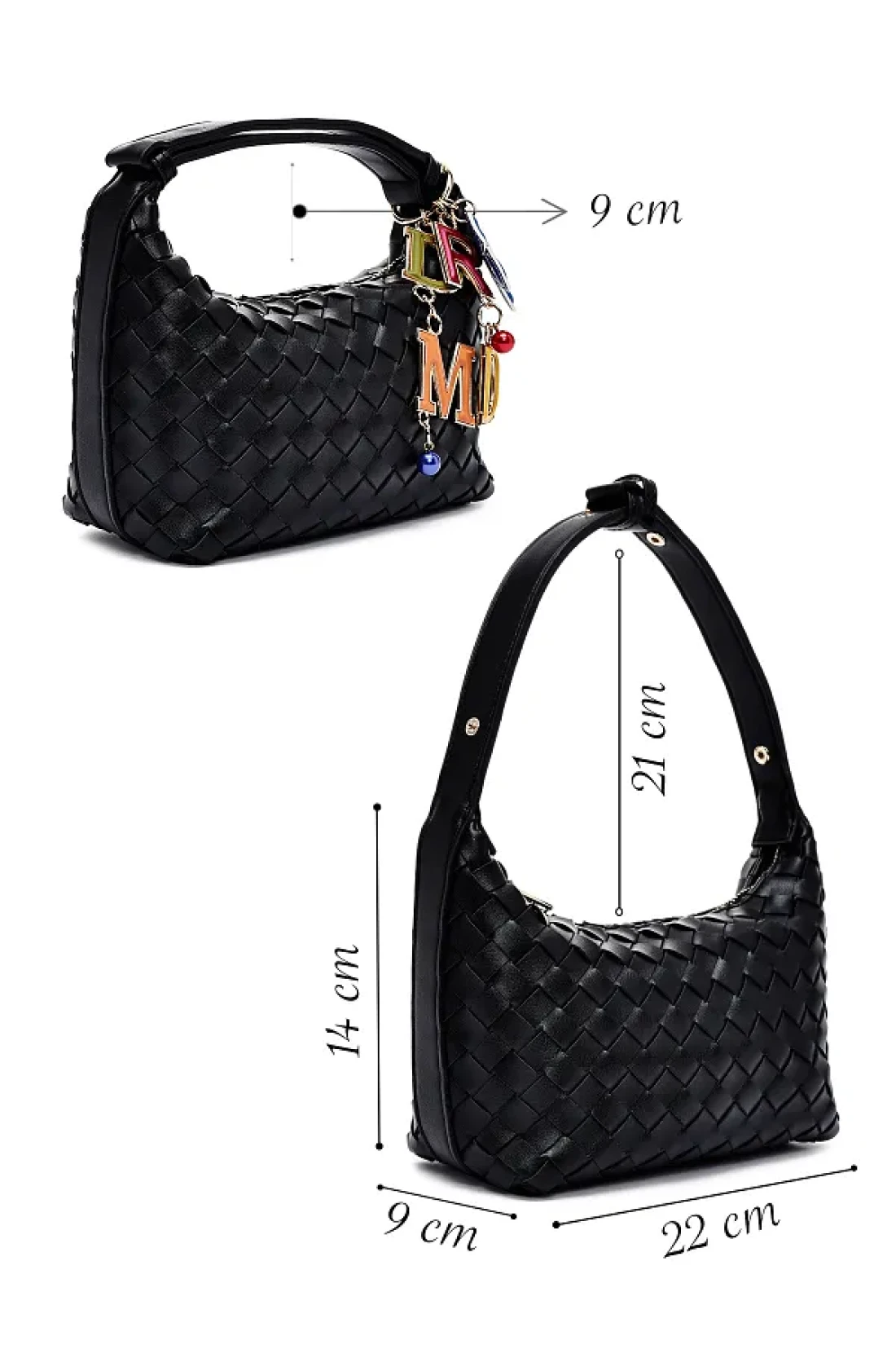 حقيبة يد صغيرة محبوكة للمرأة مع اكسسوارات سوداء