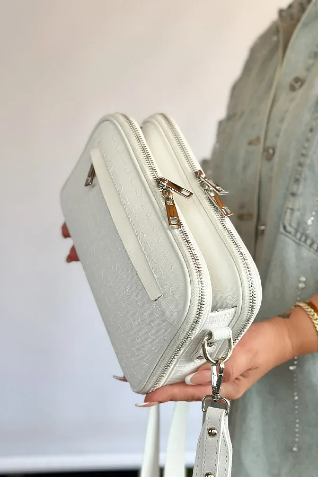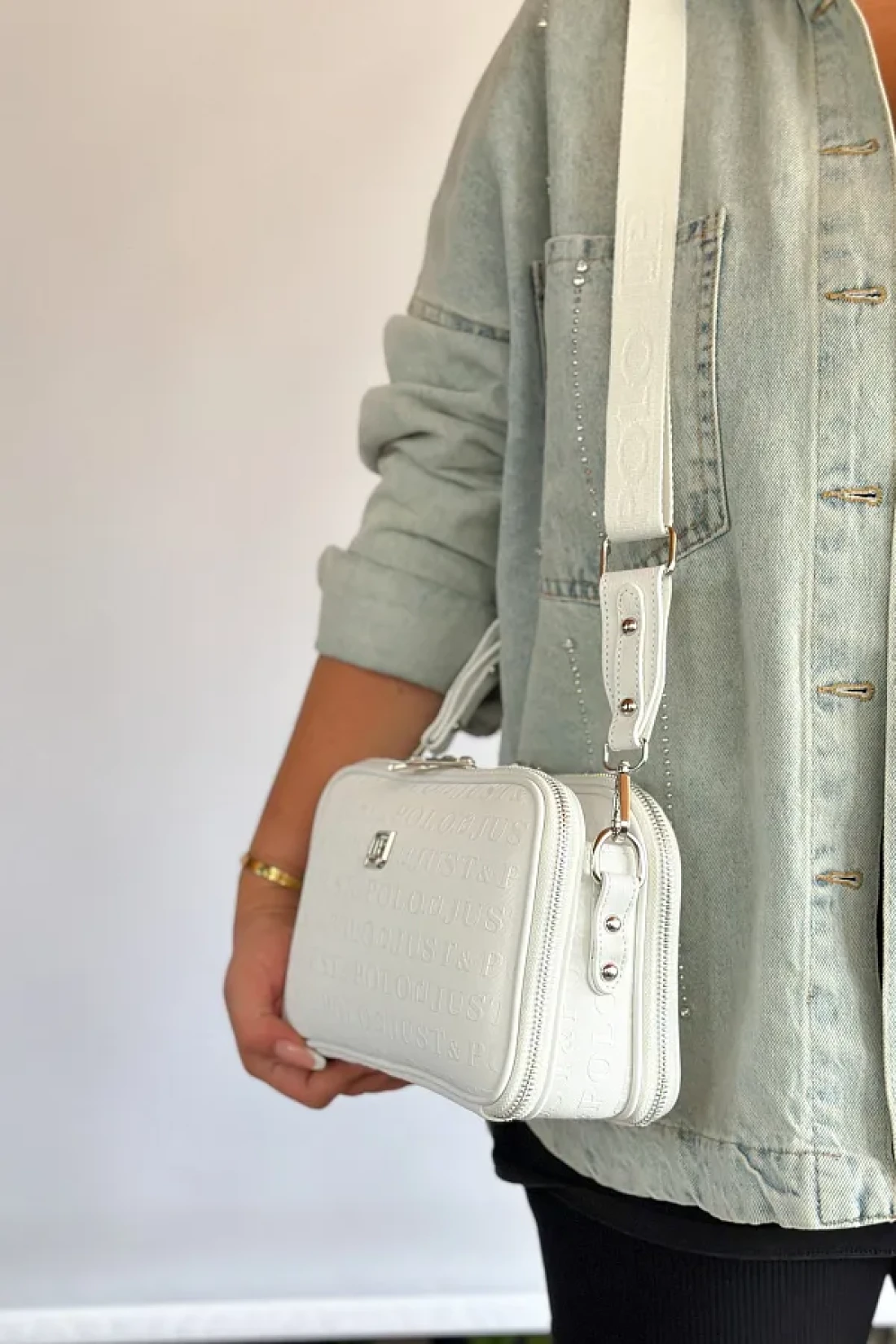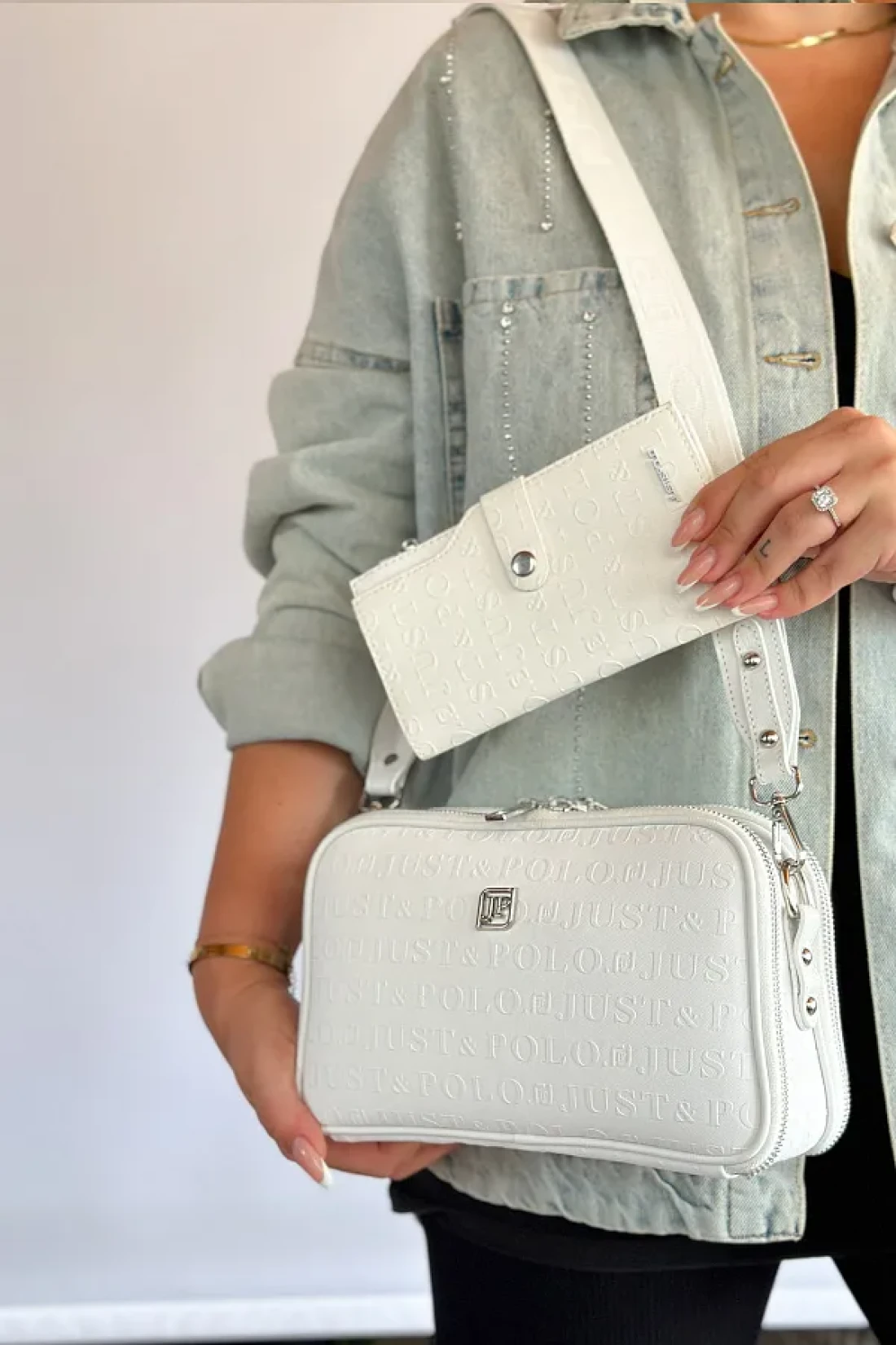 Just Polo حقيبة كتف منسوجة من القطن مكونة من 5 أقسام - مجموعة بيضاء سادة 4023