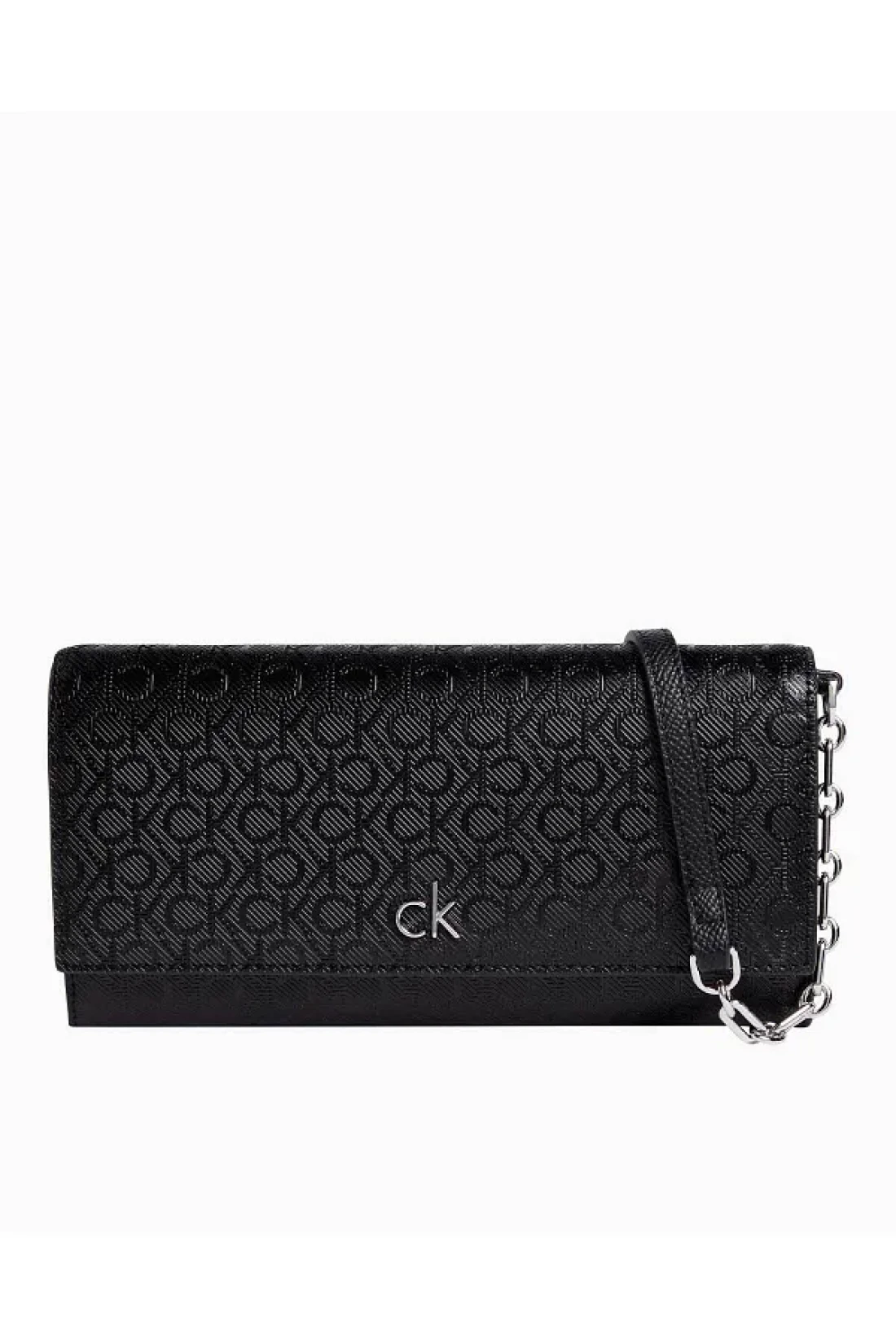 Calvin Klein حقيبة كتف جلدية سوداء مع شعار CK Monogram - حزام قابل للتعديل K60K 612853 -0GJ