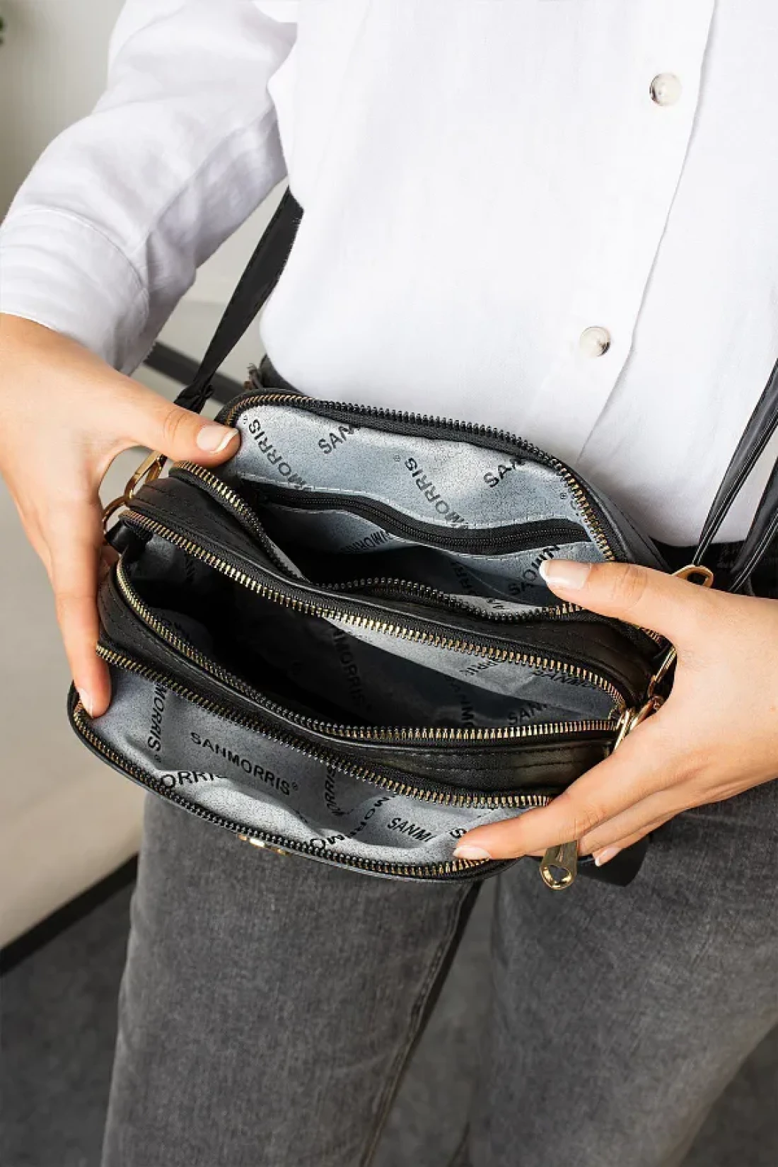 لدينا نموذج حقيبة كروس ذات 4 أقسام من العلامة التجارية Sanmorris في المخزون. الارتفاع: 19 سم؛ العرض: 23 سم؛ عرض النعل: 7 سم؛ تم إنتاجه في تركيا باستخدام جلد صناعي عالي الجودة، وبطانة وإكسسوارات. يمكن تعديل حزامها المتقاطع وفقًا للطلاء الذي ترغب فيه. إنه نموذج سيكون المنقذ لتركيباتك اليومية. ستكمل الإكسسوارات الذهبية بسهولة مجموعاتك الأنيقة. بفضل البطانة الكاملة والمقصورات المزودة بسحابات معدنية، ستتمكن من حمل أغراضك اليومية براحة ودون المساس بأناقتك. قم بالتنظيف باستخدام قطعة قماش رطبة. بفضل حزامها المتقاطع، يمكن استخدامها على الكتف وعبر الجسم.