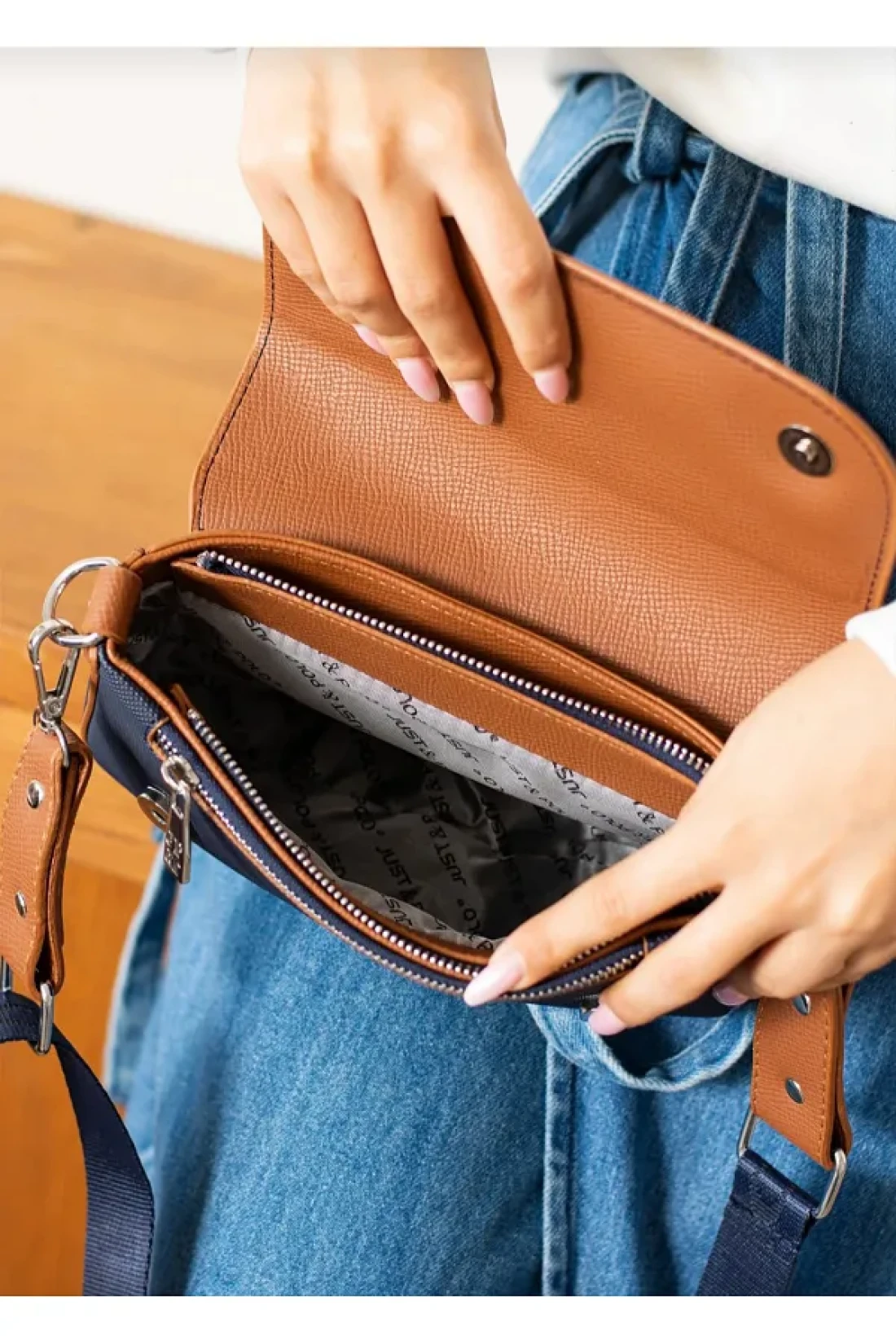Just Polo حقيبة كتف BAGUETTE موديل 6005 للنساء - مع غطاء من القماش المزخرف