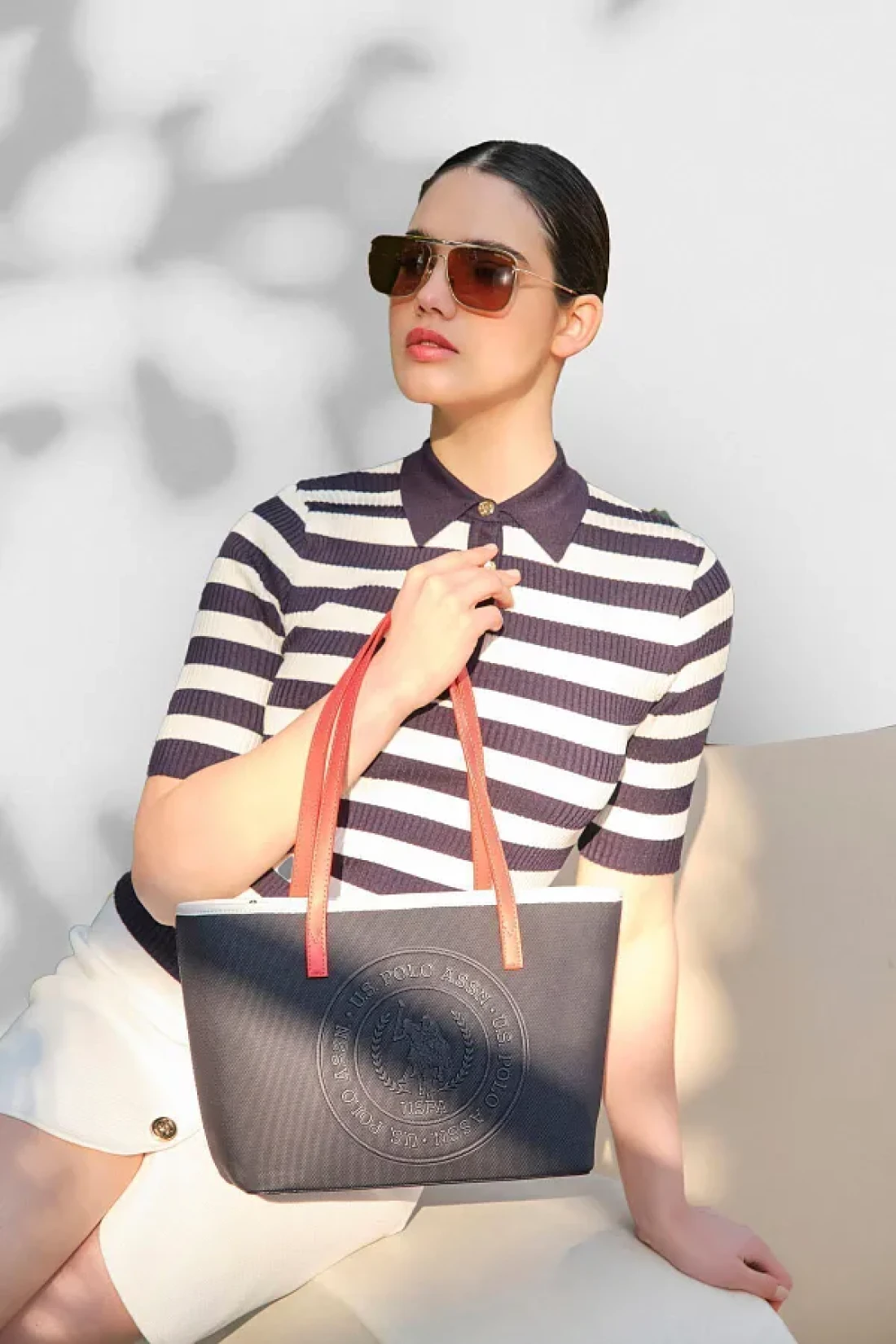 U.S. Polo Assn. حقيبة كتف نسائية باللون الأزرق الداكن والأبيض والأحمر US24732