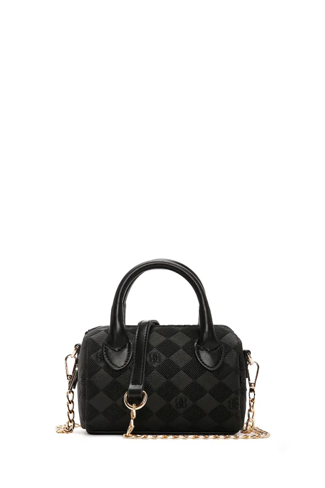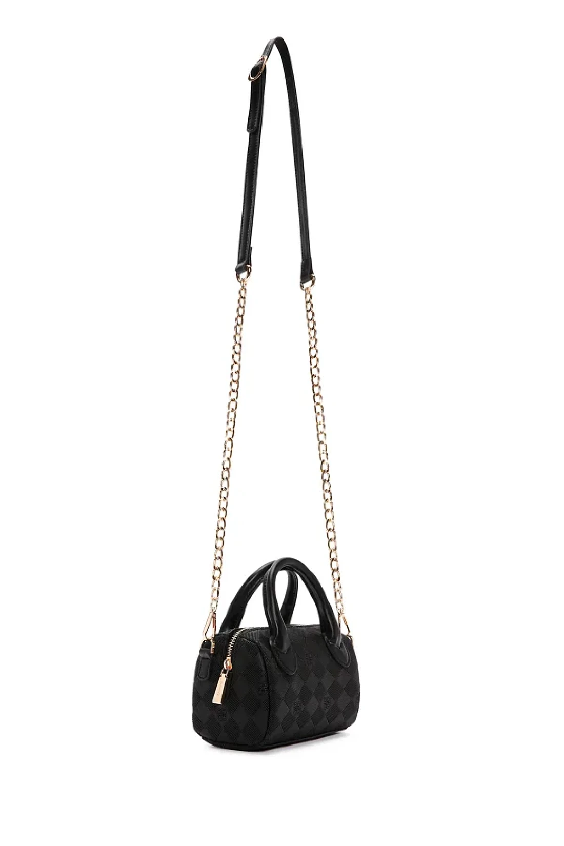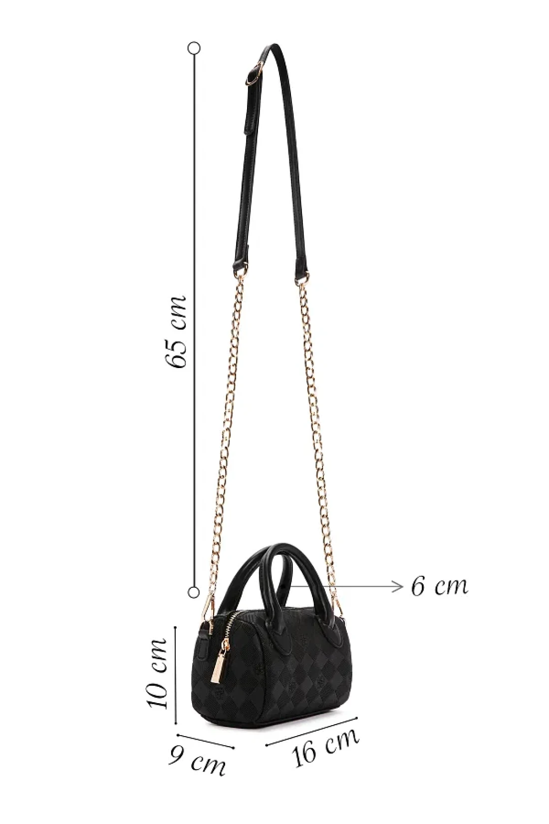 حقيبة نسائية صغيرة متقاطعة بحزام طويل أسود مطبوع