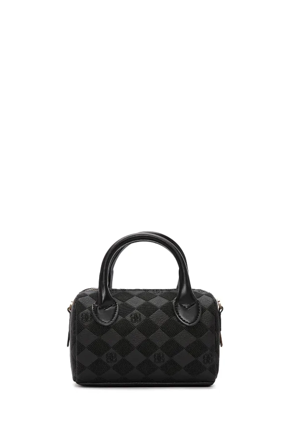 Derimod حقيبة كروس نسائية صغيرة مطبوعة بحزام طويل باللون الأسود 25sbd 200226