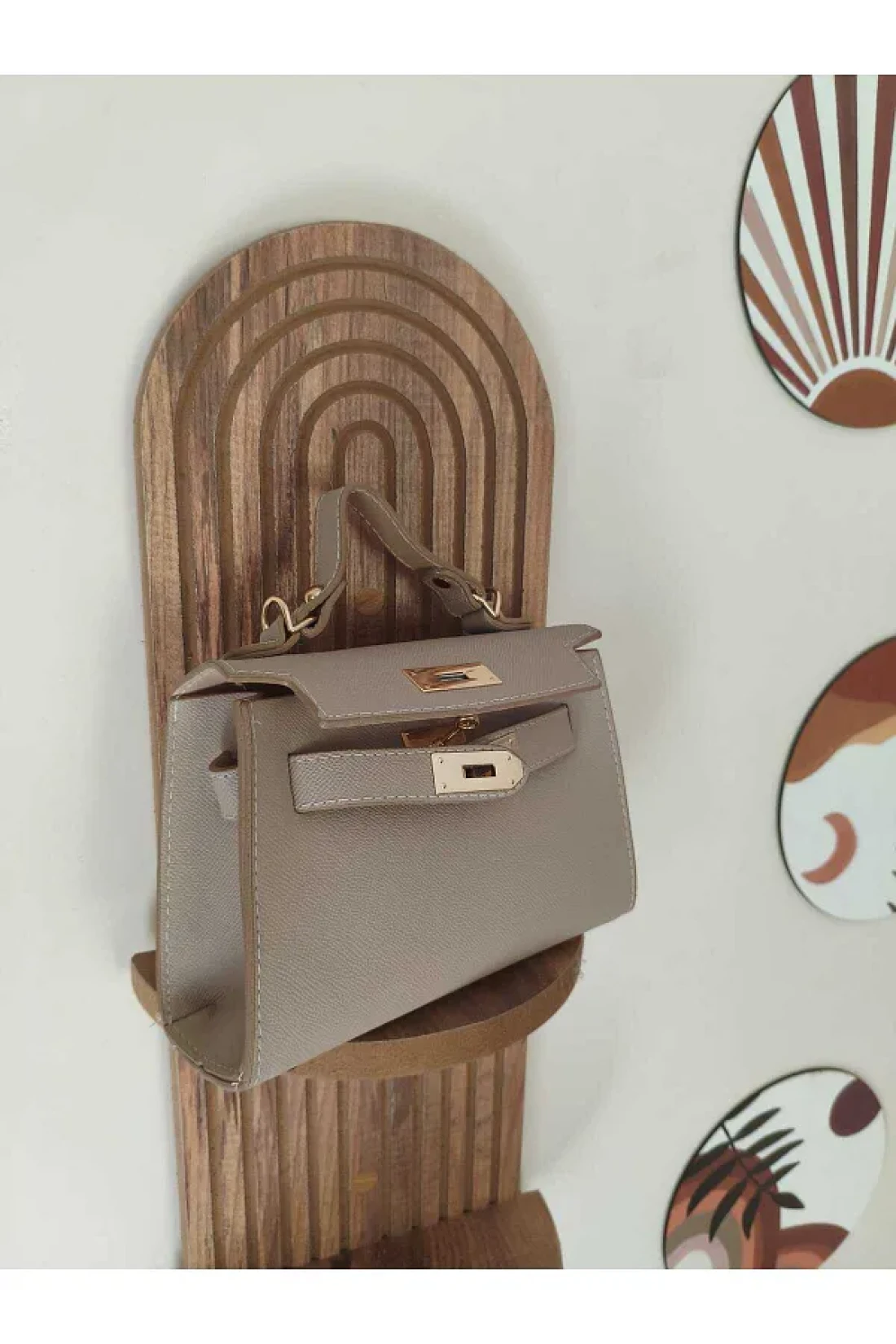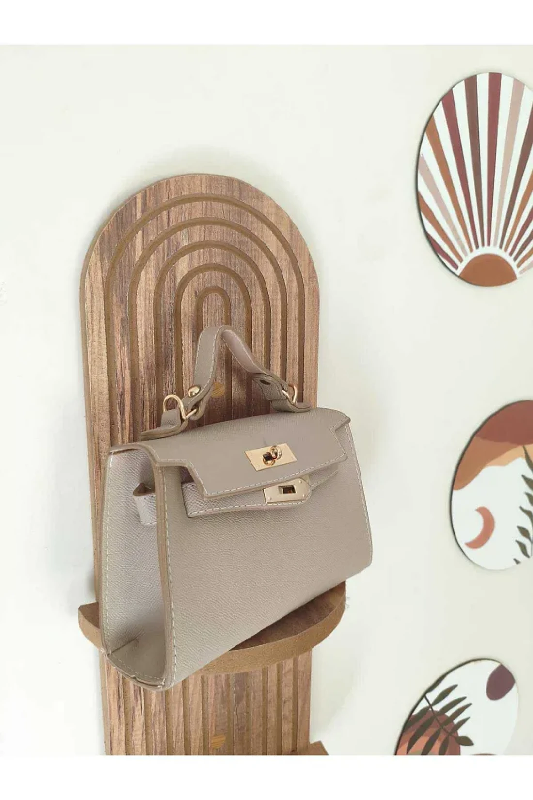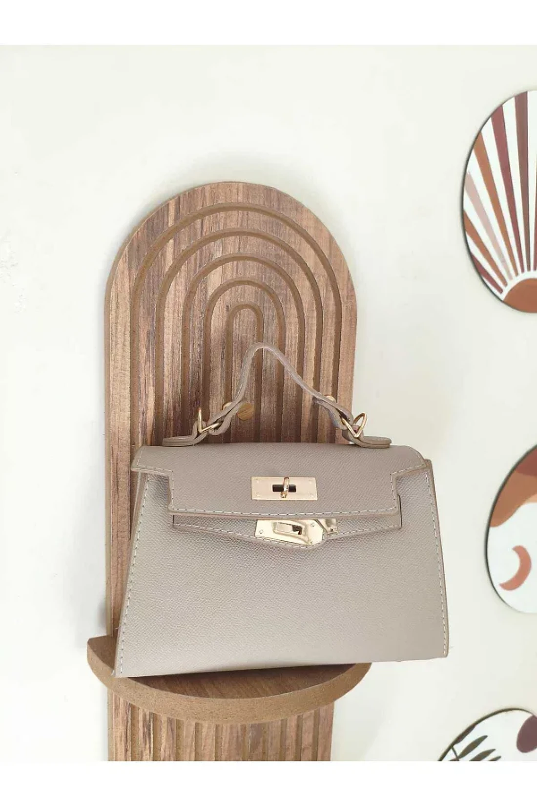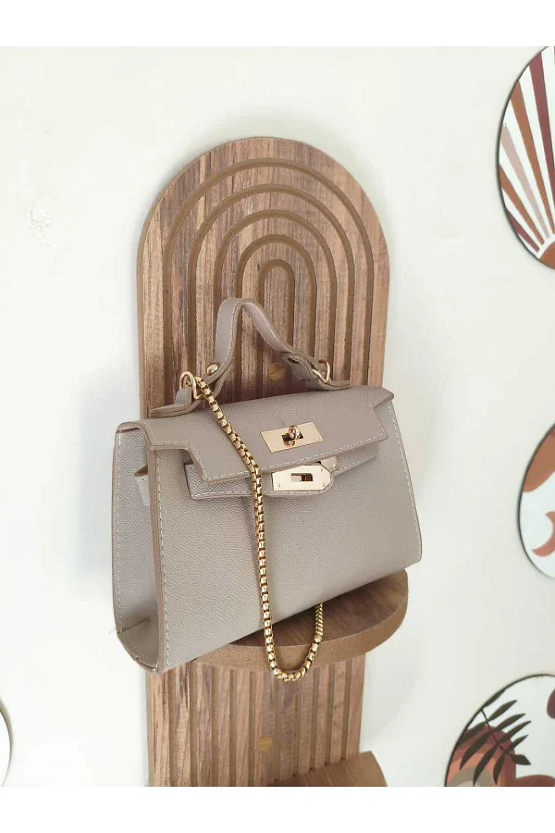 حقيبة الكتف والذراع كريم أنيقة وكلاسيكية سميكة مع سلسلة العرض: 20 سم الارتفاع: 14 سم