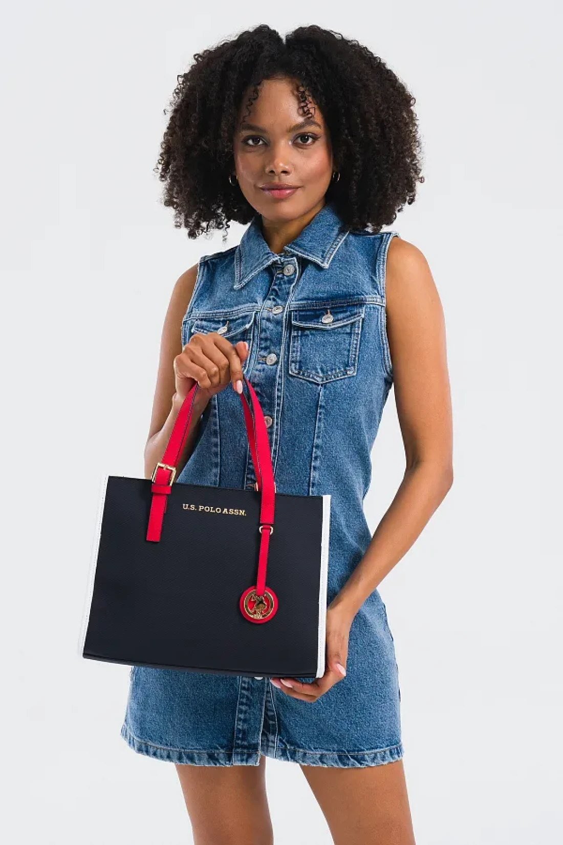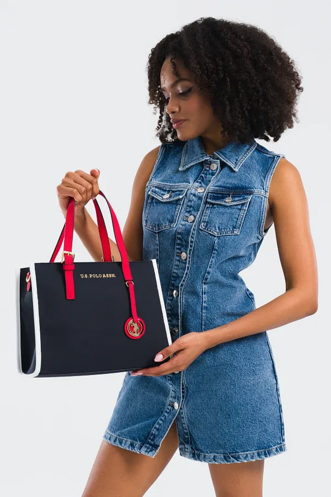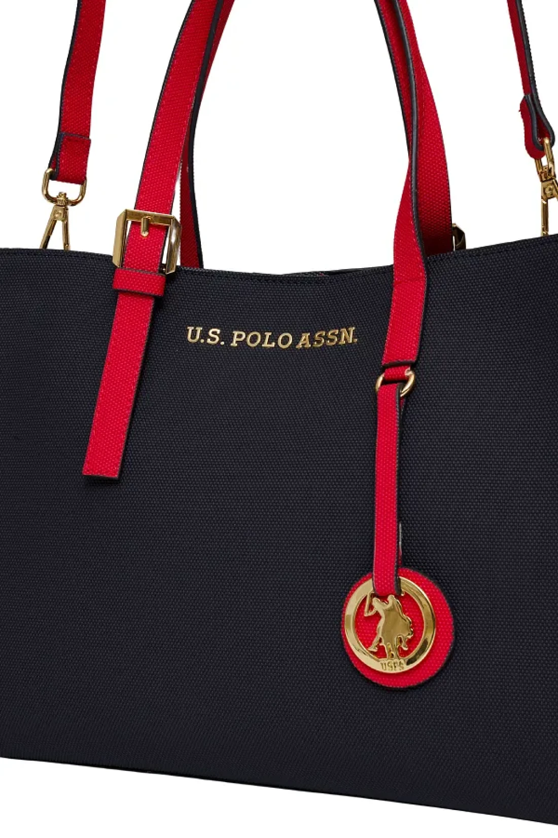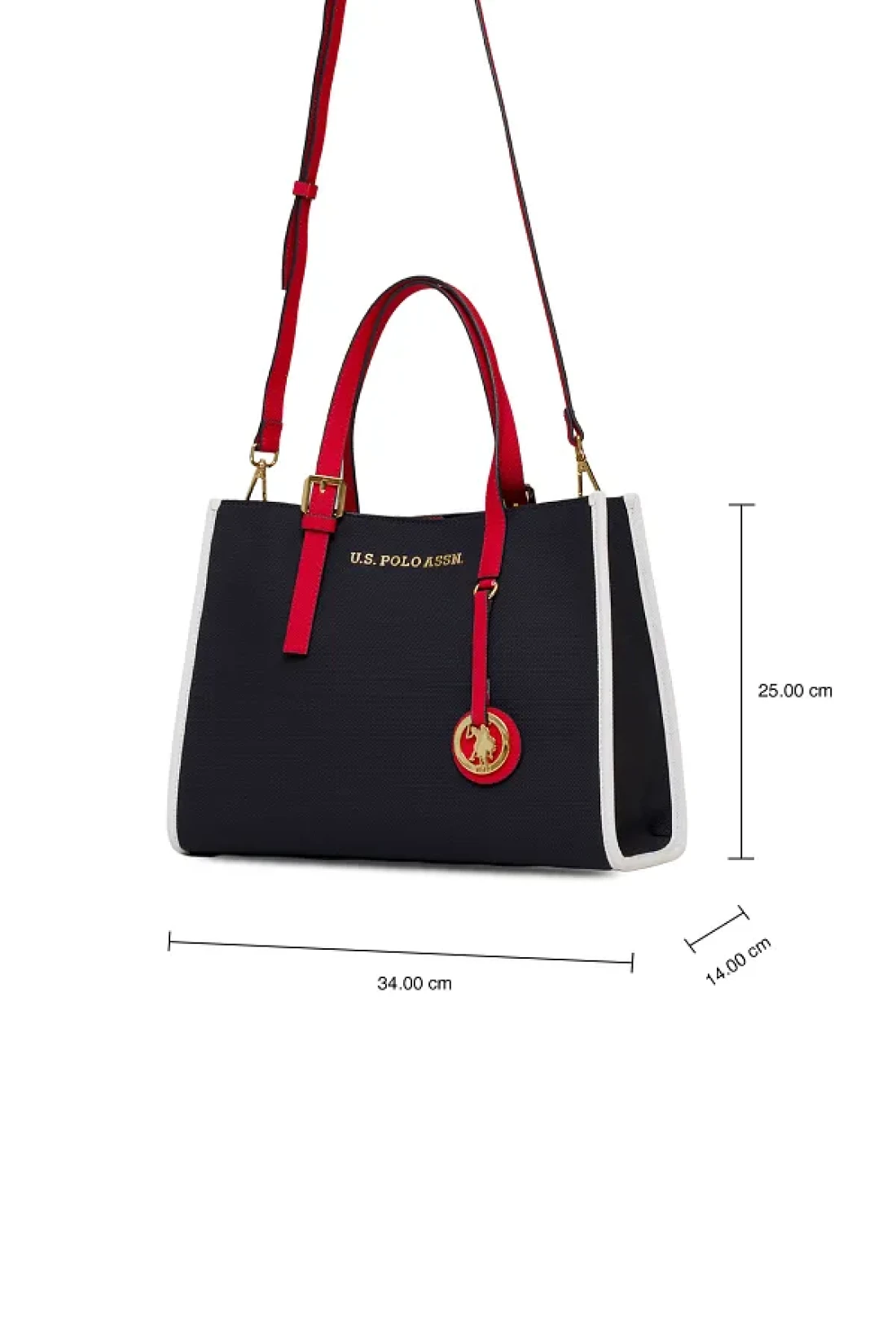 U.S. Polo Assn. حقيبة كتف نسائية باللون الأزرق الداكن والأحمر Us25252