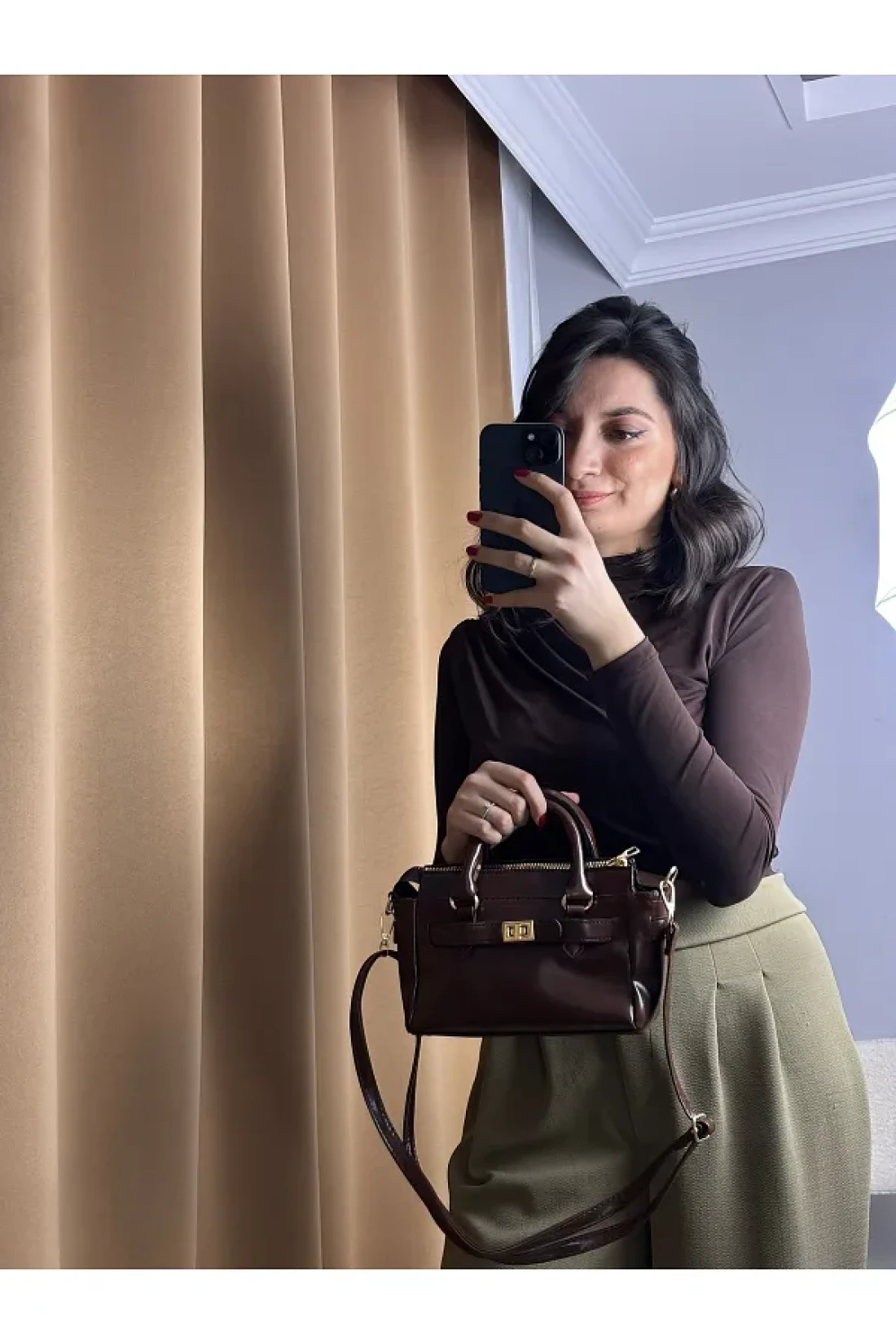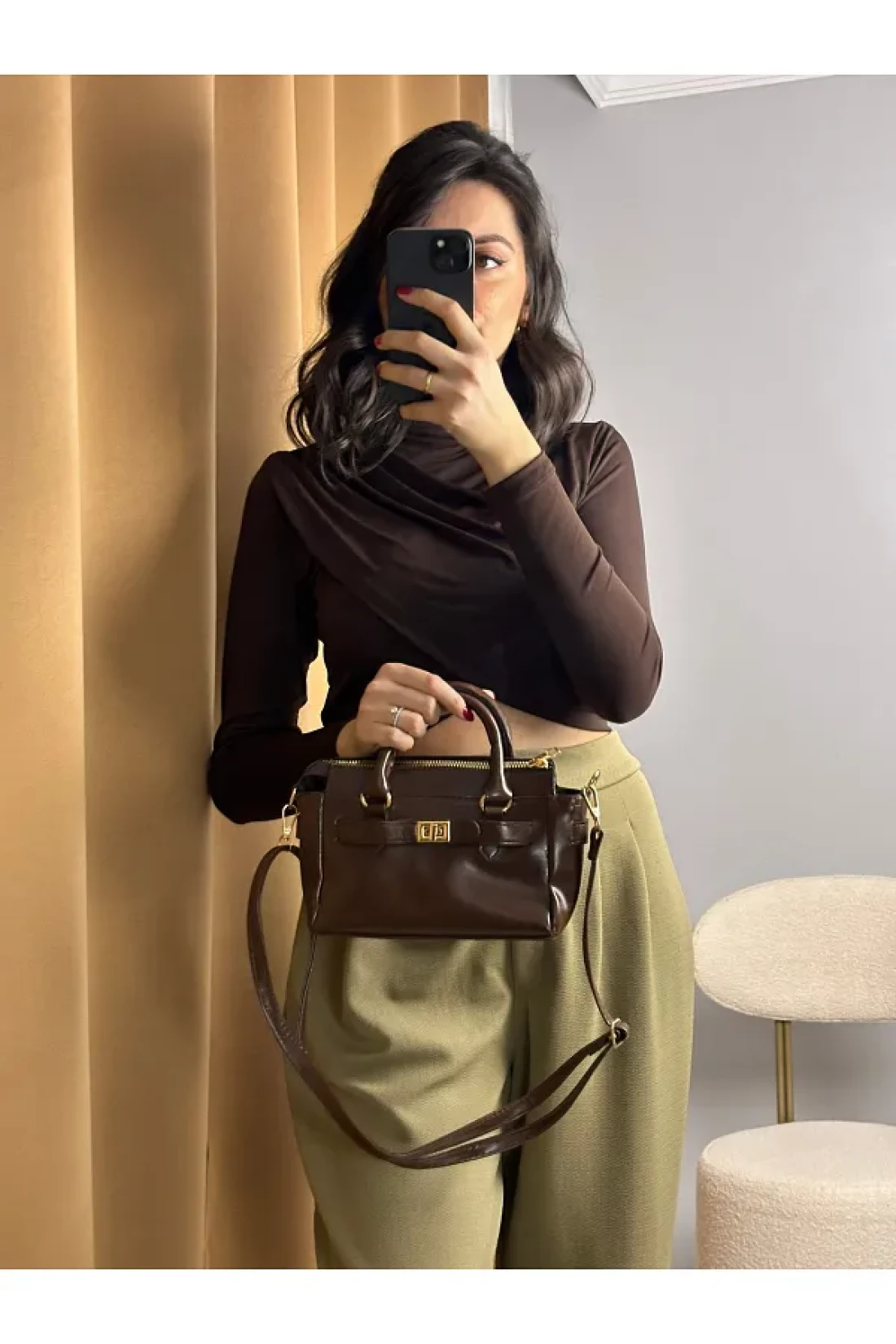 - طوله 15 سم وعرضه 25 سم. حقيبة يد وكتف بنية اللون يمكنك استخدامها في كل موسم، تبرز بتصميمها الكلاسيكي والخالد. بفضل هيكلها السهل التنظيف، يمكنك صيانتها عمليًا عن طريق مسحها بقطعة قماش رطبة.
