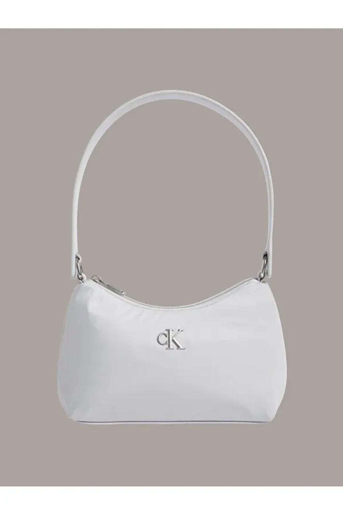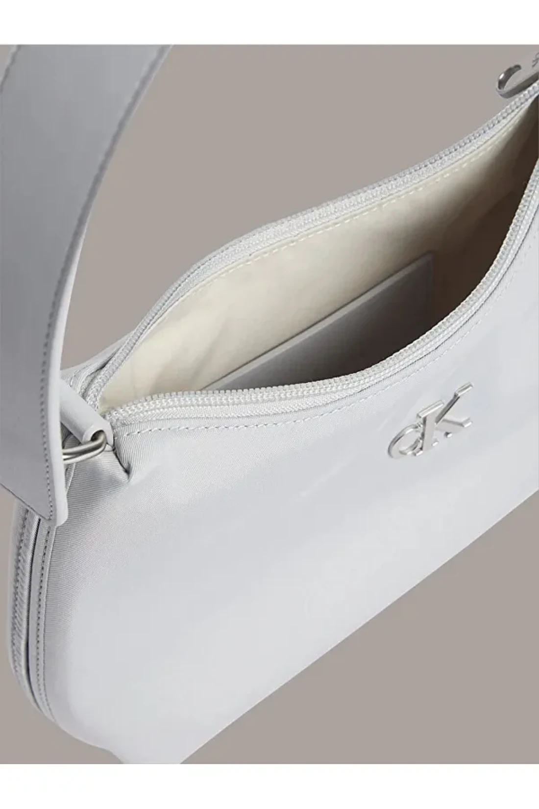 Calvin Klein حقيبة كتف نسائية باللون الرمادي مع شعار CK بسحاب للإغلاق K60K 613124 -PDE
