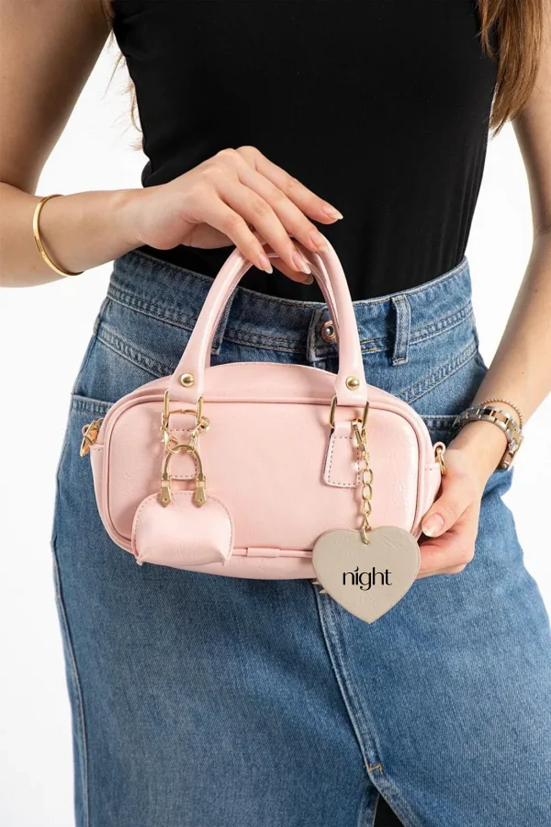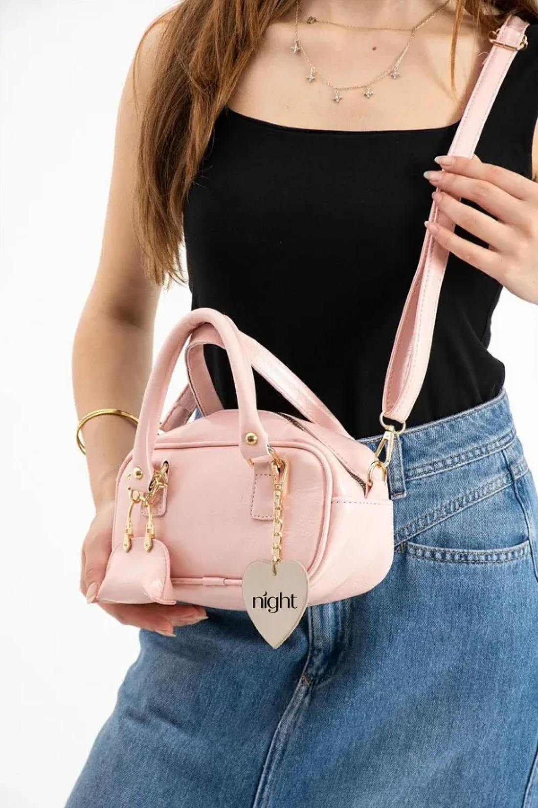 Night حقيبة يد وكتف نسائية من Bonnie Model باللون الوردي الفاتح مع هدية ساحرة