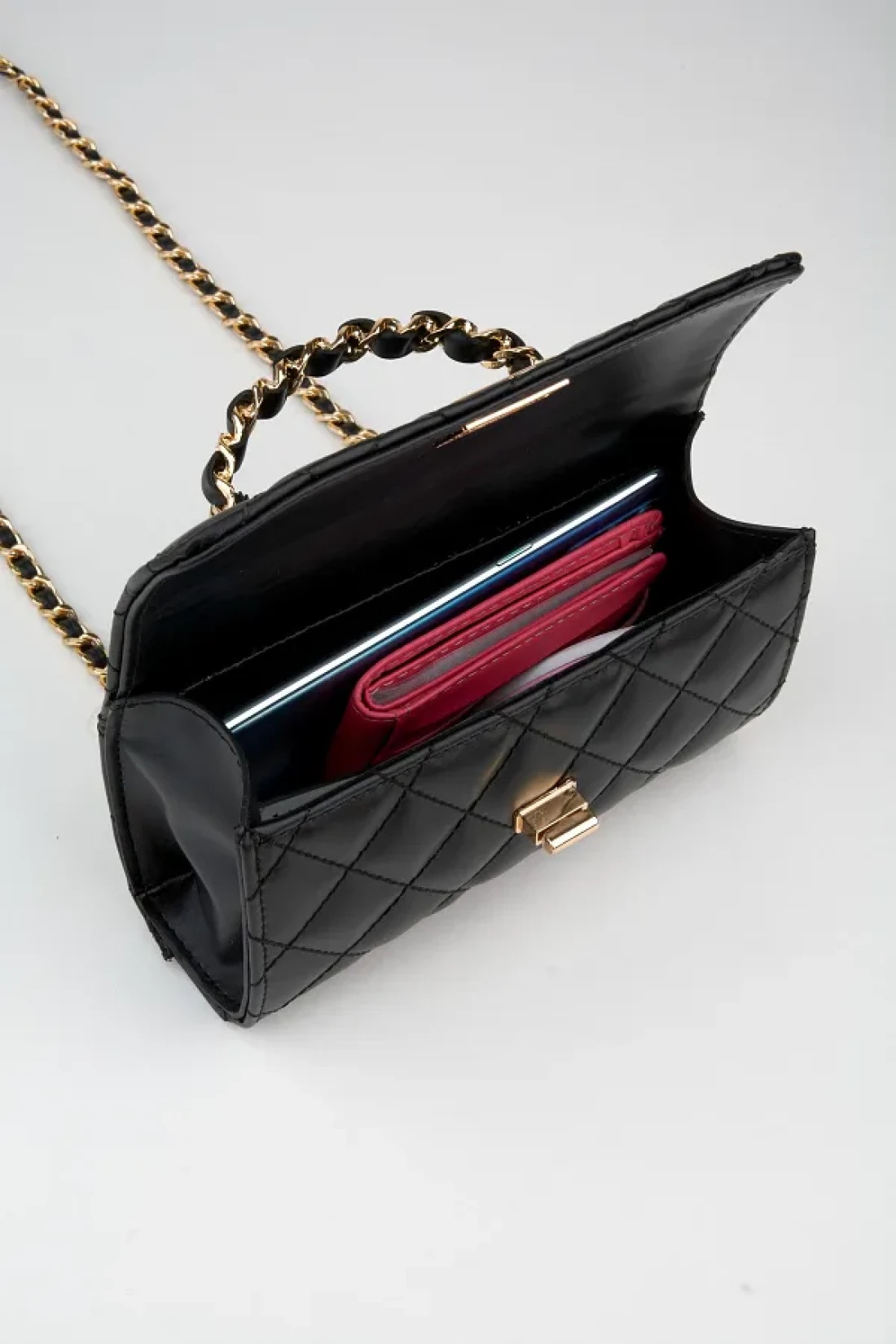 Vivaq حقيبة يد نسائية سوداء مبطنة صغيرة الحجم مزودة بحزام إغلاق بالإطباق وحقيبة كتف